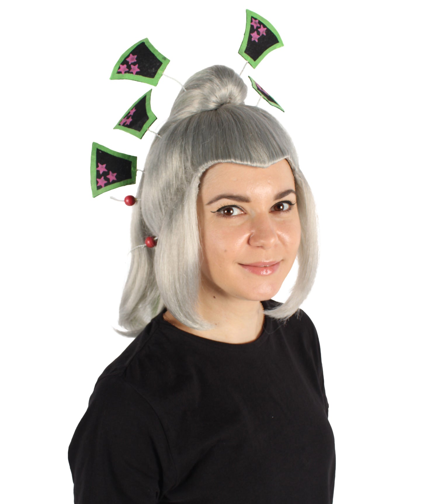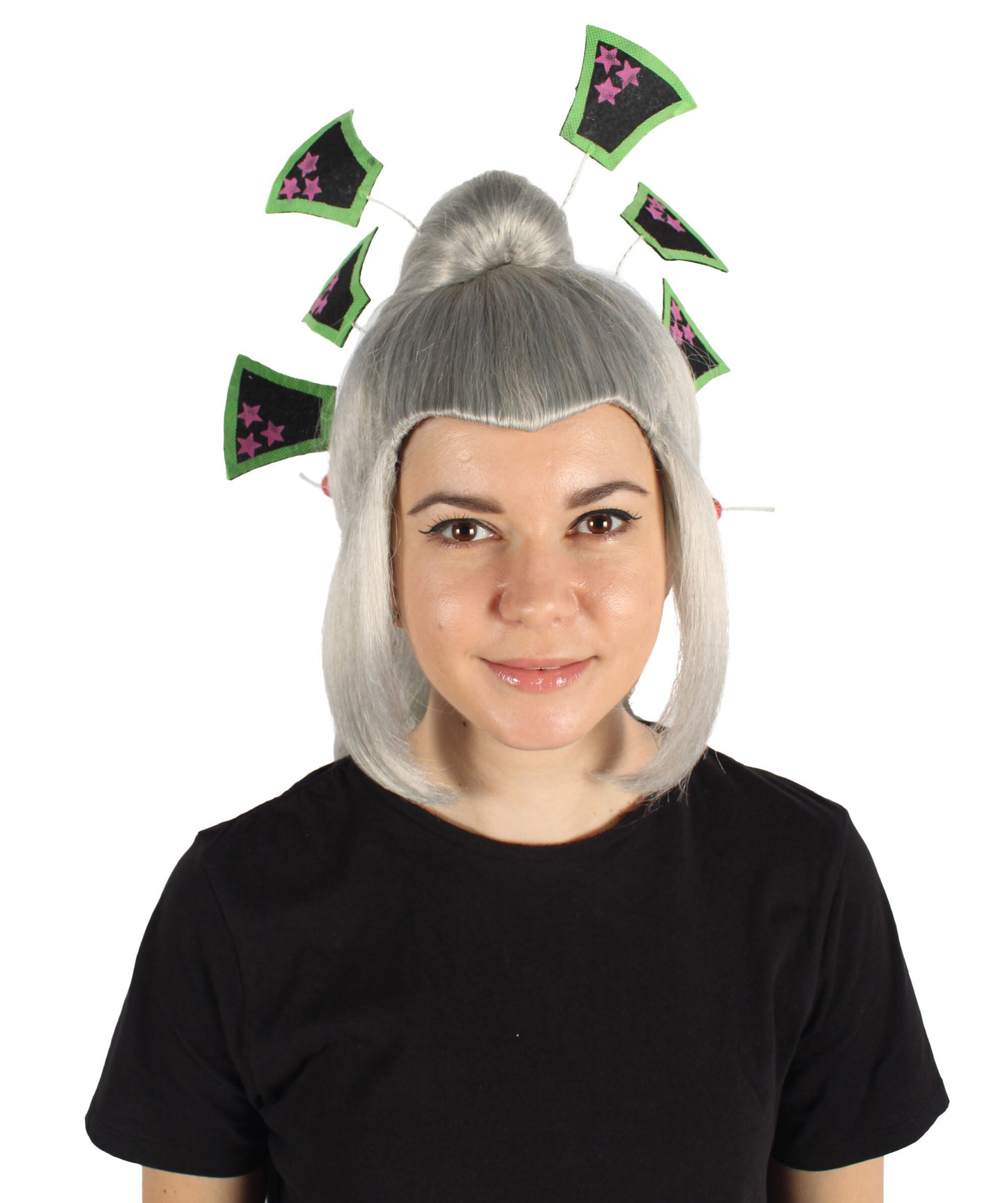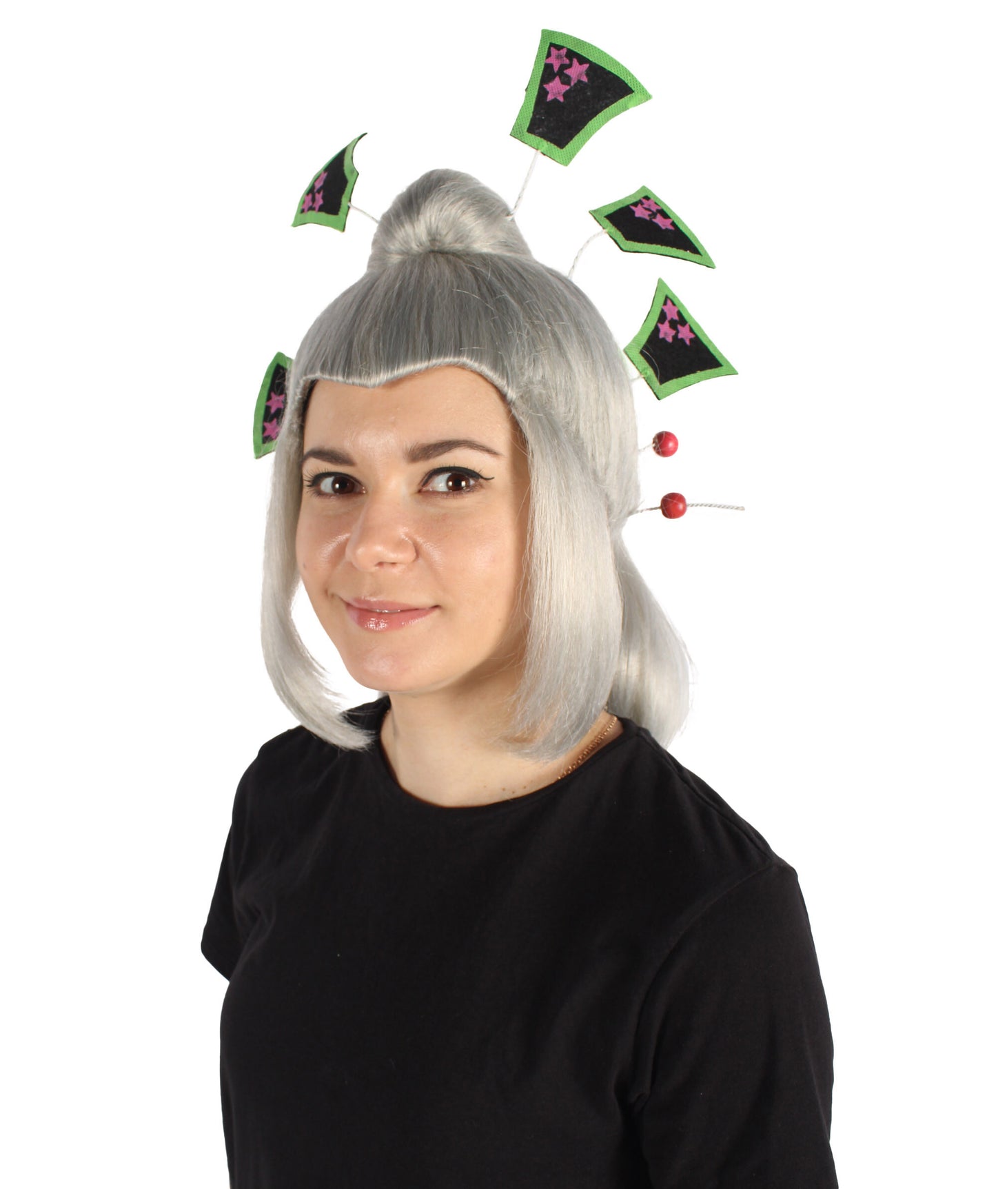 For your demonic appearance, choose our Japanese Anime Villain Character Wig for your next Halloween event! This striking wig features a unique and eye-catching combination of white and green hair, perfectly capturing the essence of the devilish monster character you adore. The wig is expertly crafted with synthetic fibers, ensuring a soft and natural feel while maintaining its vibrant colors.