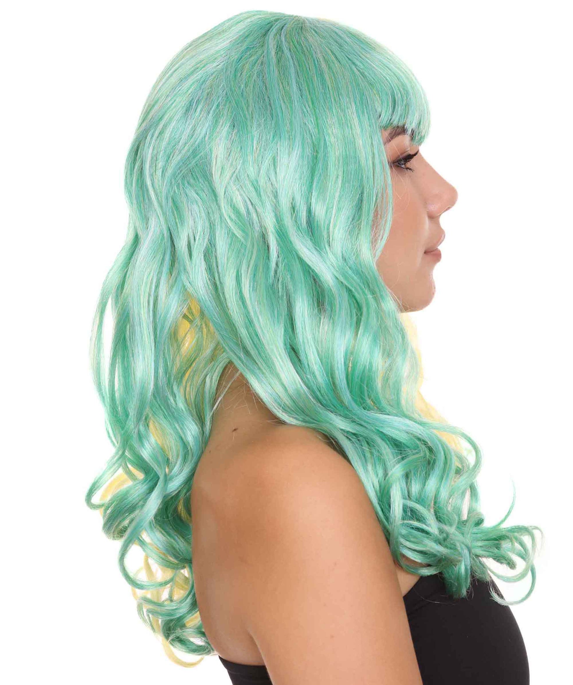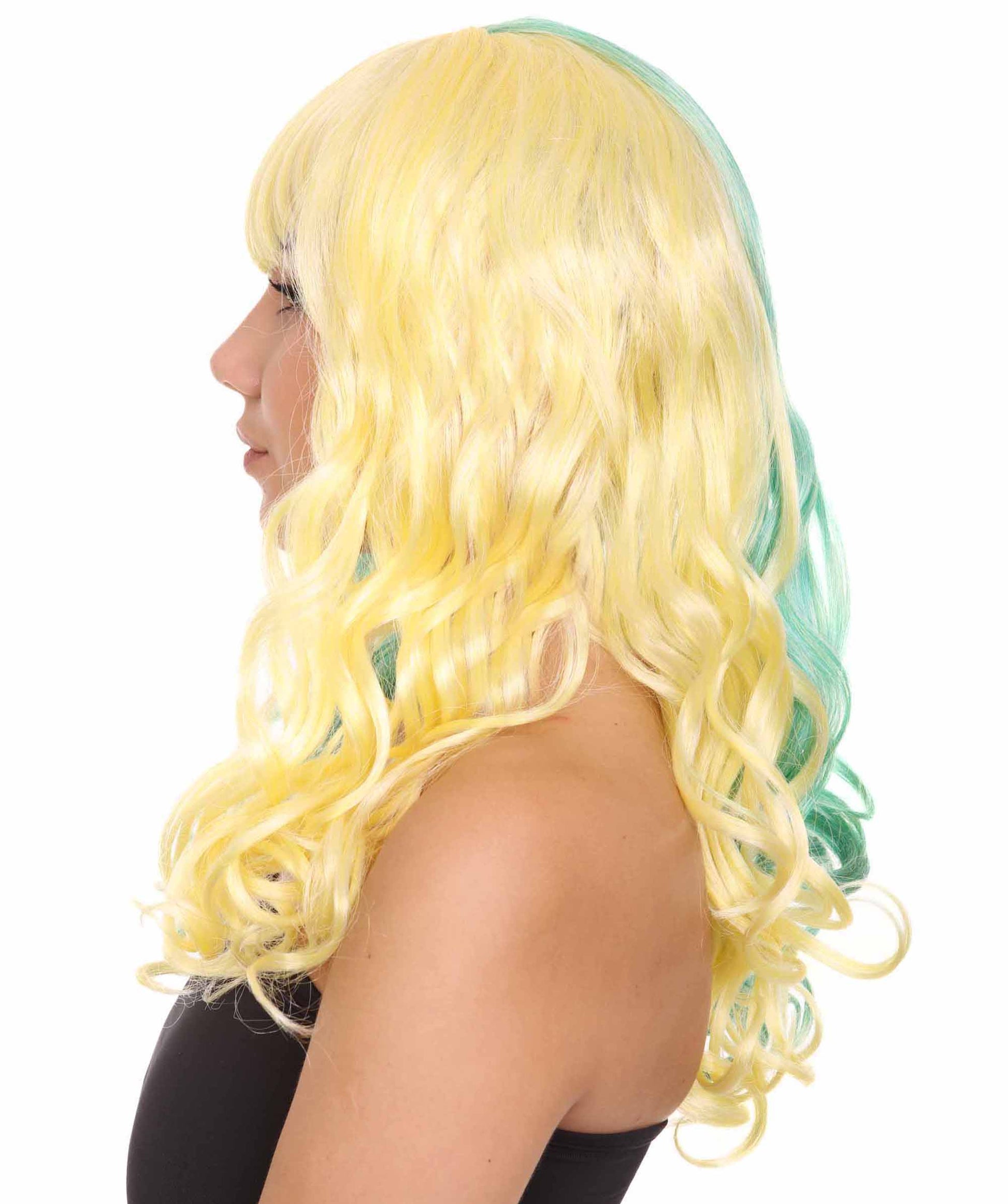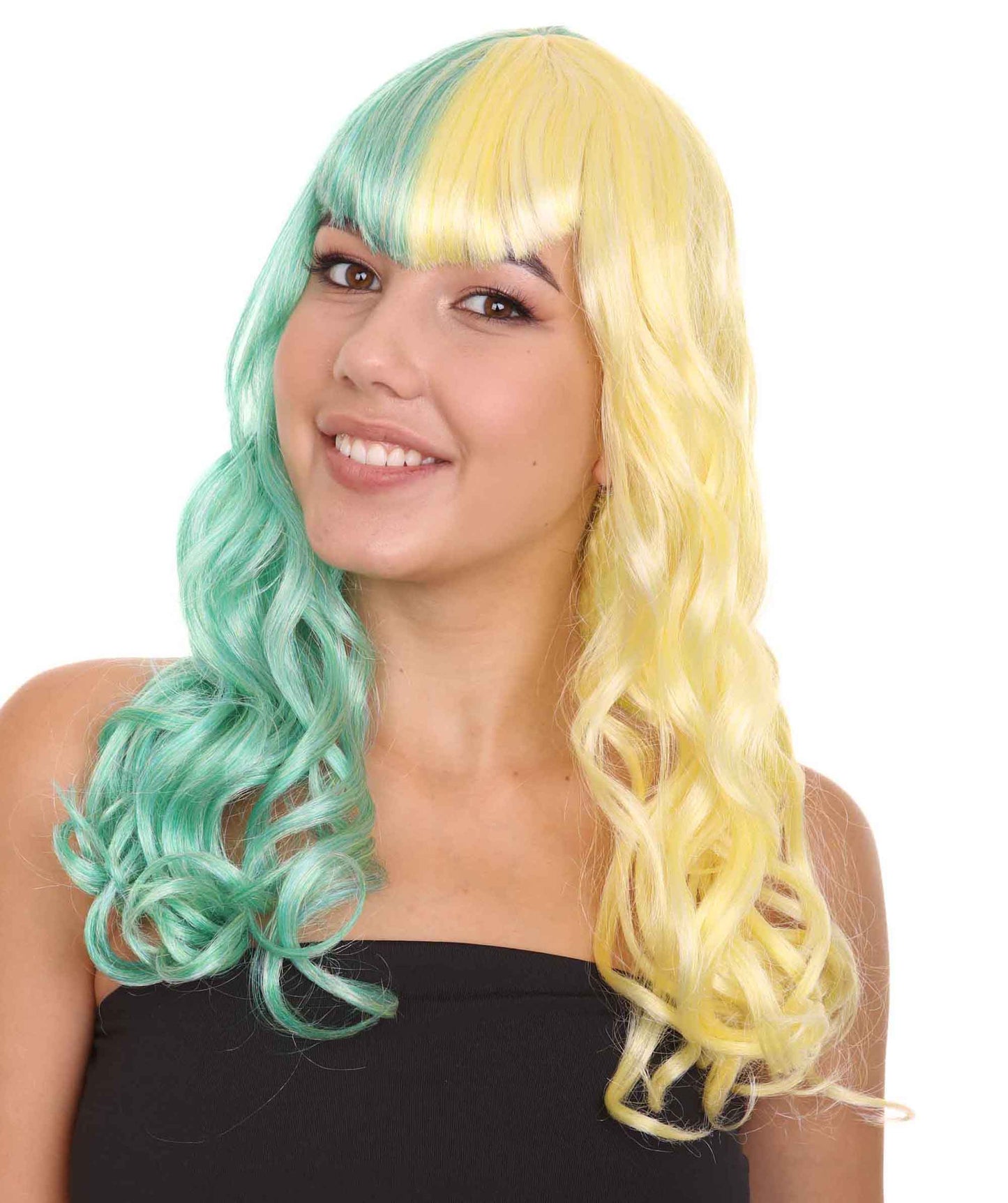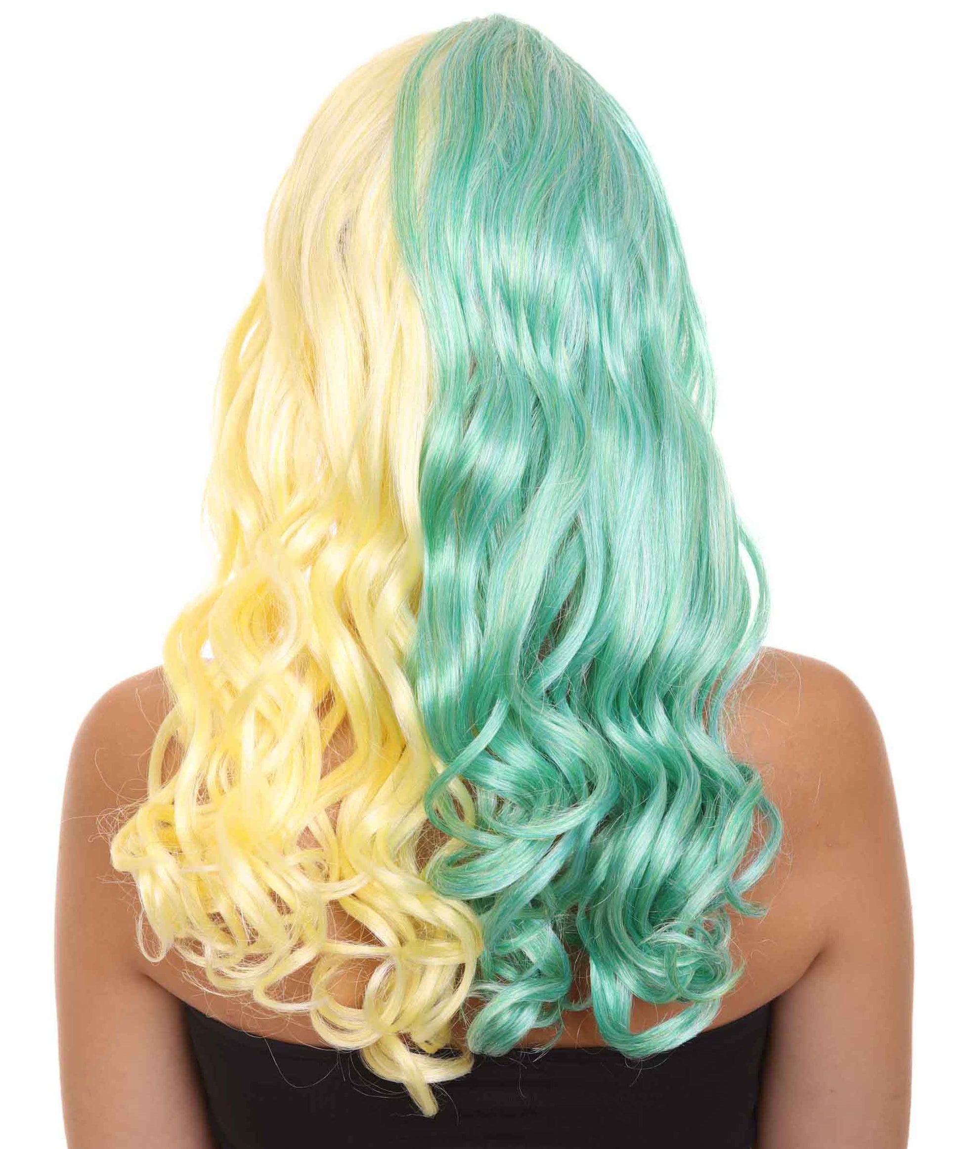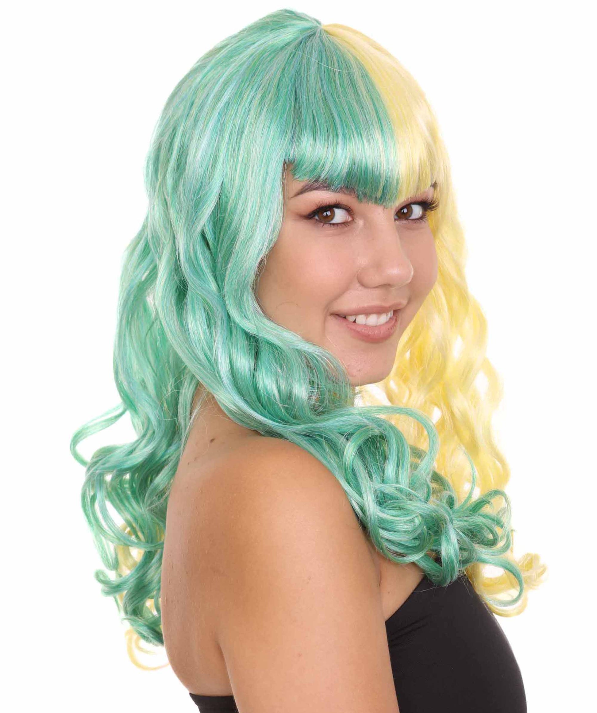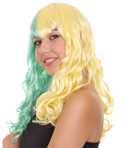 HPO Women's Comedian Girl Green/Yellow Fancy Wig, Perfect for Halloween, Flame-retardant Synthetic Fiber