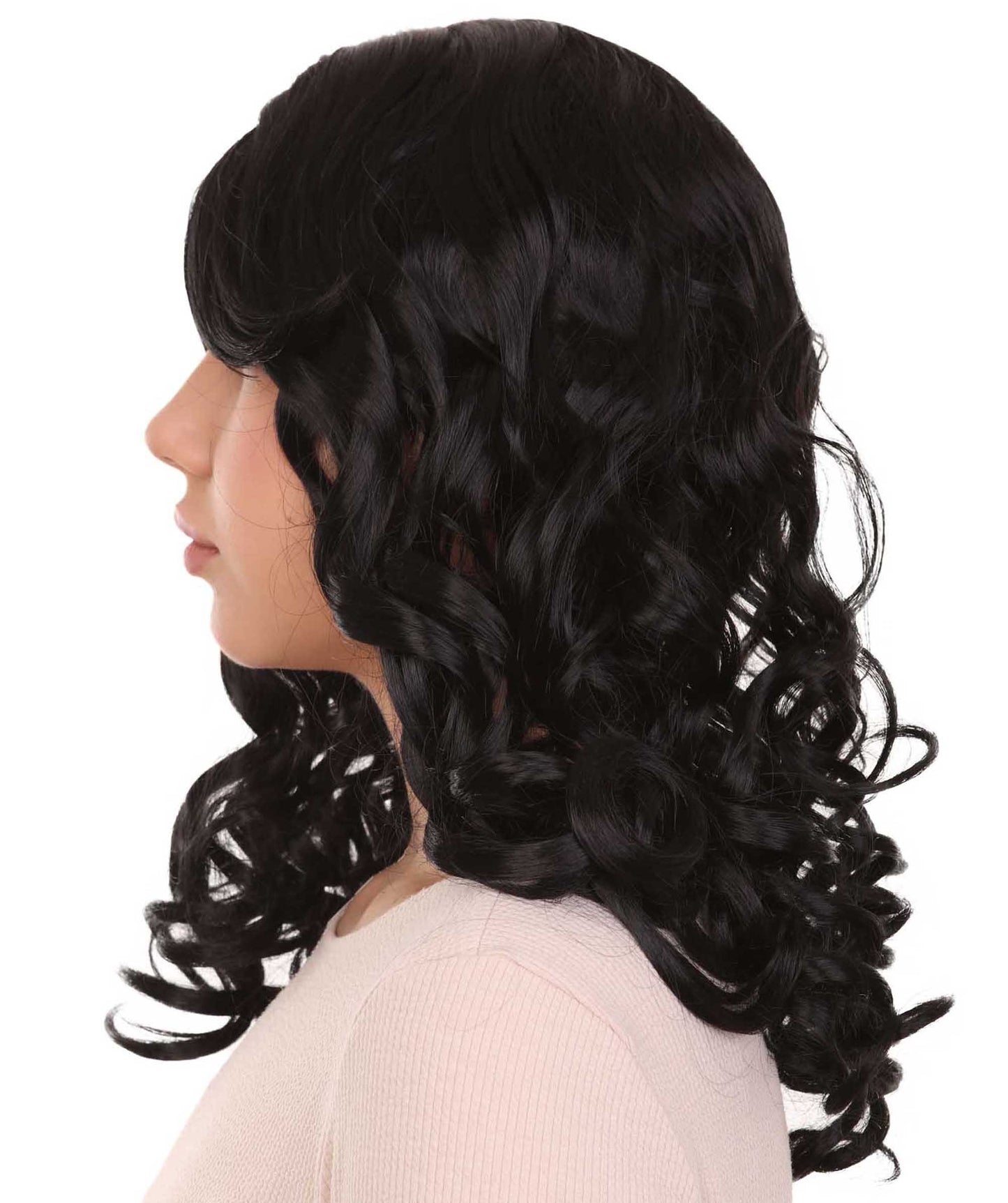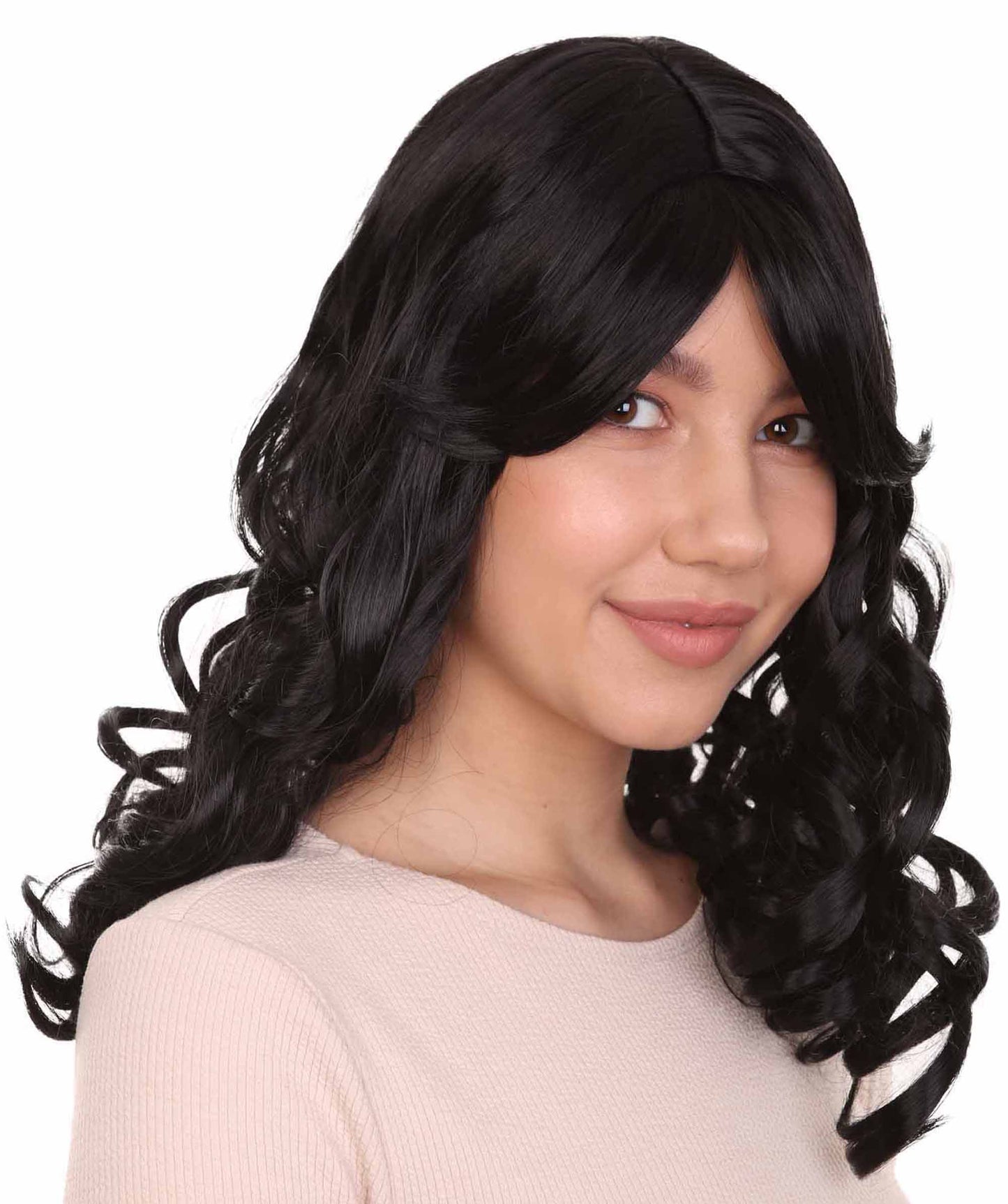 The Long Black Wavy Women's Wig from HPO is the perfect accessory for anyone looking for an elegant and sophisticated look. With its natural black color and wavy texture, this premium handcrafted wig is sure to turn heads wherever you go.