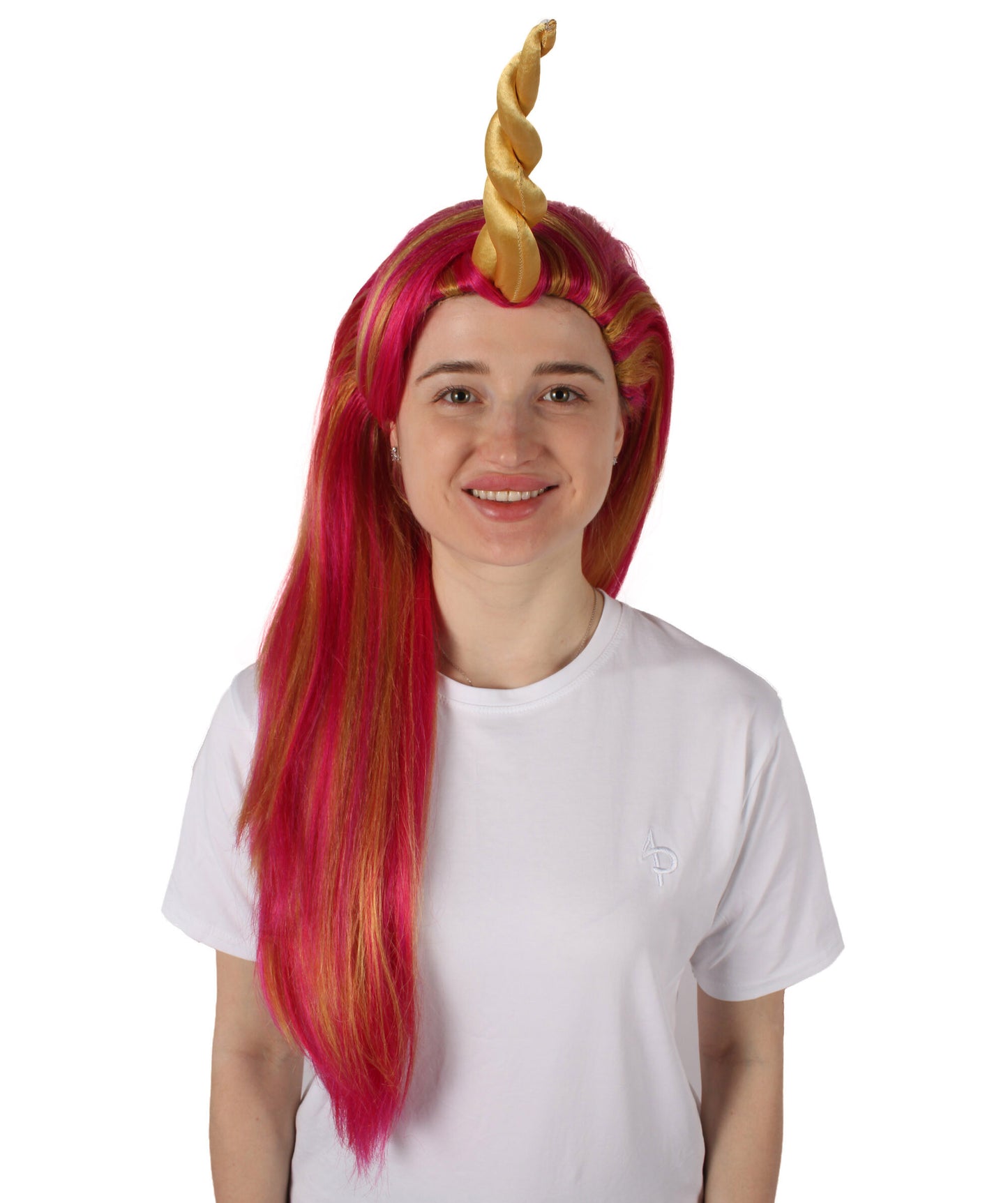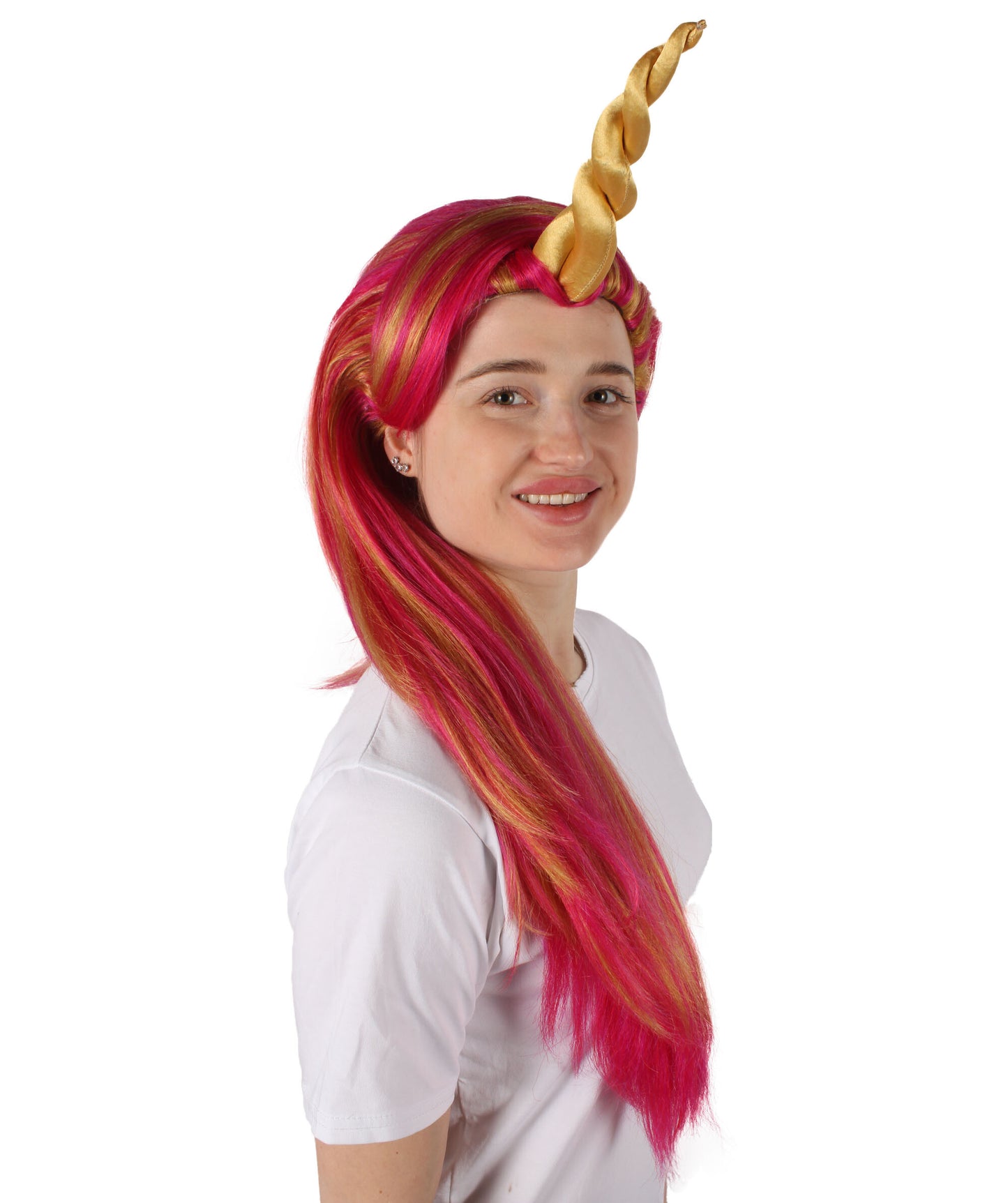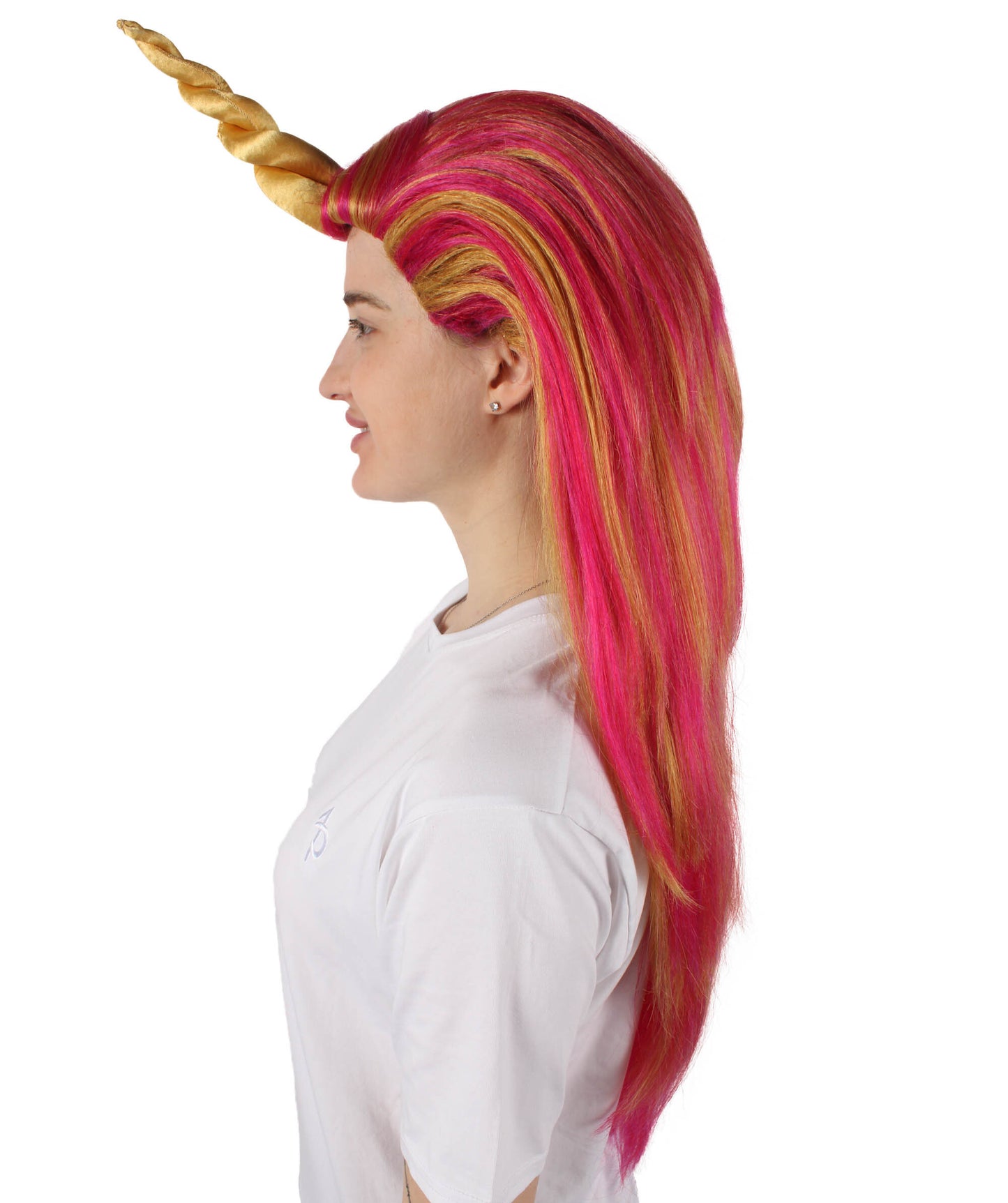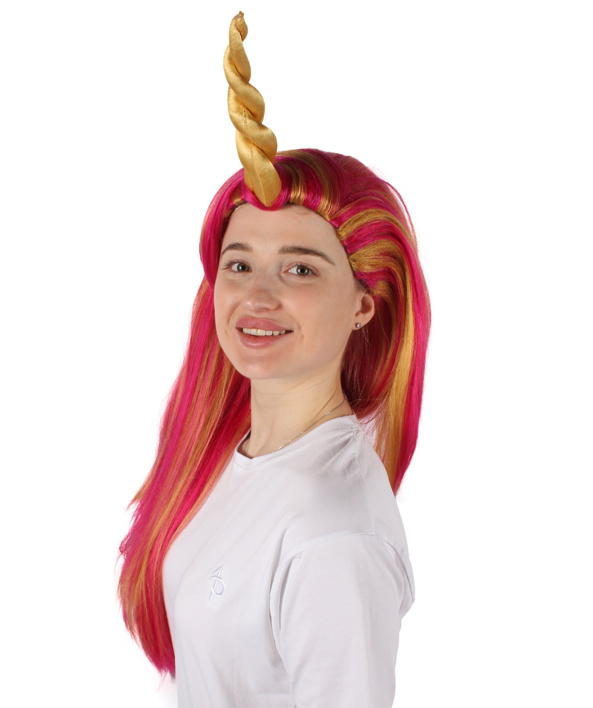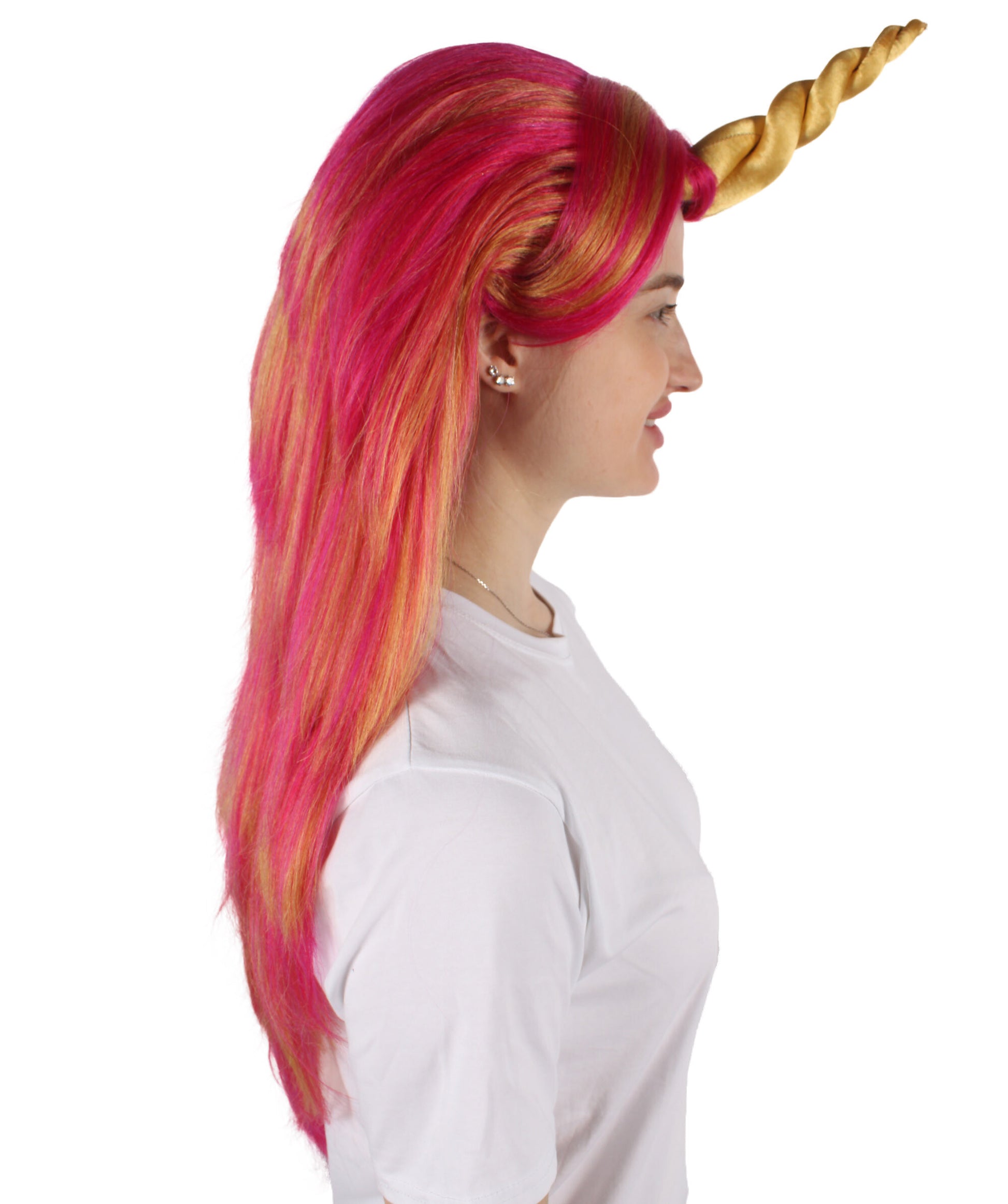 HPO Women's Long Fairytale Unicorn Wig with Horn I Halloween Wig I Flame-retardant Synthetic Fiber