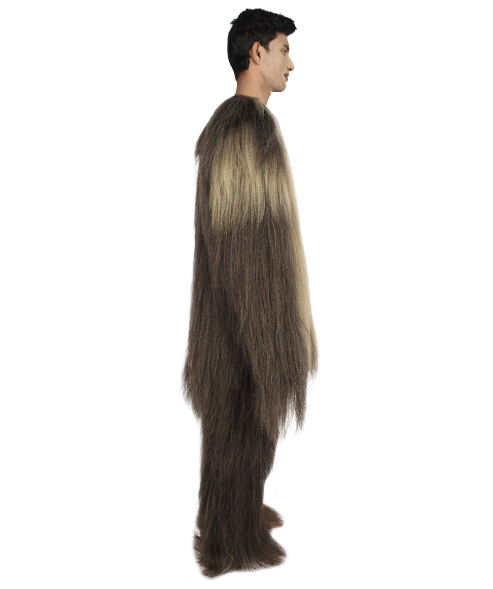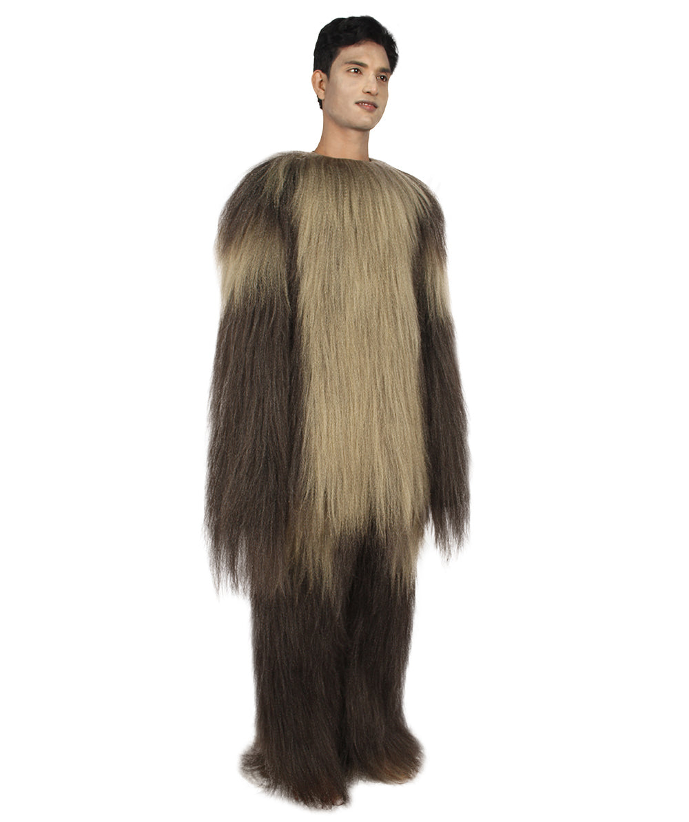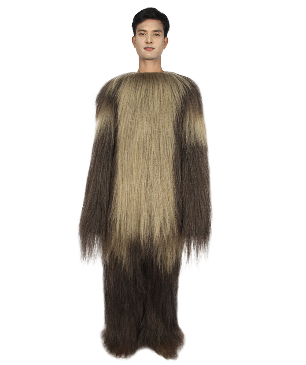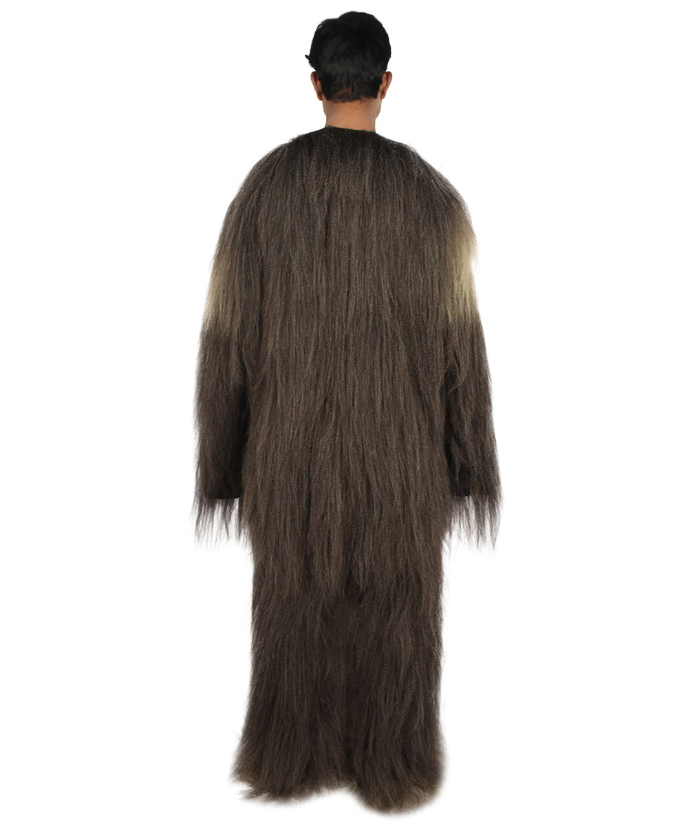 | One of the most feared creatures in the galaxy that could tear any animal to pieces with its deadly claws to having almost super strength is our Men's Long Hairy Elder Warrior Ape Military Leader Resistance Fighter Dark Brown Cosplay Costume. Each costume comes with a premium design for a more comfortable fit and made with synthetic fibers. |