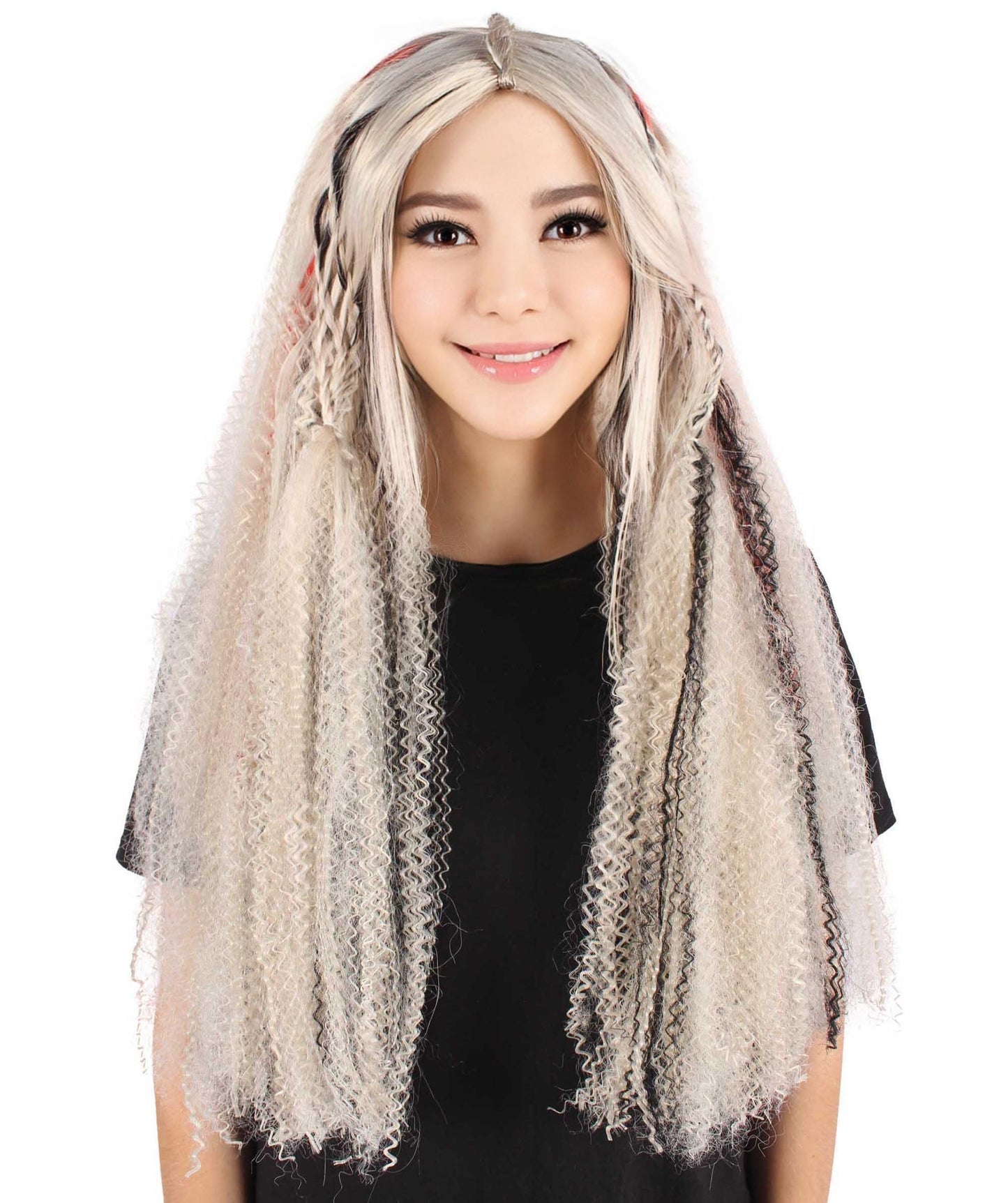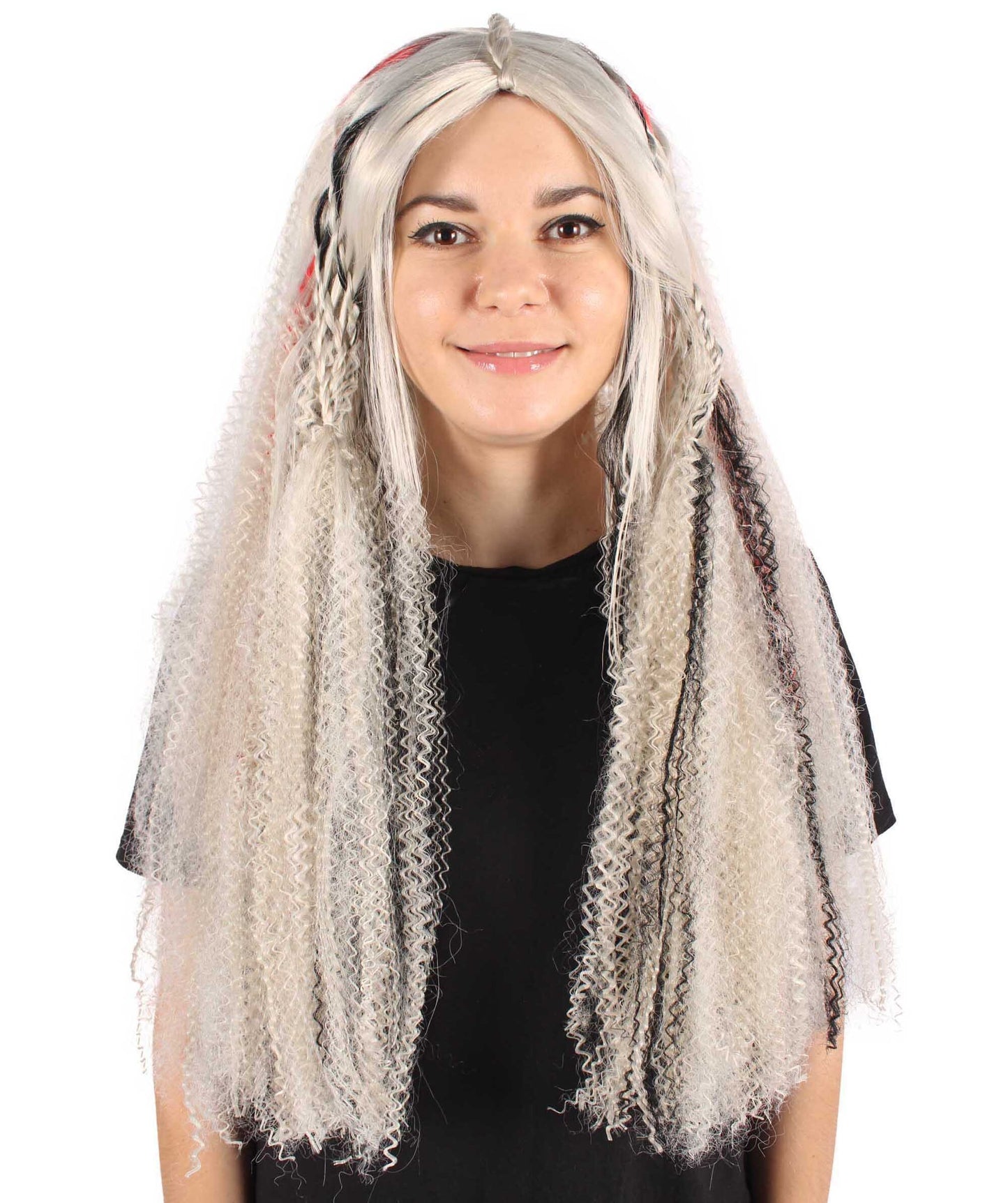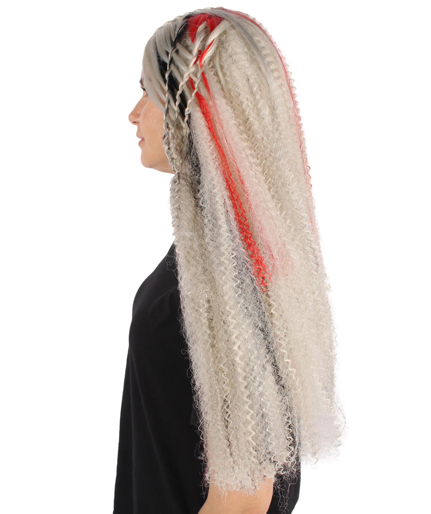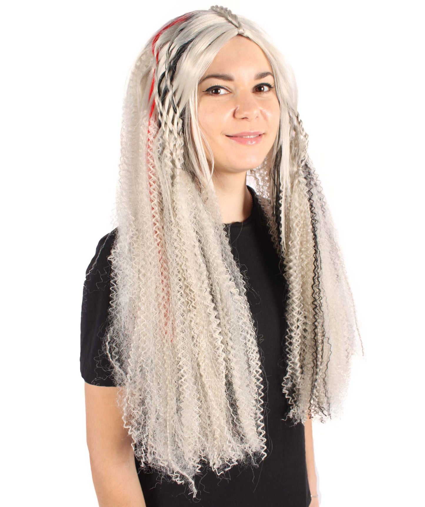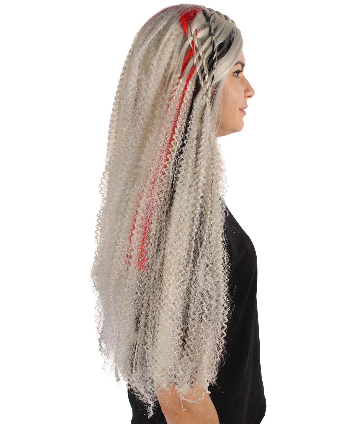 You may transform into an enigmatic sorcerer, an experienced magician, or a terrible ghost with this wig—the possibilities for creativity and expression are endless. Your entire look is given dimension and structure by the braided hair, and the gray color adds a touch of mystique.