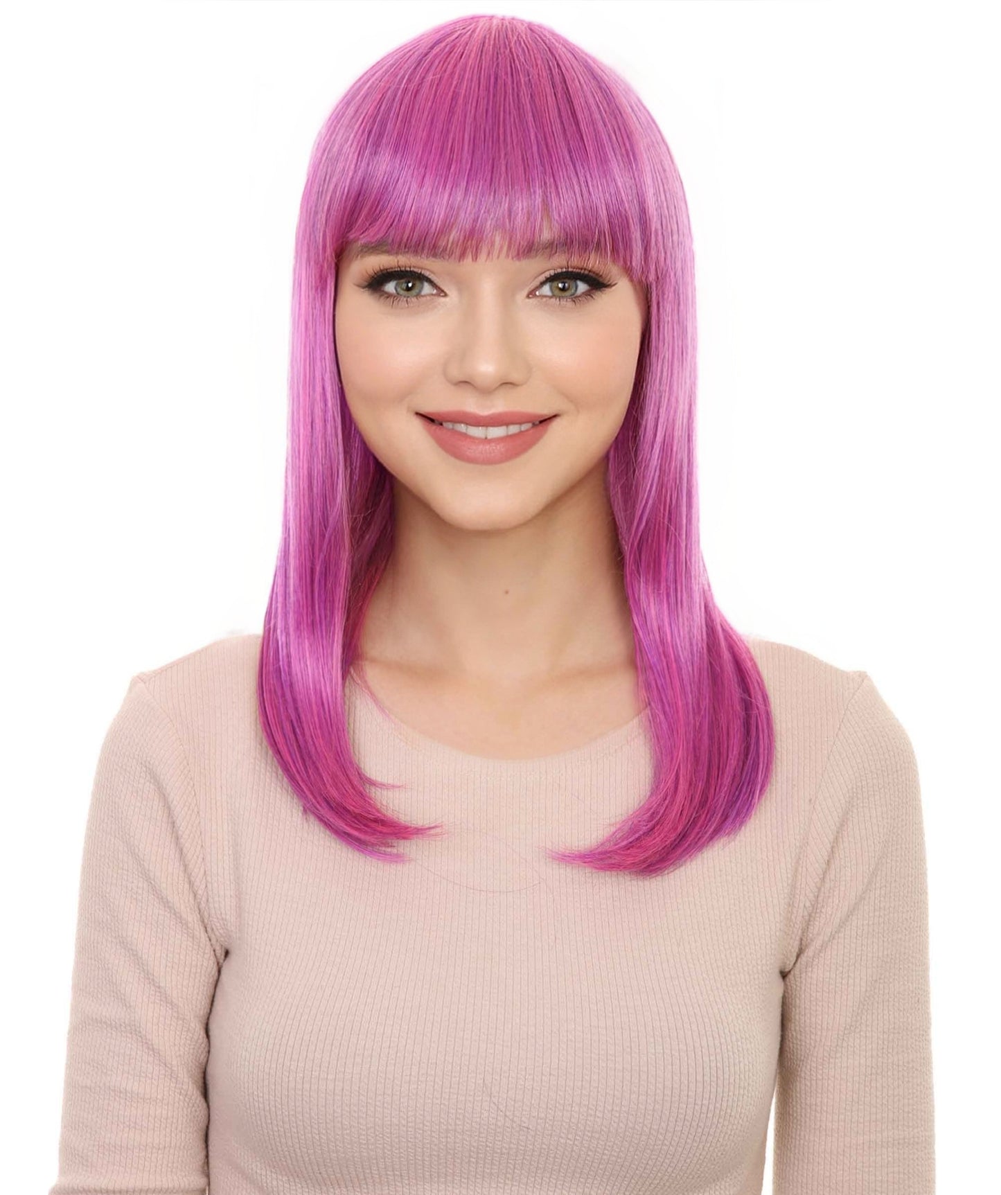 Long Purple Bob Womens Wig | Fancy Party Event Ready Halloween Wigs | Premium Breathable Capless Cap