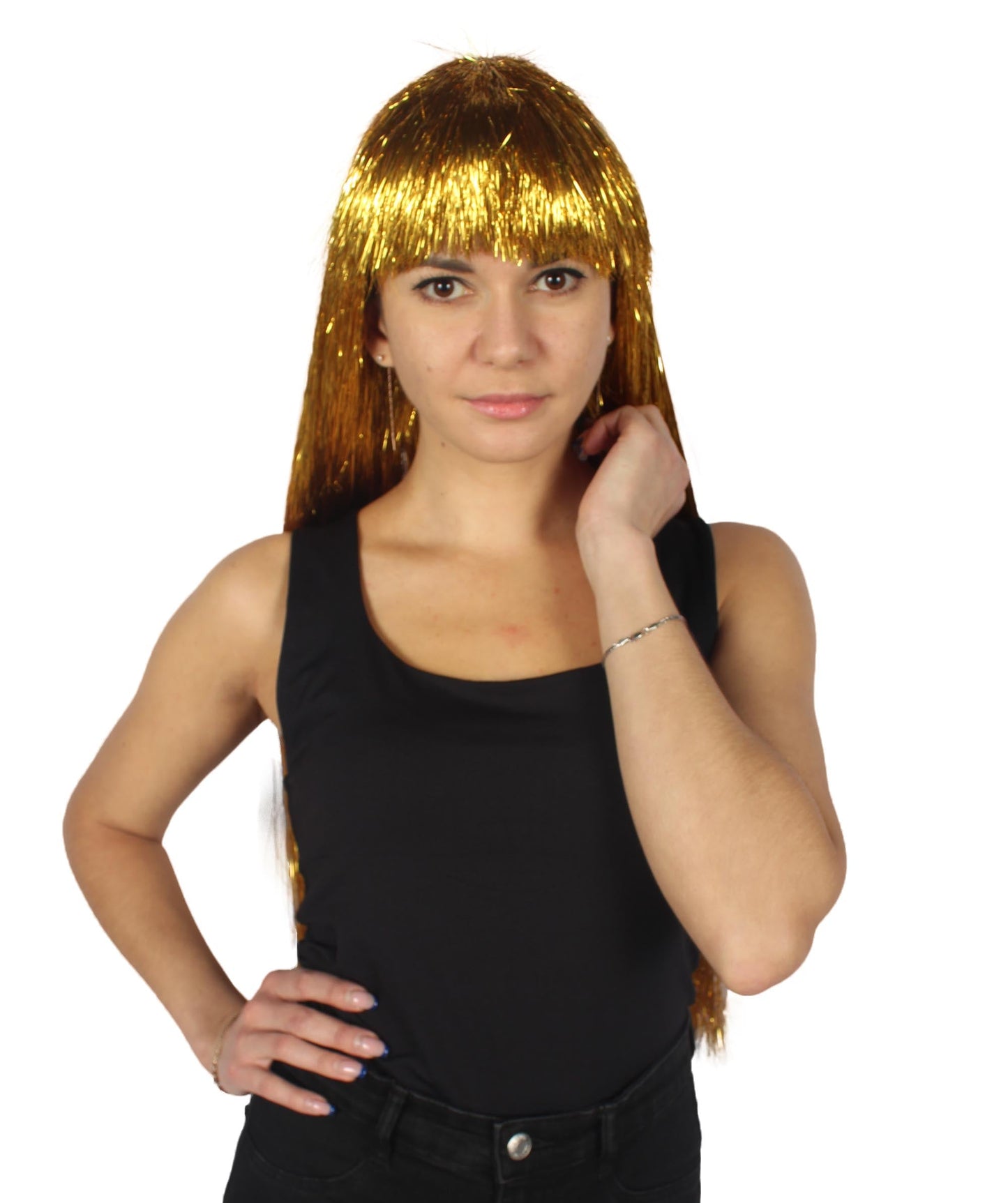 Get ready to sparkle and shine with our Long Tinsel Collection for adult women! These party-ready wigs are perfect for adding a touch of glamour and fun to your fancy dress, cosplay, or Halloween costume. With their lustrous tinsel strands, these wigs are sure to make you stand out in any crowd.