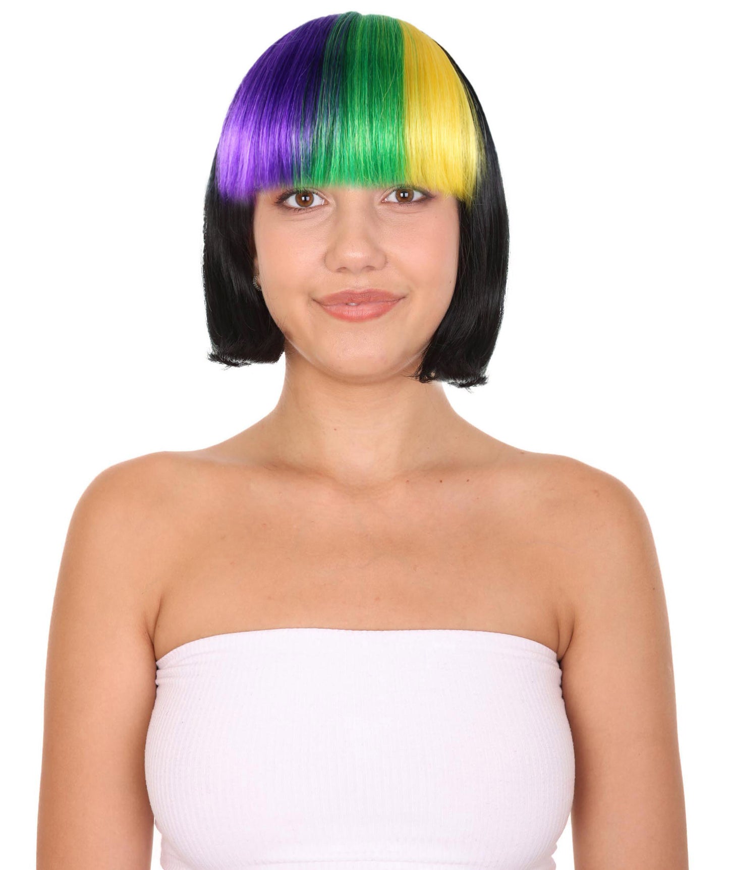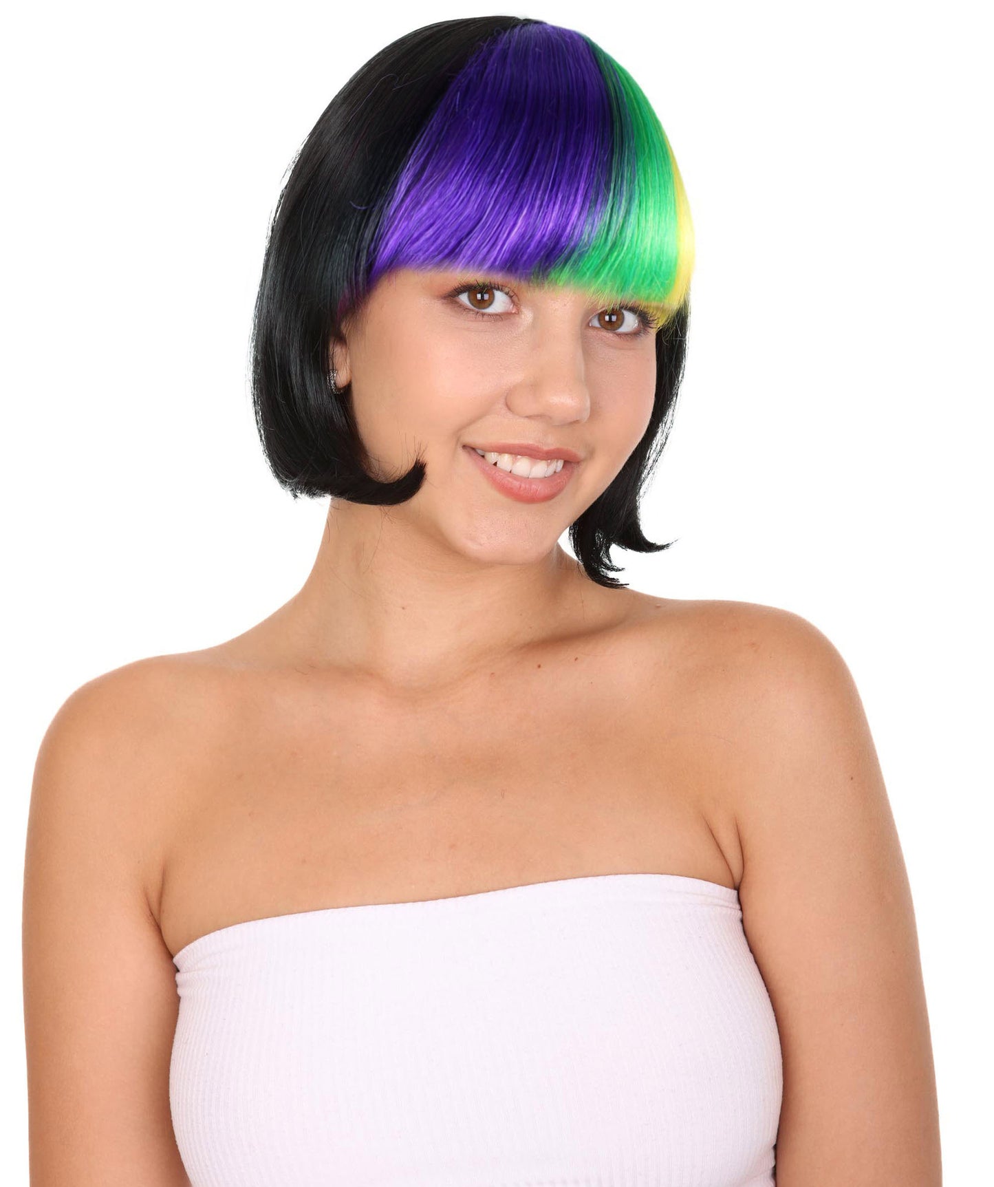 Mardi Gras Bob Womens Wig | Colorful Fancy Party Event Ready Halloween Wig | Premium Breathable Capless Cap