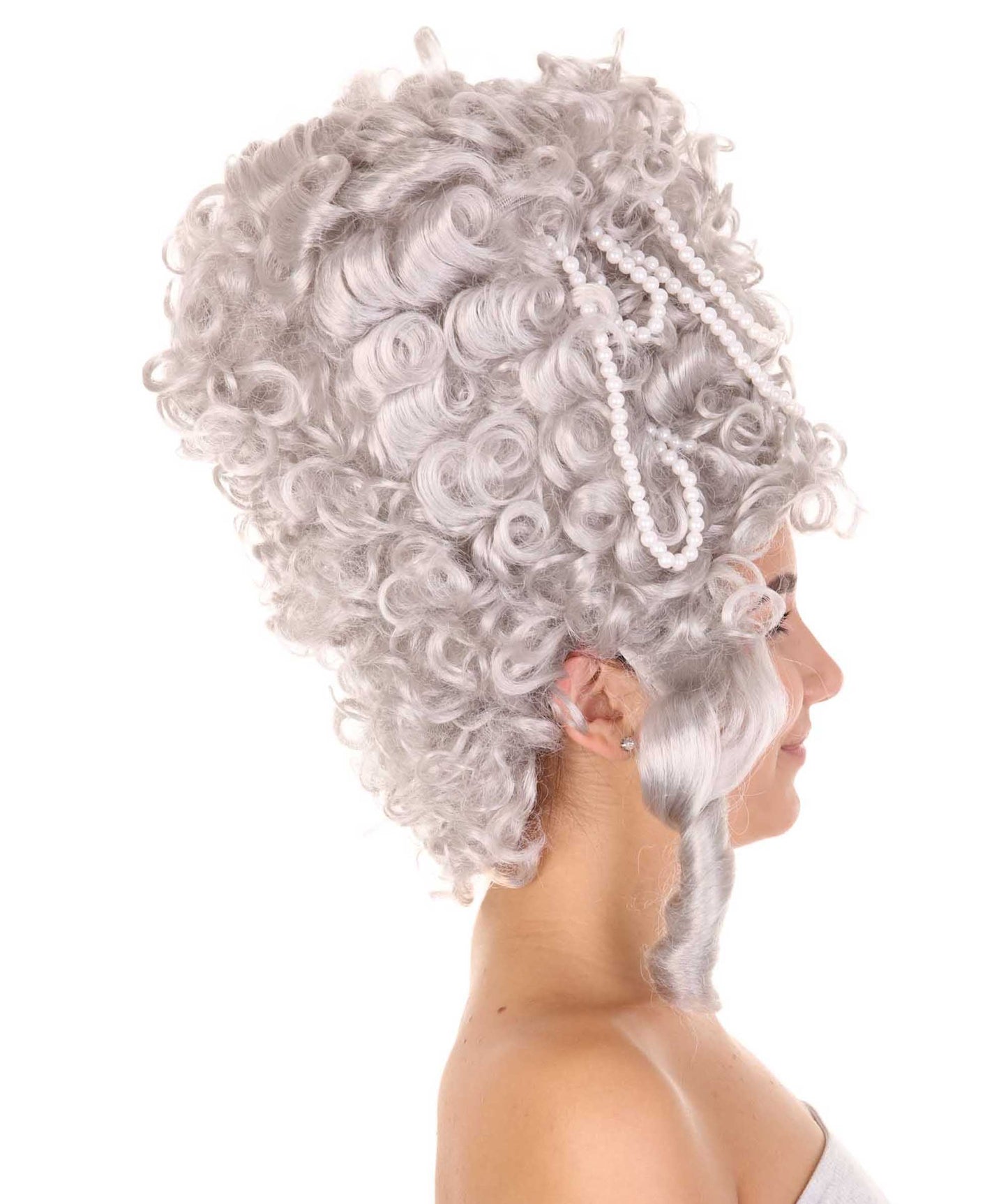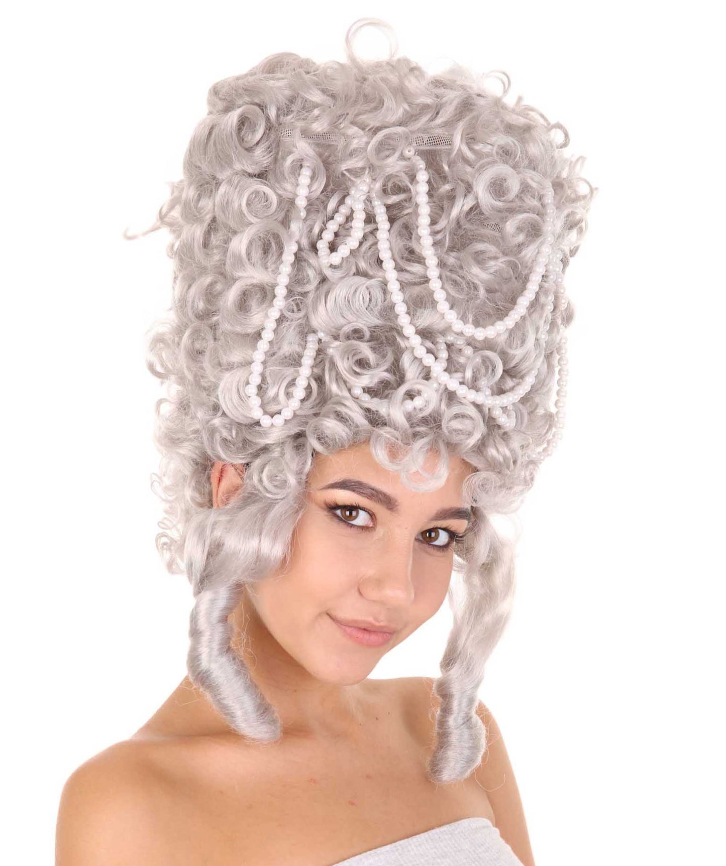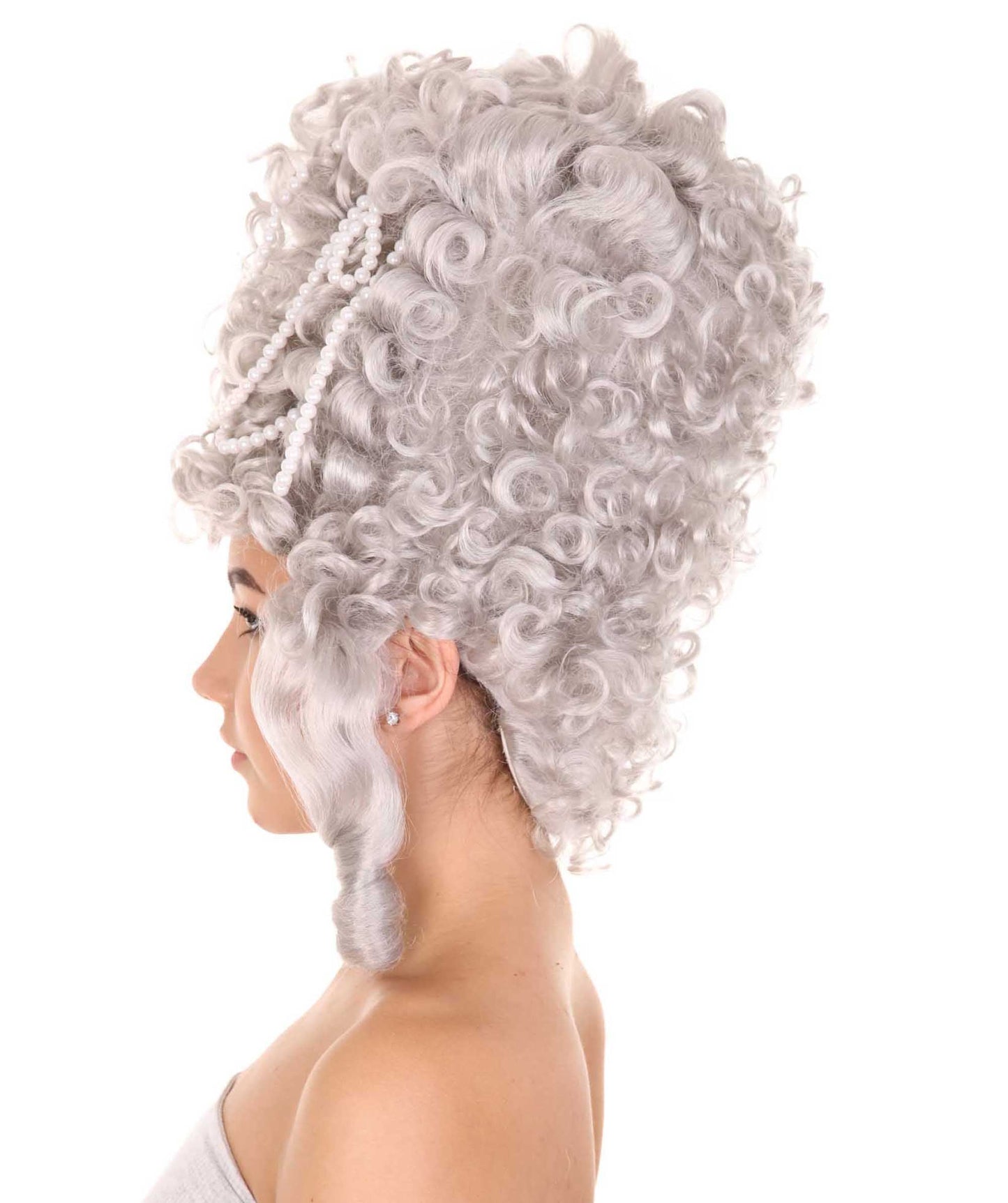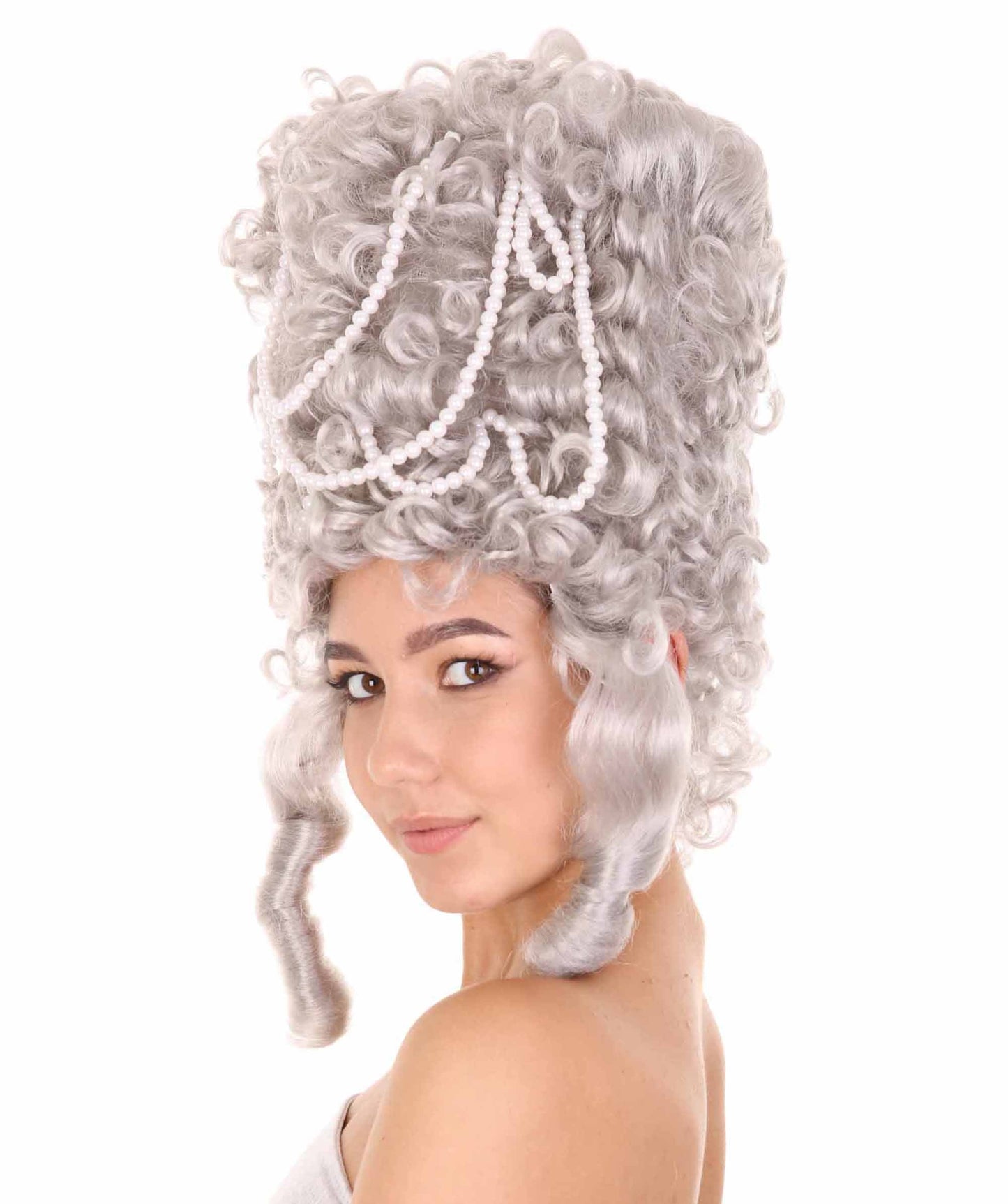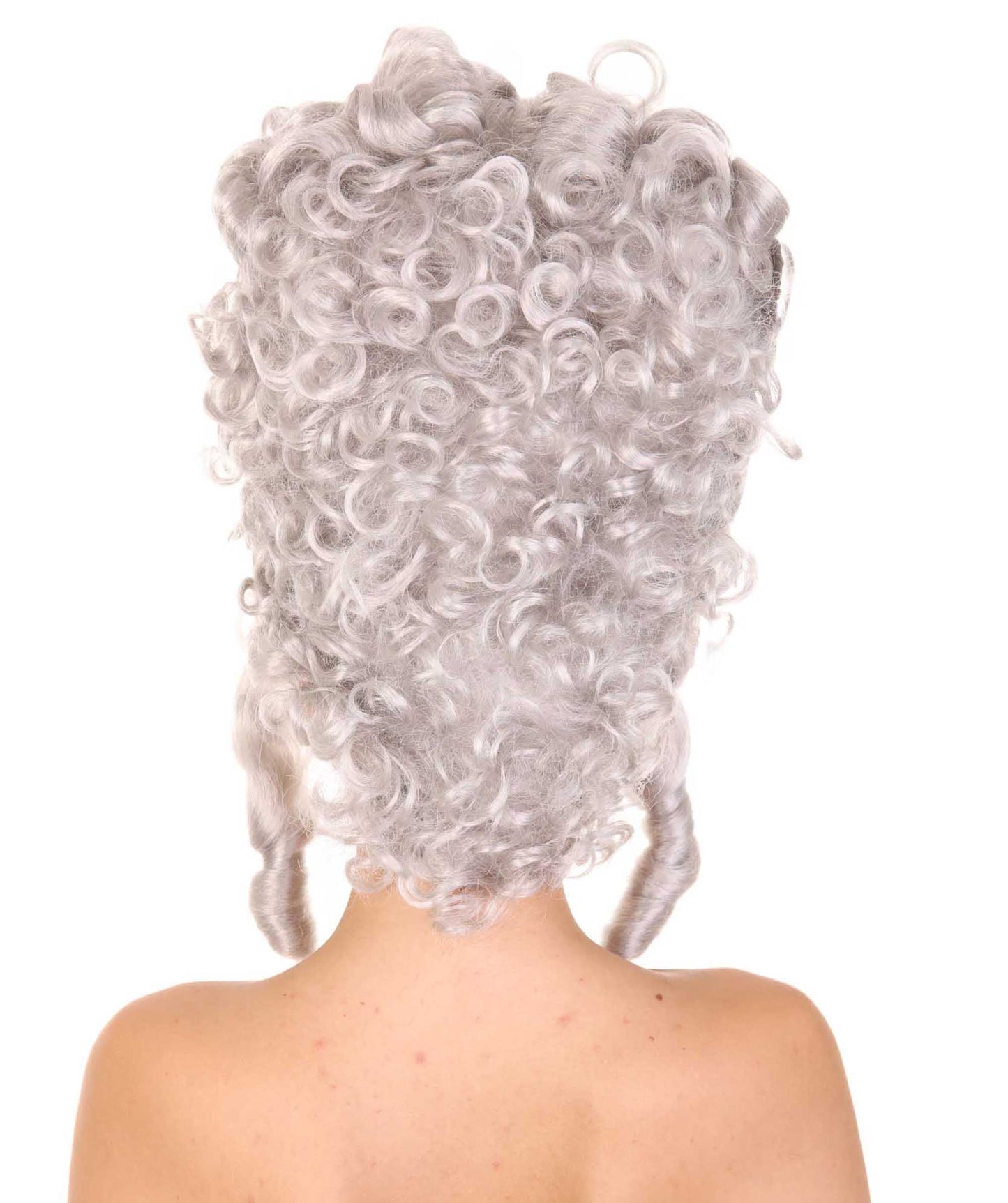 HPO Women’s Baroque Grey Wig – Tall 18th Century-Style Fancy Dress Wig for Adults – Historical Costume Hair for Masquerade, Theatre & Halloween