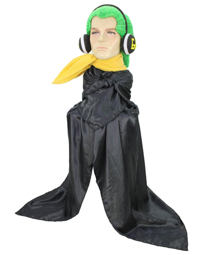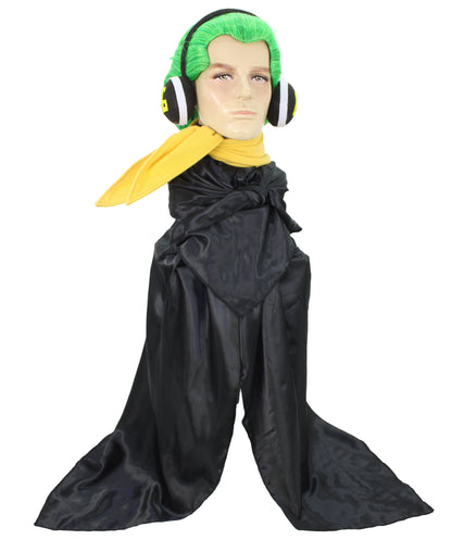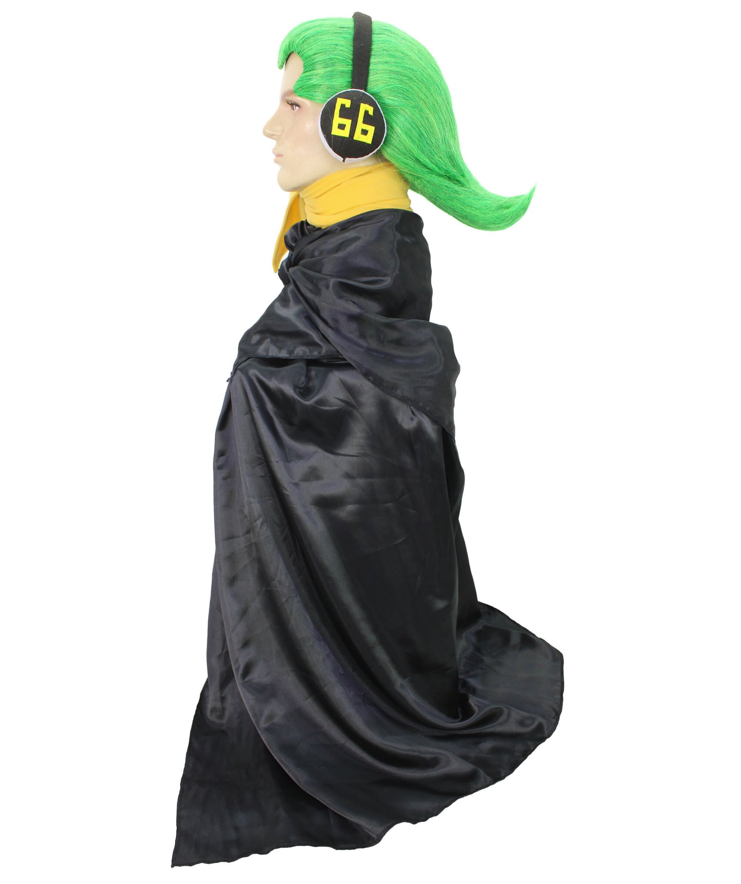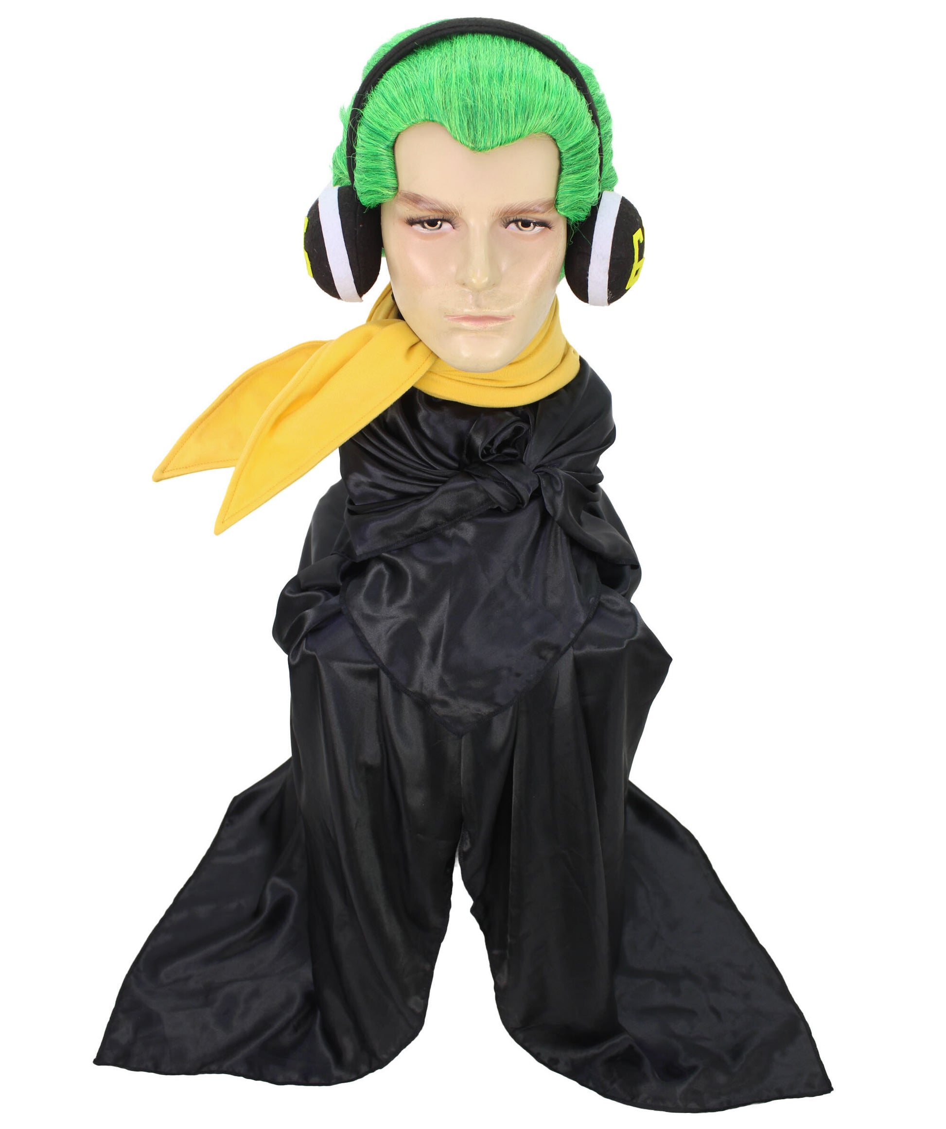 Men's Anime Commander Villain Green Wig with Scarf | Perfect for Halloween | Flame retardant Synthetic Fiber