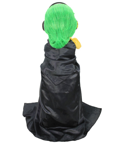 The wig features a striking emerald green hue that embodies the essence of a formidable antagonist. Its sleek and slightly tousled style adds depth and character, giving the wearer an air of calculated intensity reminiscent of a commanding villain.