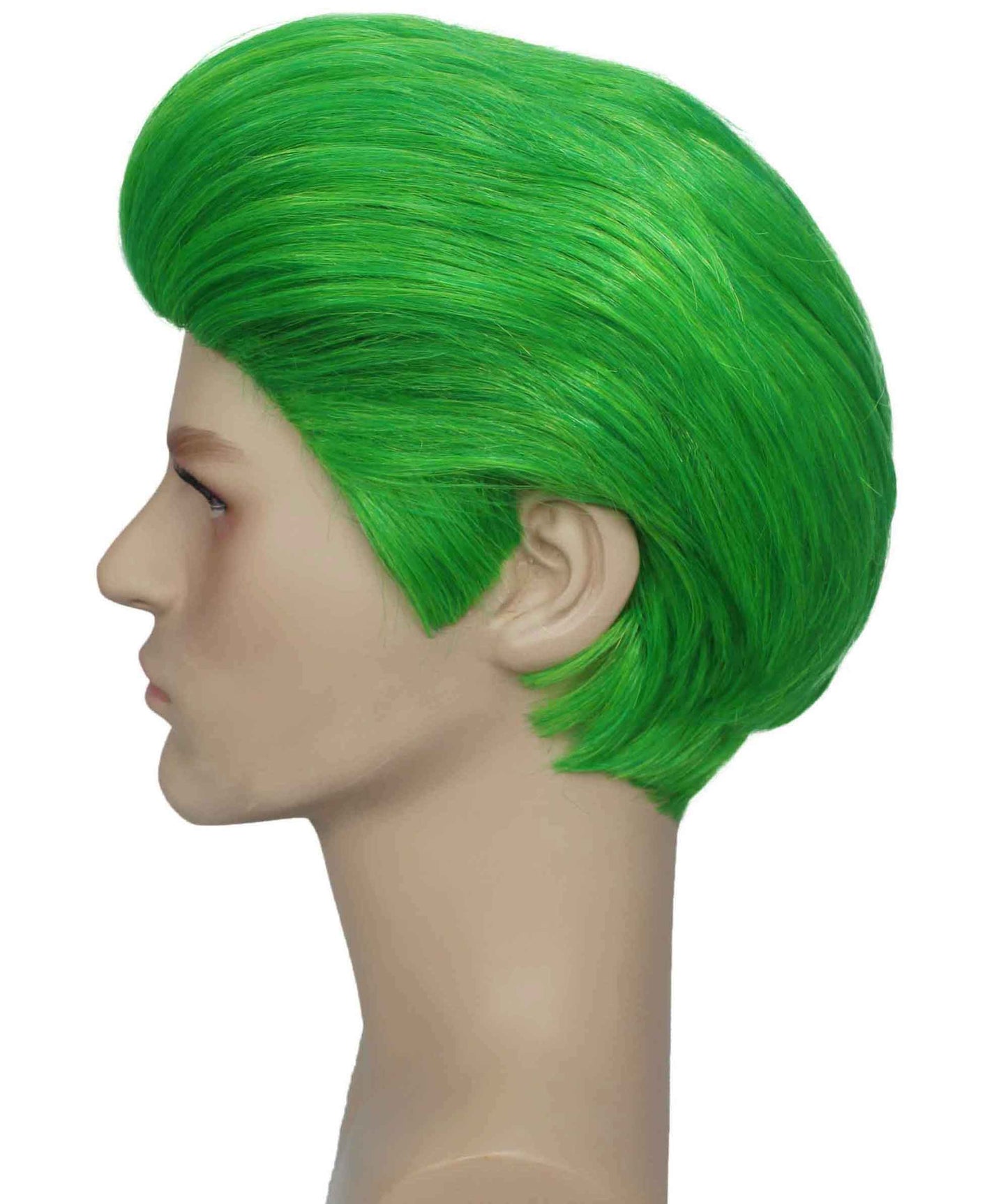 Men's Green Color Psychotic Character Wig | Slick Back Straight Synthetic Fiber | Breathable Capless Cap