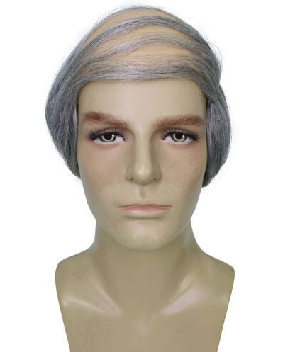 Men's Grey Balding Wig | Perfect for Halloween | Bald Cap Design | Synthetic Fiber