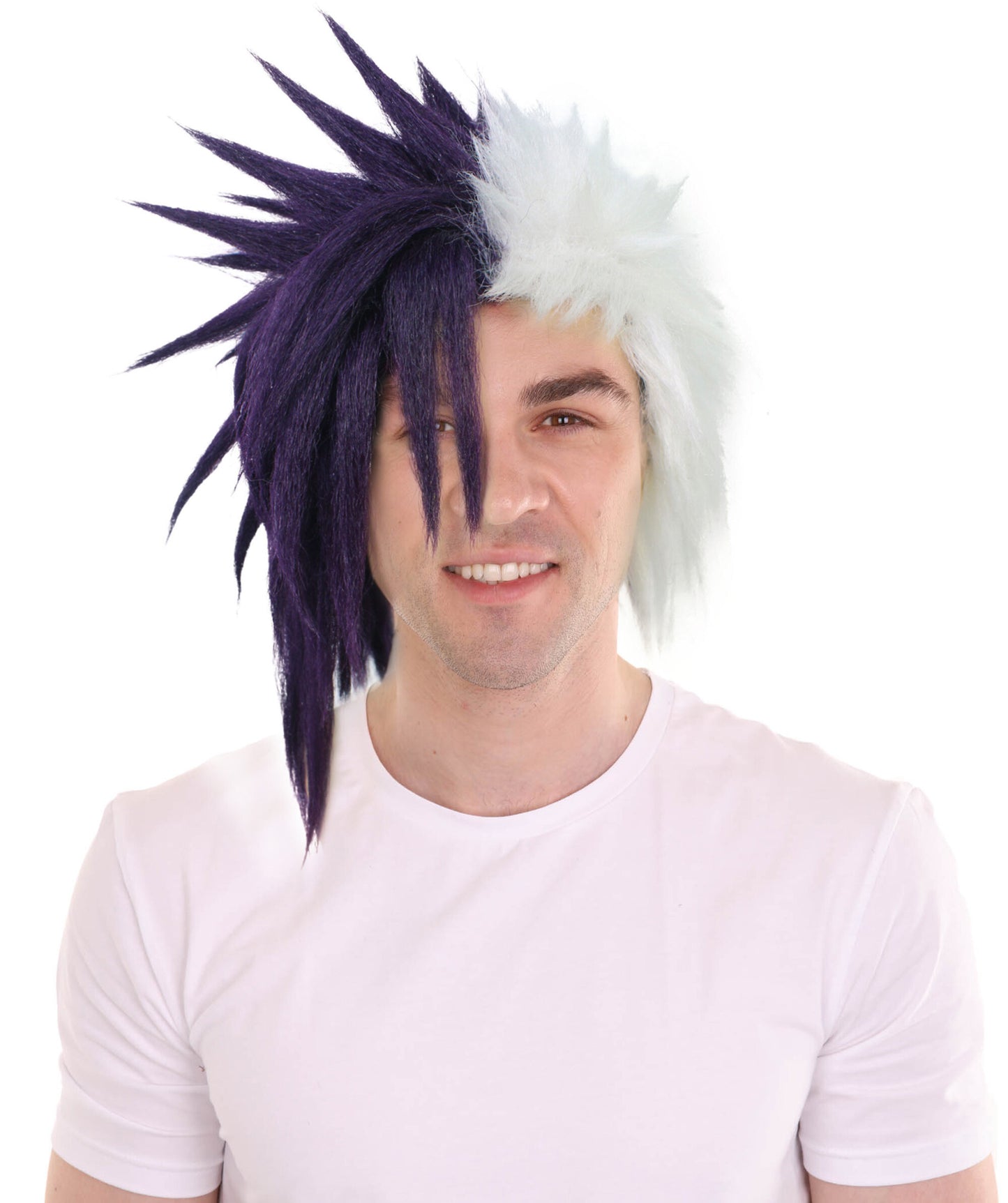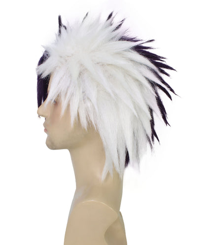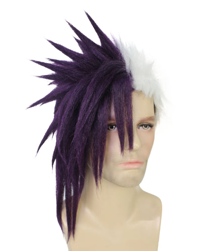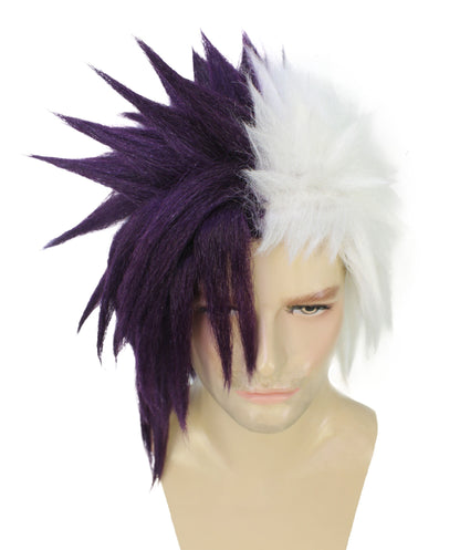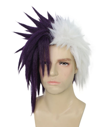 HPO Men's Half Purple & White Japanese Anime Halloween Costume Wig|Perfect for Halloween|Flame-retardant Synthetic Fiber