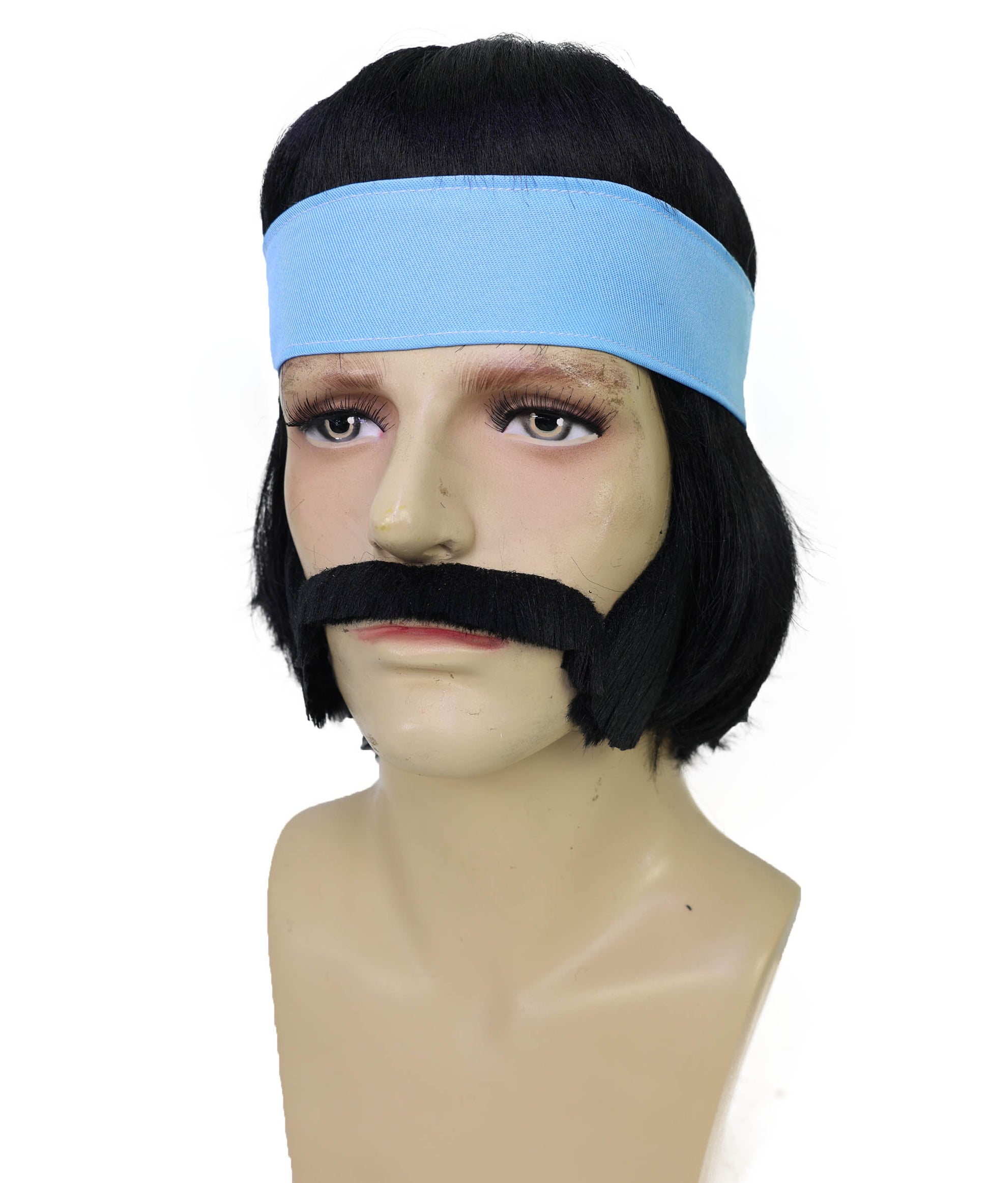 Complete accessory with wig, headband, moustache & sideburns