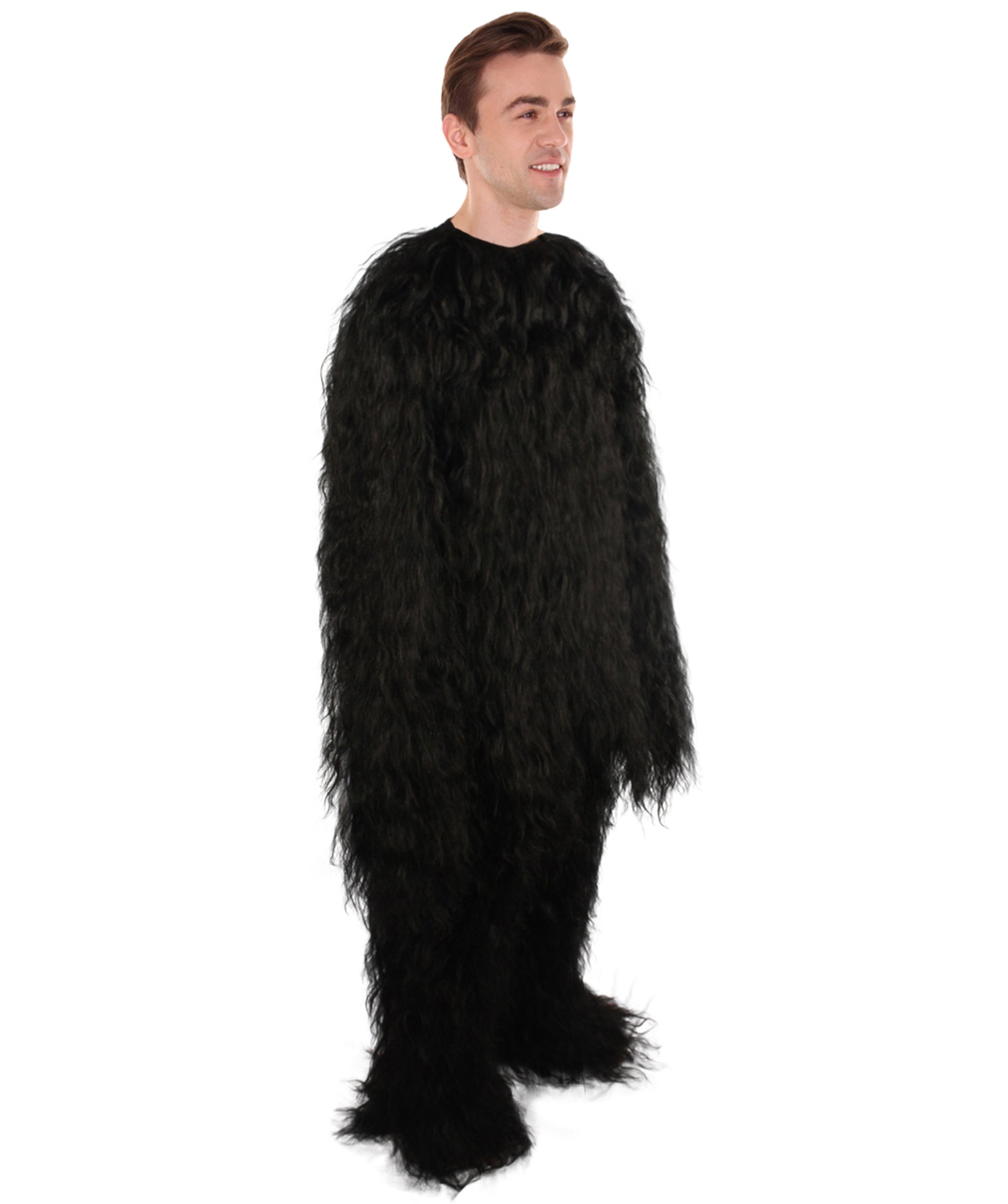 The costume features a full-body jumpsuit made of soft synthetic materials that provide both durability and comfort. The suit is covered in faux fur, giving it a realistic and rugged look that will make you stand out from the crowd. Pair it with an ape mask to complete the look.
