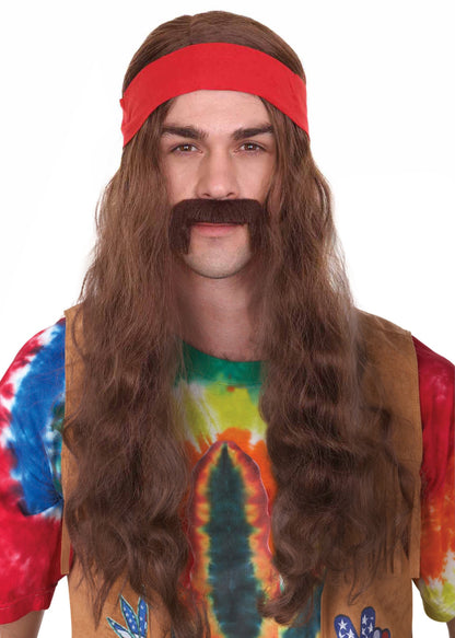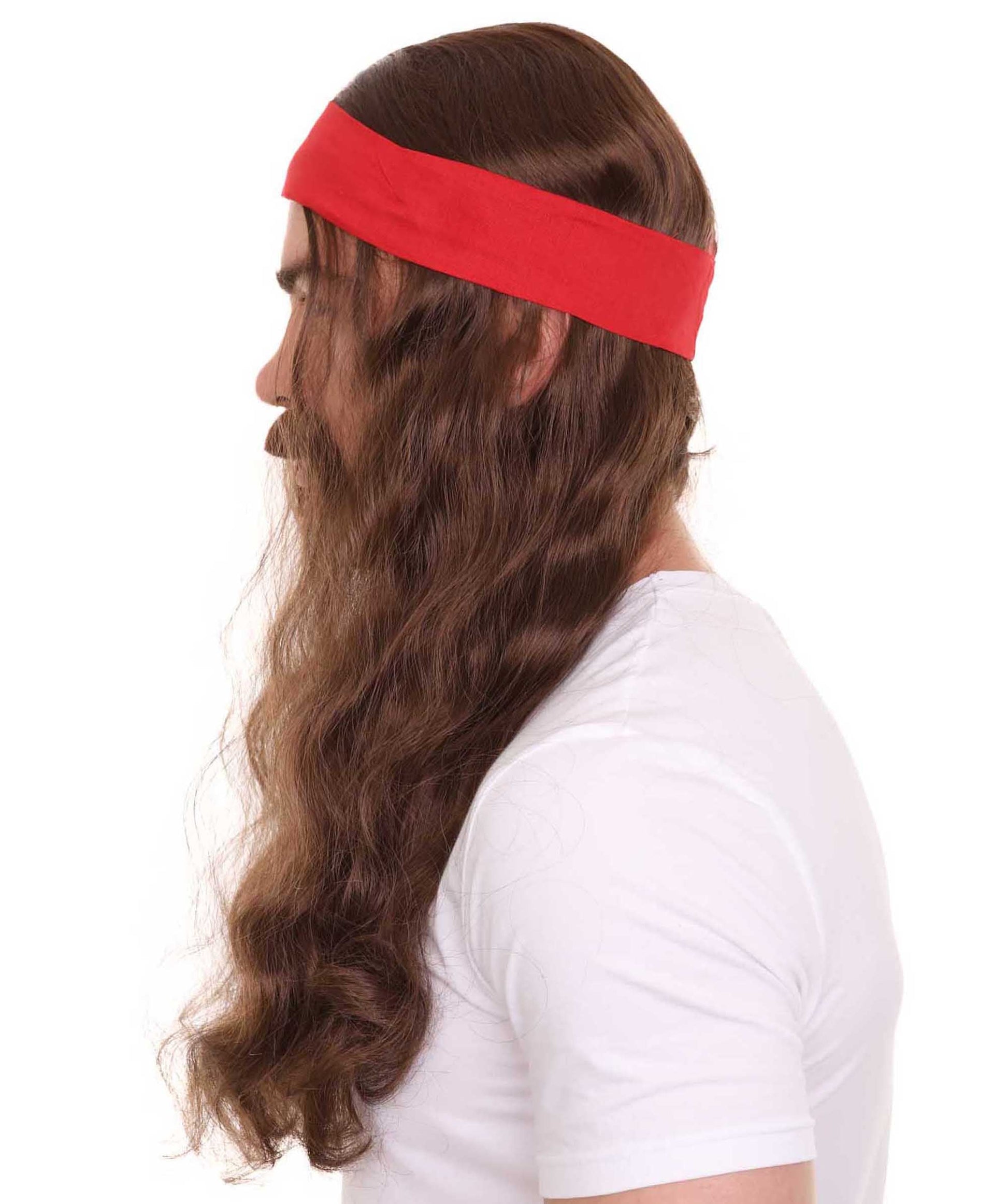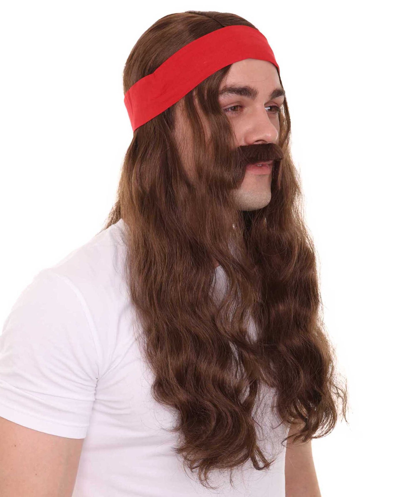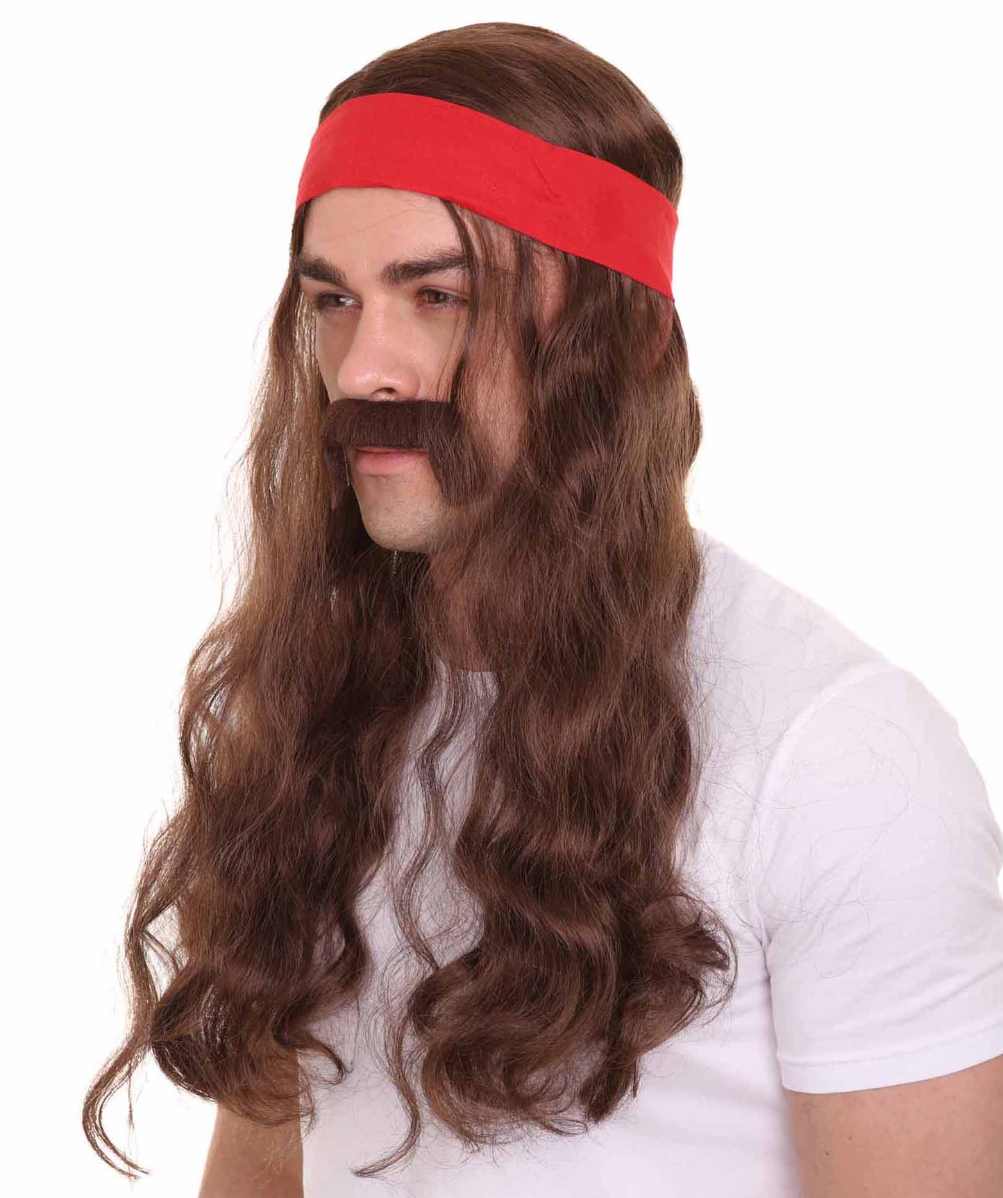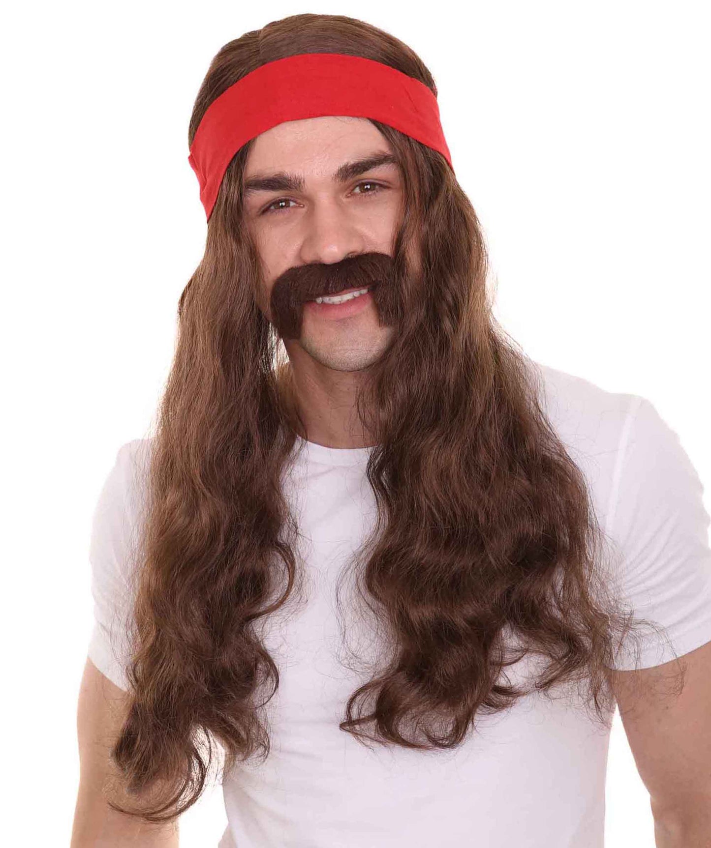 Mens Pirate Wig and Moustache | Brown Long Wig | Premium Breathable Capless Cap