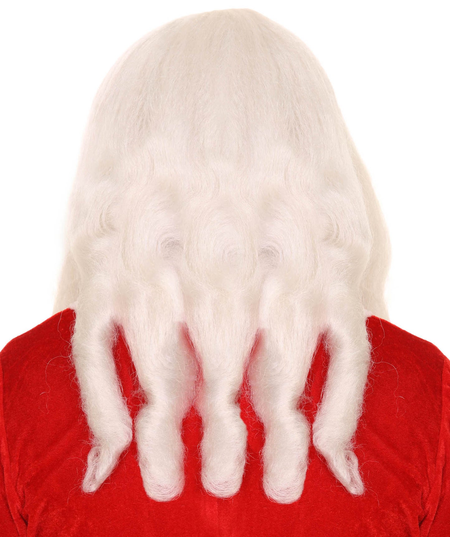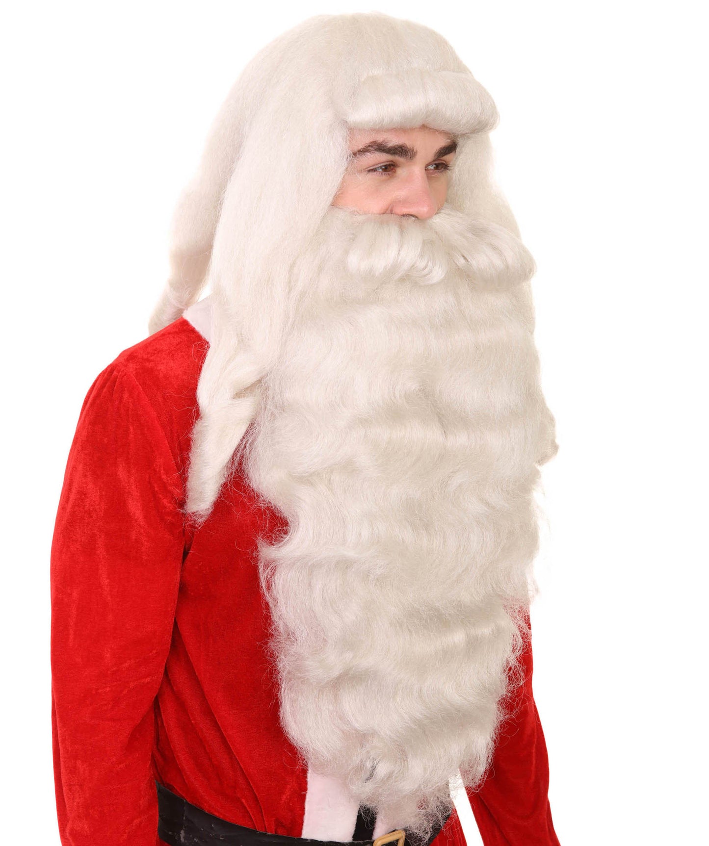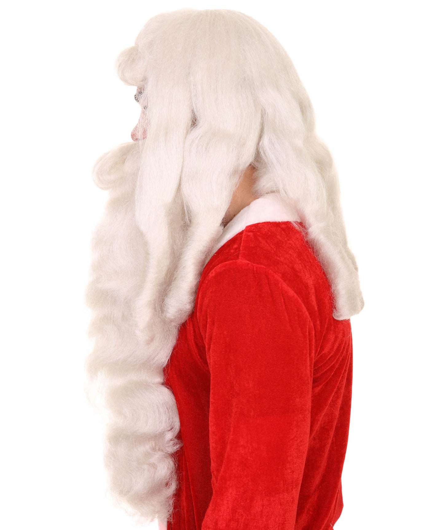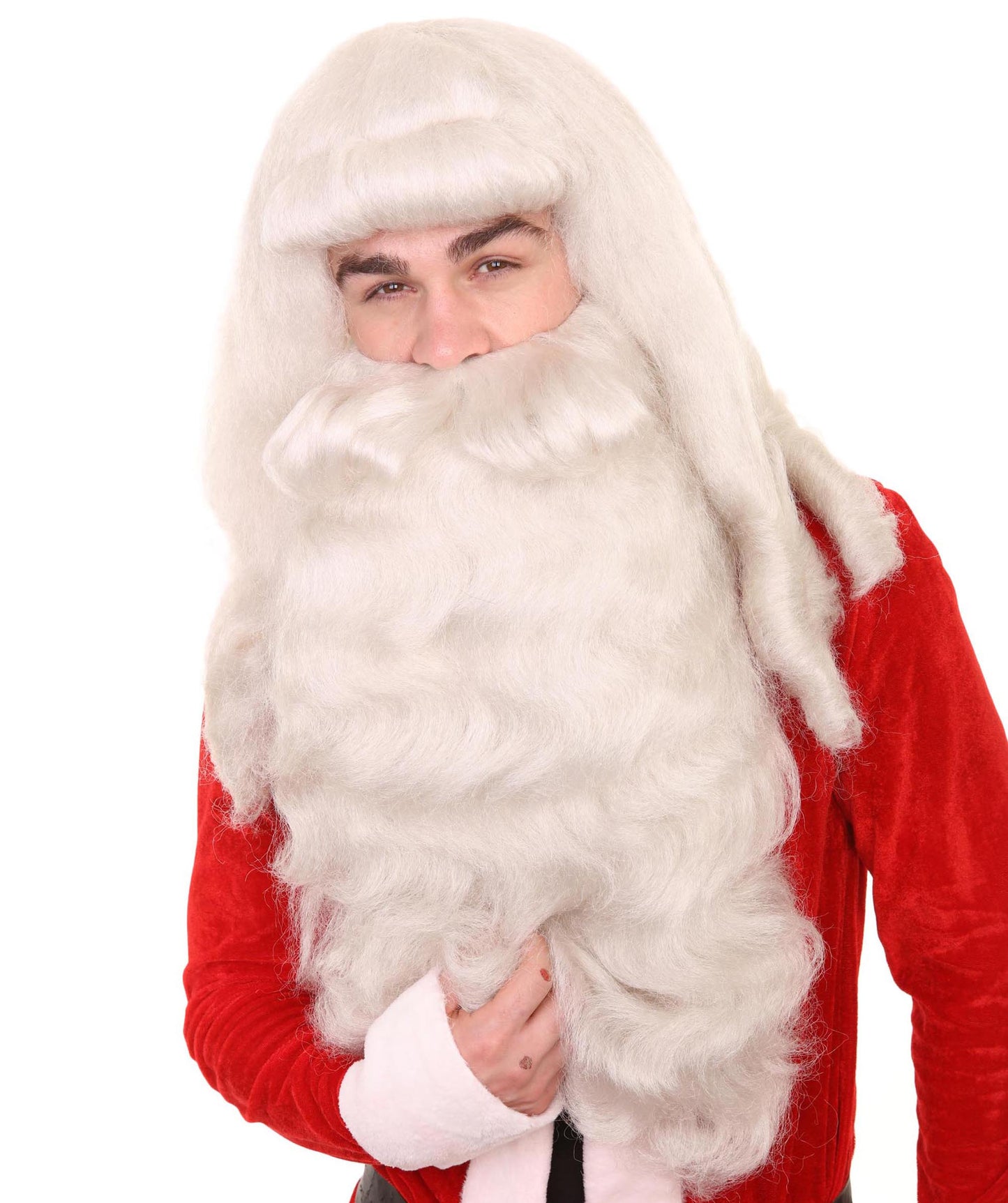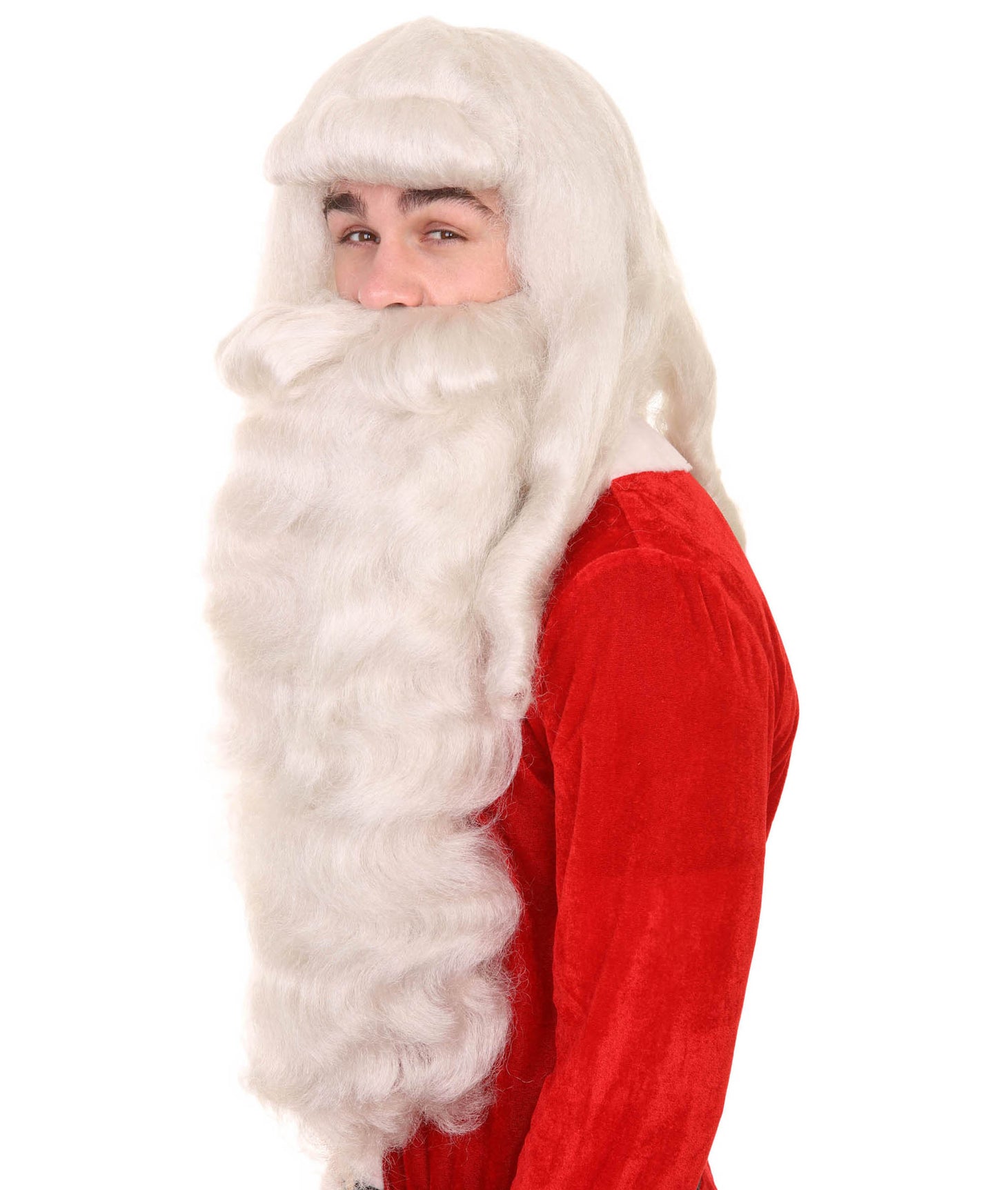 Men's Santa Claus Long Wig and Beard Set | White Merry Christmas Costume | Premium Breathable Capless Cap