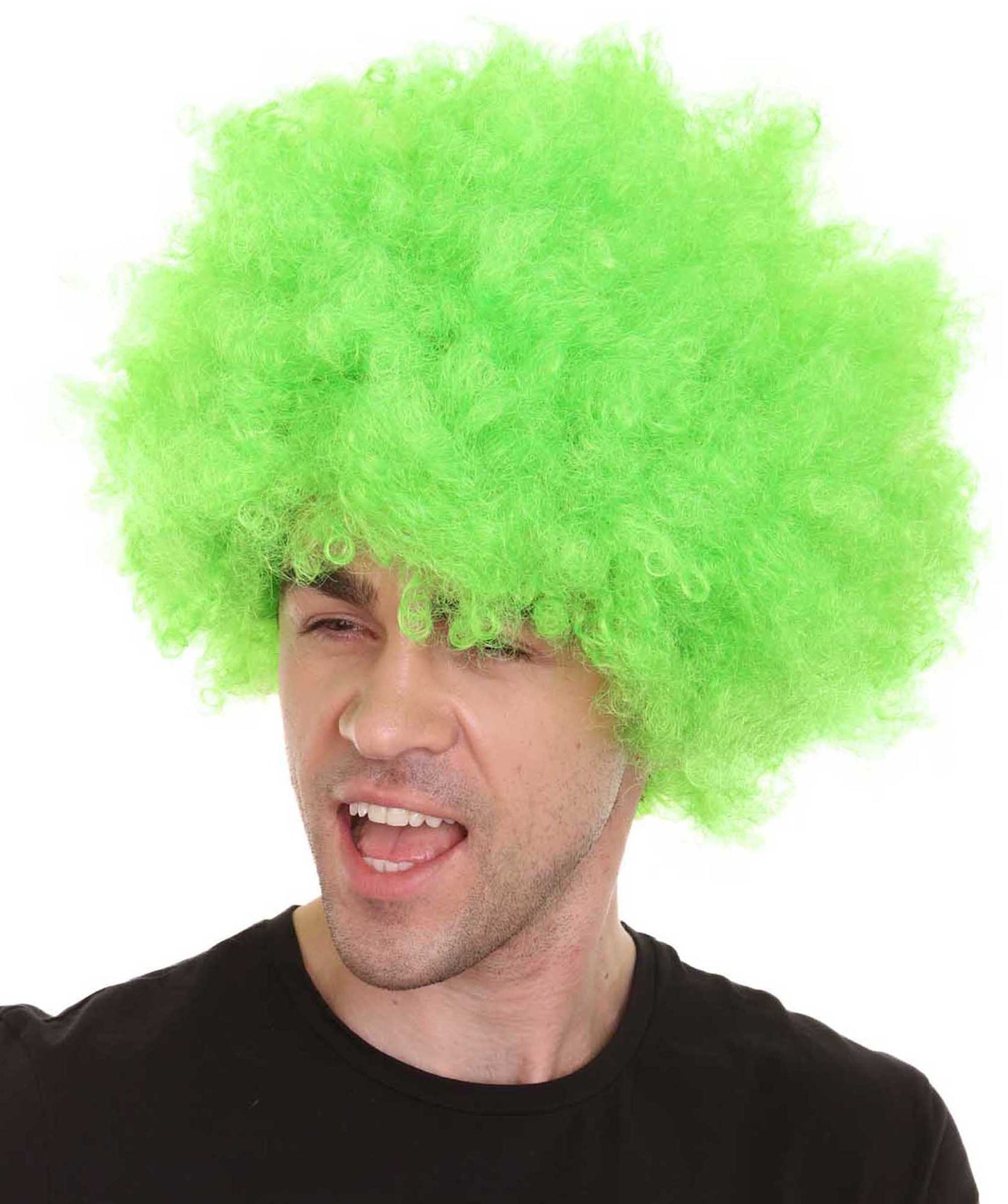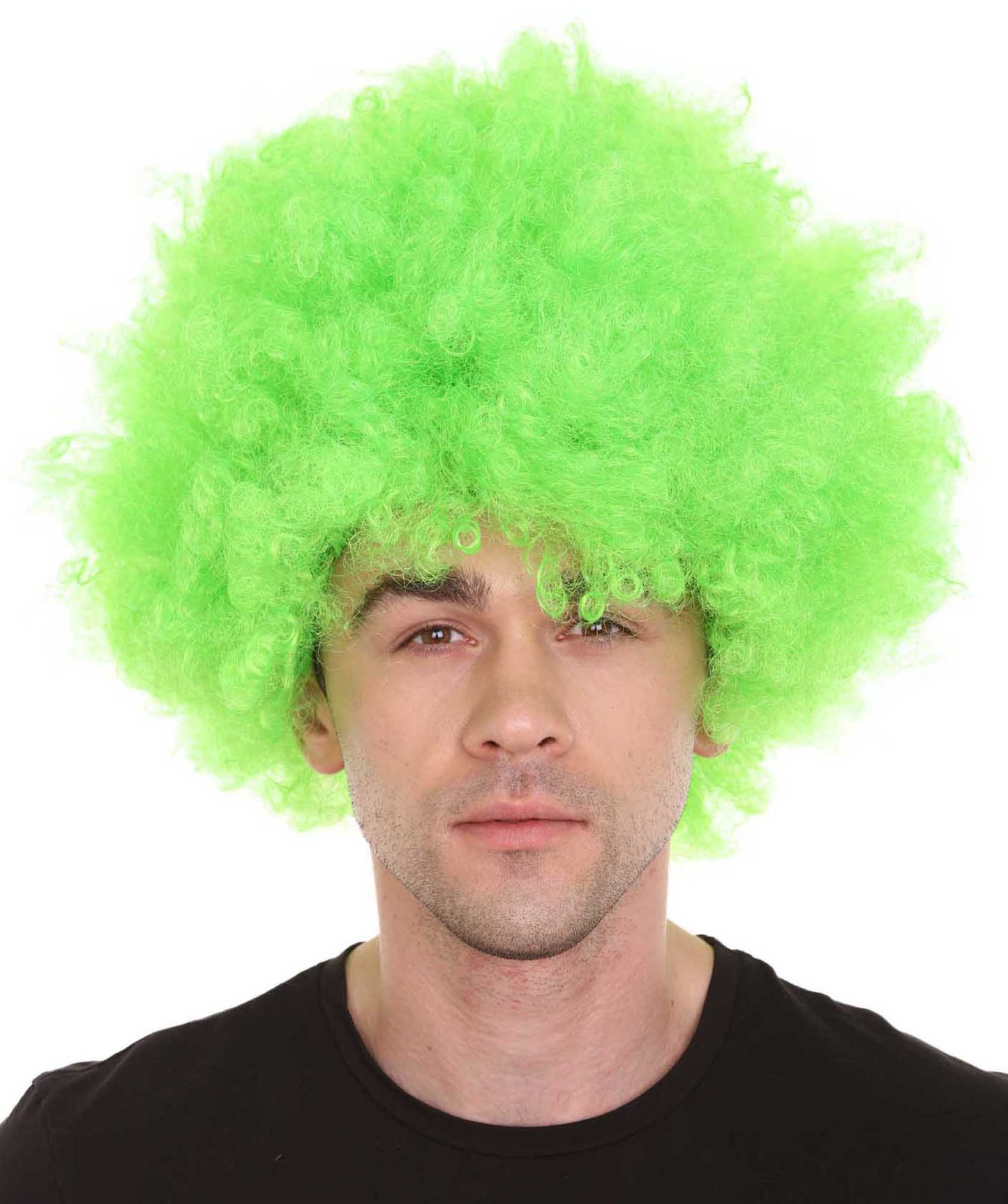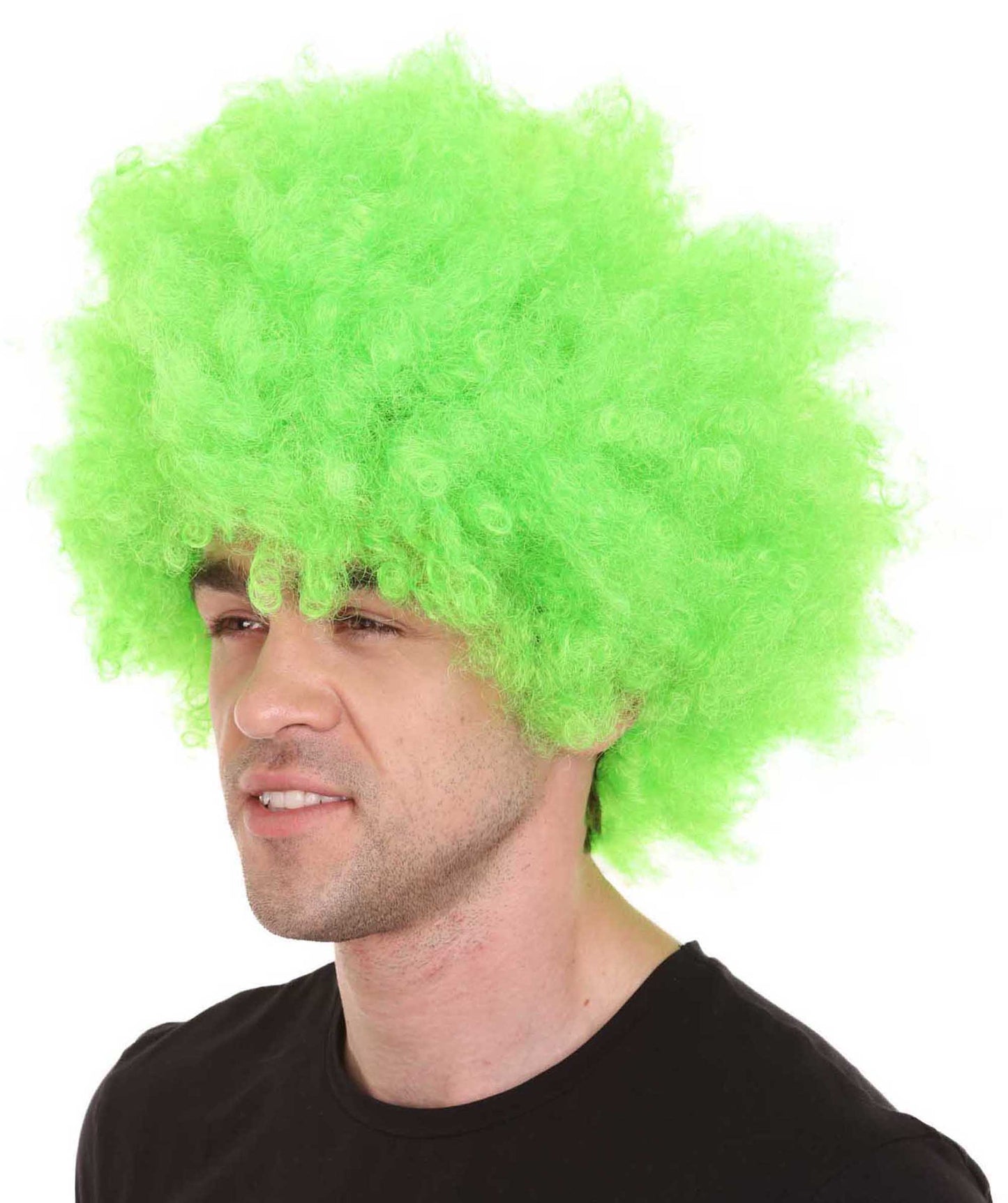 Men's Super Afro Wig | Green Jumbo Halloween Wig | Premium Breathable Capless Cap