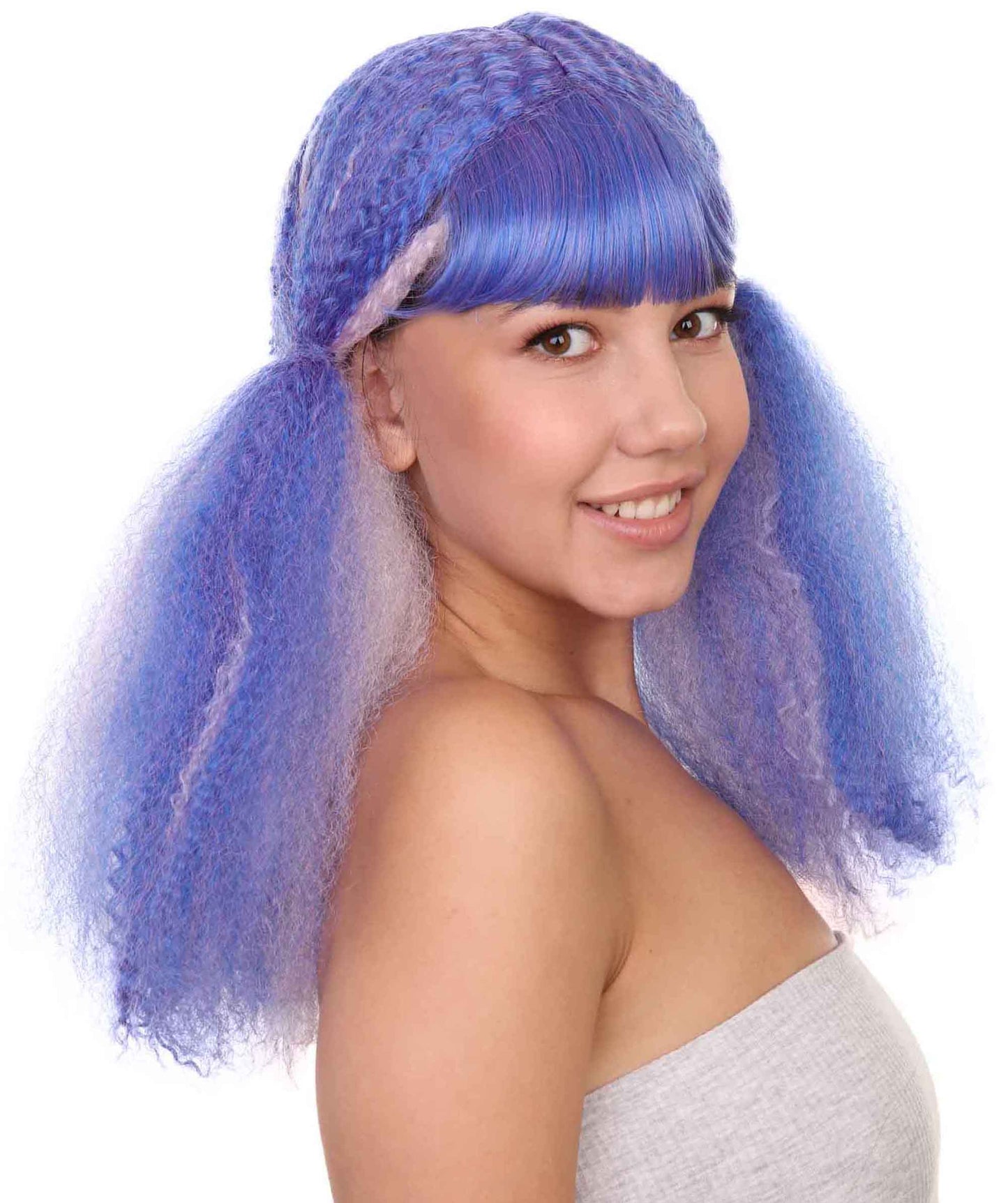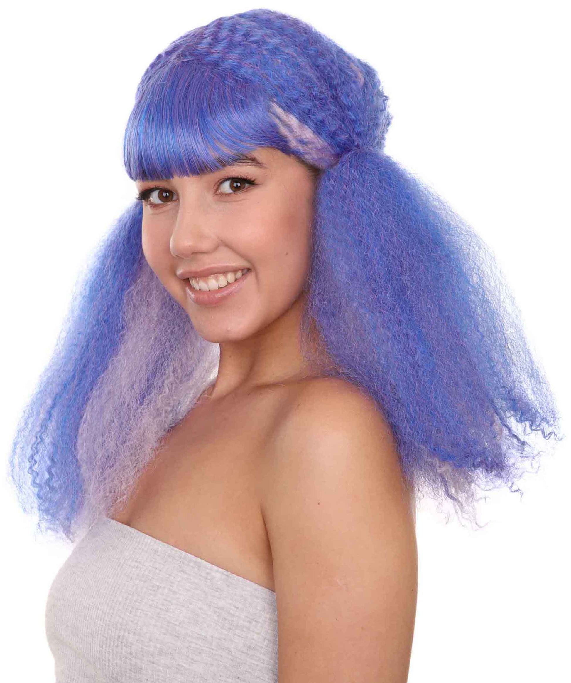 The wig is made of good-quality synthetic fiber and is colored a pretty shade of purple, making it the perfect accessory to complete your doll costume. The tiny curly strands and ponytails of the wig are designed to give you an adorable, girly look that is sure to make you stand out. This wig is incredibly comfortable to wear and comes with an adjustable cap that can fit most head sizes comfortably. It is also lightweight and won't cause any discomfort, even after wearing it for extended periods.