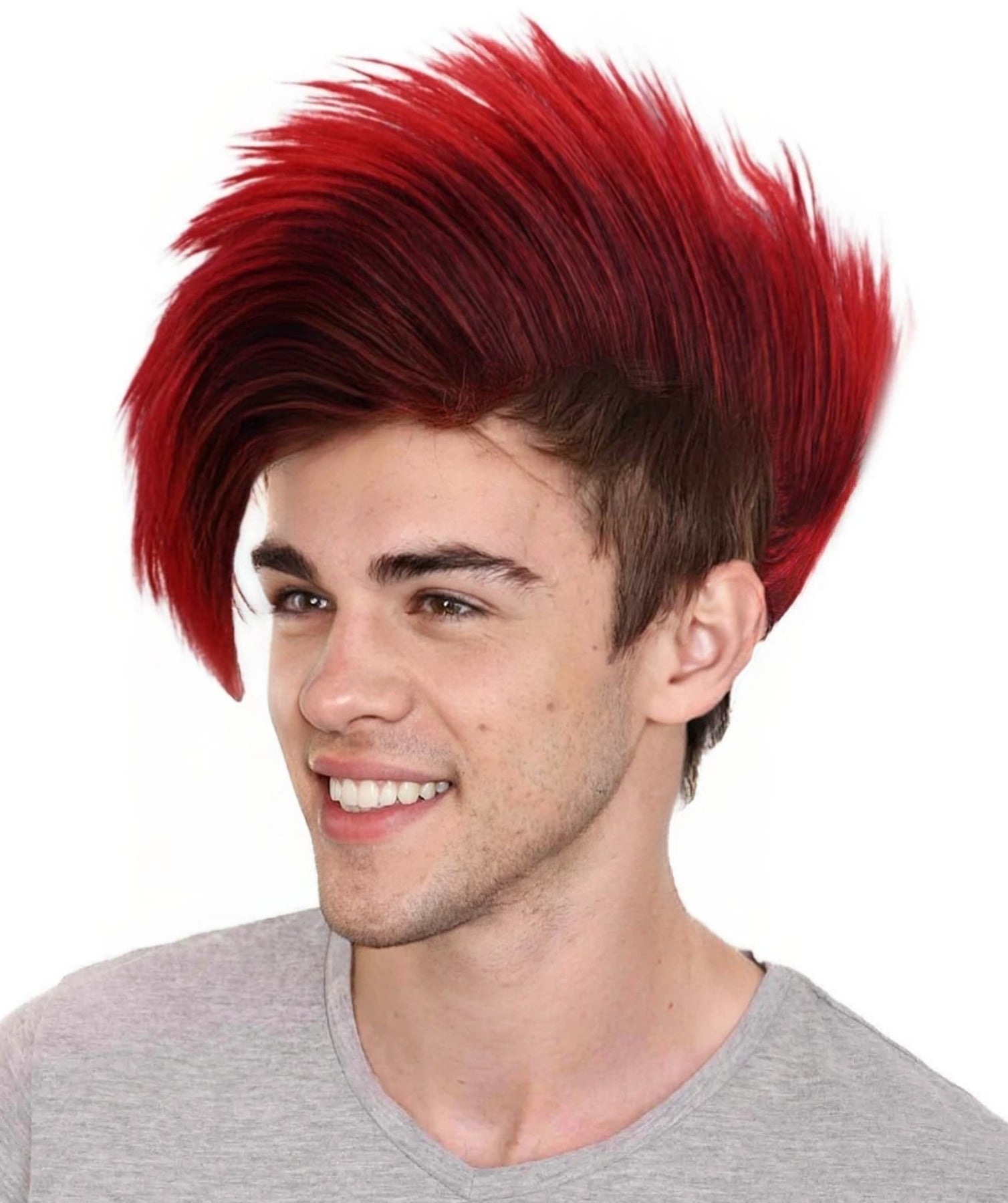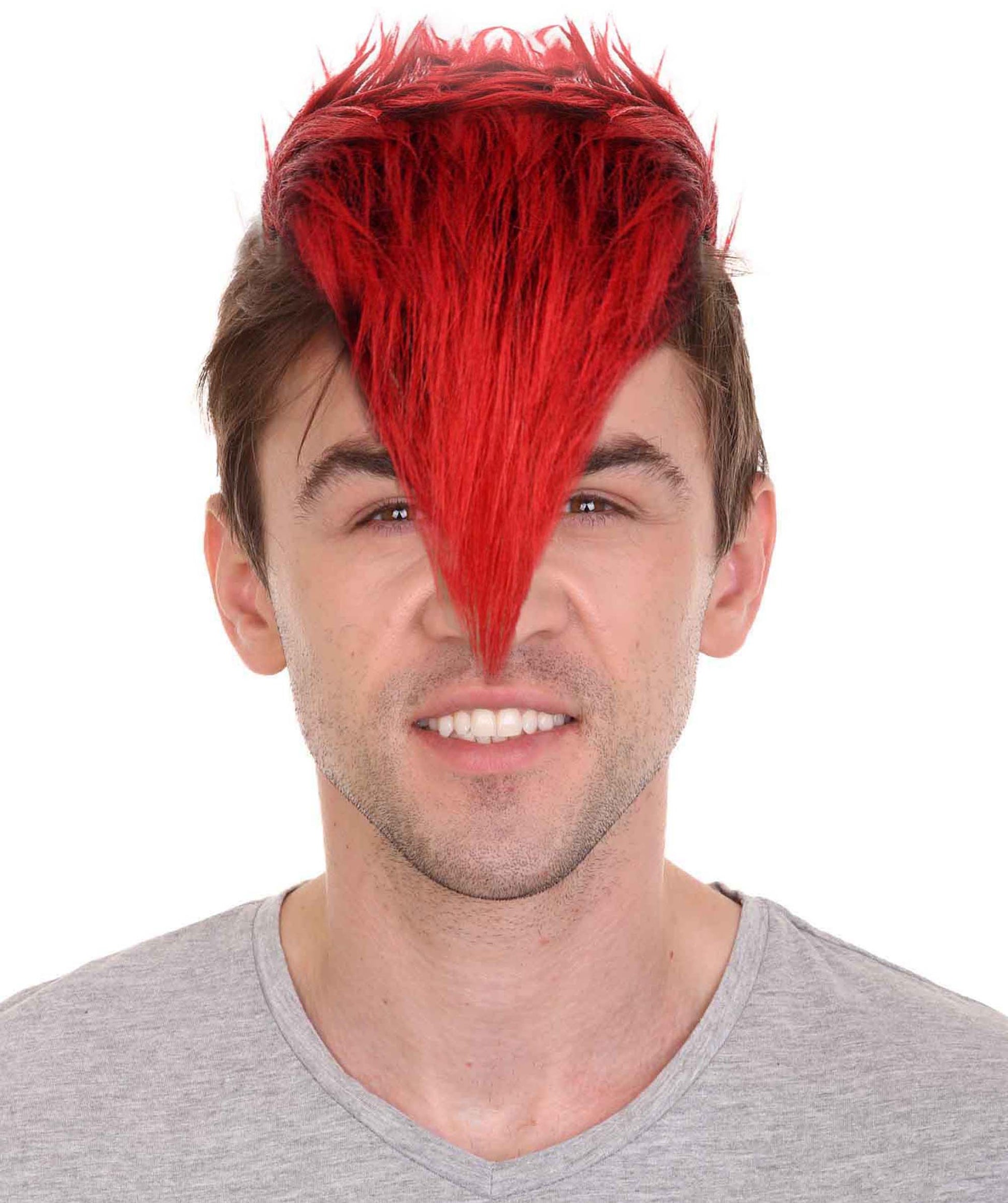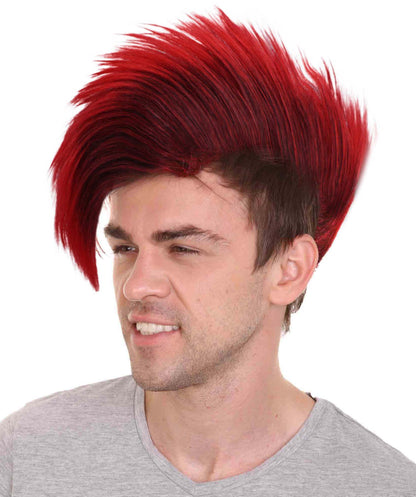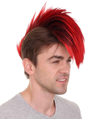Men’s Red & Black Mohawk Wig – Spiked Short Costume Wig for Adults – Punk Rock Halloween Fancy Dress Hairpiece