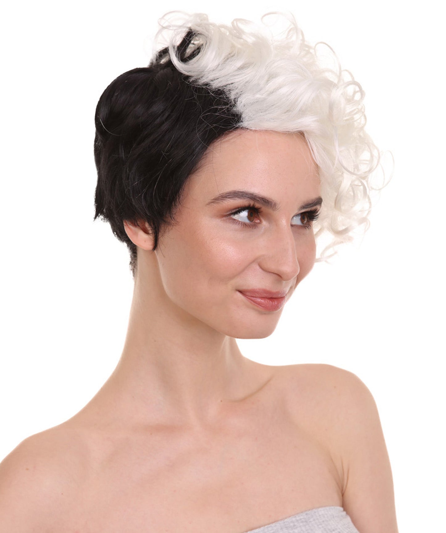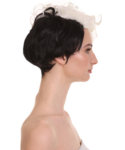 Womens Wig TV/Movie Short Black & White Halloween Wig | Premium Breathable Capless Cap
