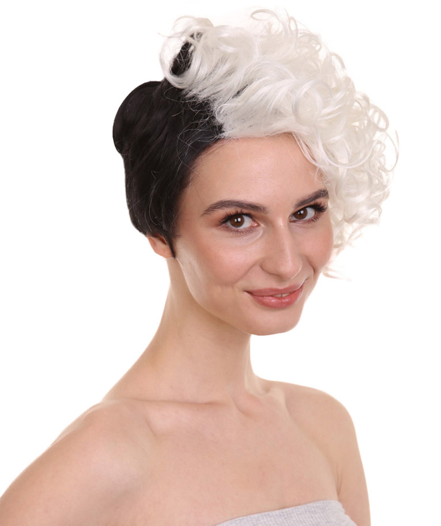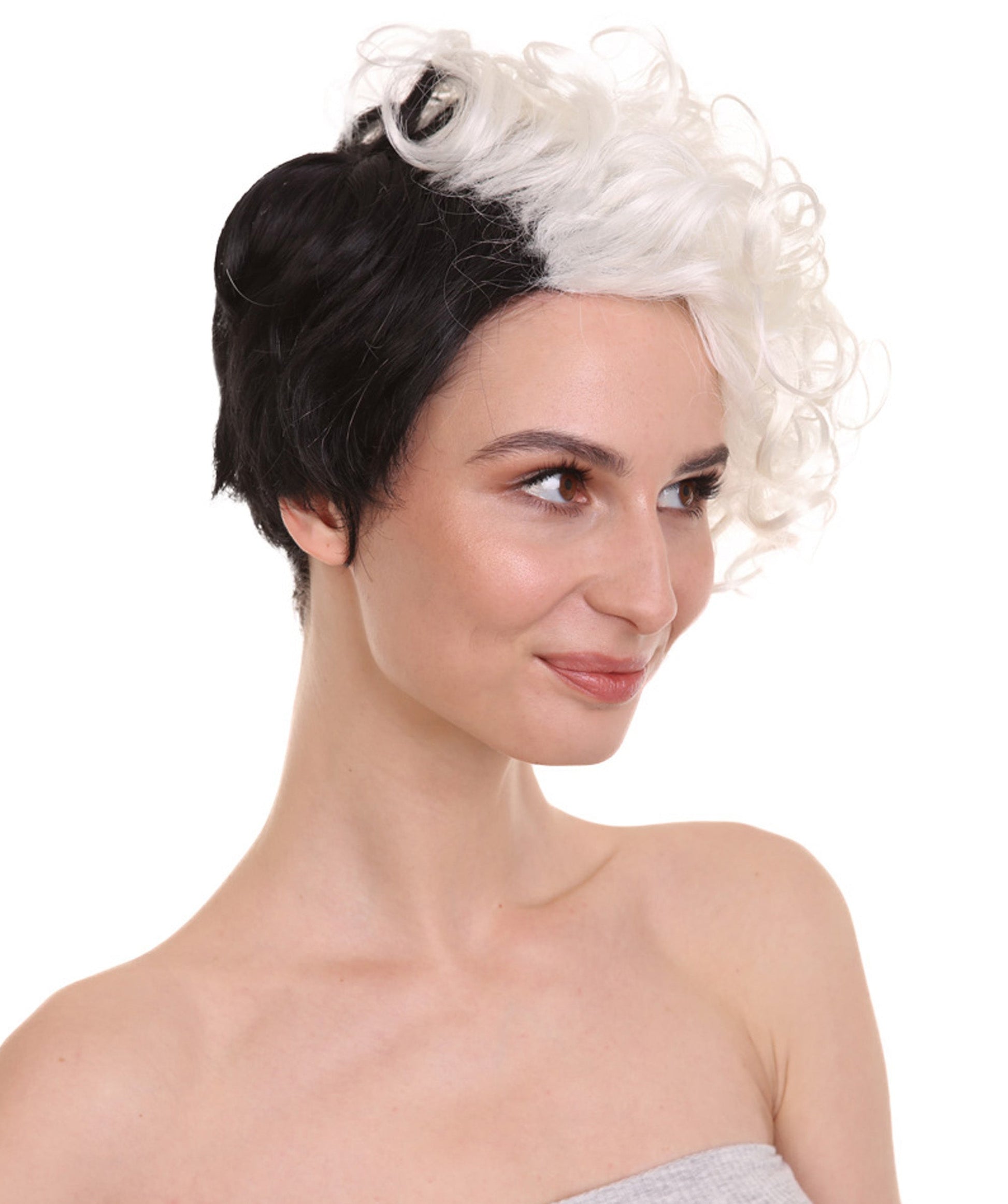 Sometimes the idea of good and evil may leave us baffled. Forget about what is good or what is bad, possessing both attributes is something that makes us human. Bring out your inner good and evil self with our short double-dyed cosplay wig. Inspired by an infamous villain from a popular classic cartoon movie about dalmations, this tendy cosplay wig will give you the evil vibe you have been missing. Made of high-quality synthetic fiber, this flame-resistant wig is perfect for Halloween or the next cosplay party you attend. Made with an adjustable lining that can be stretched up to 22 inches to fit adults and kids above 5, and with non-flammable synthetic fiber to ensure maximum comfort.