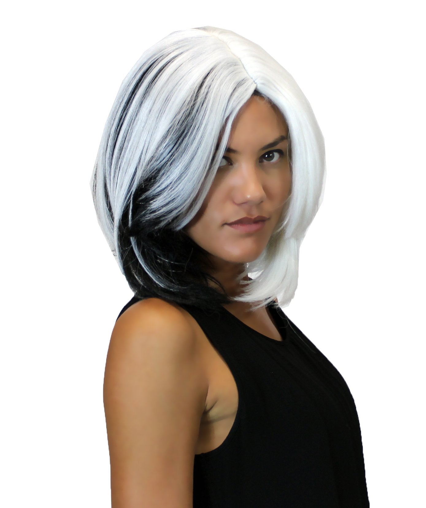 HPO Women's Black & White Spot Wig, Perfect for Halloween, Flame-retardant Synthetic Fiber