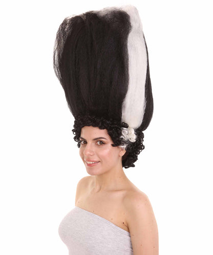 The Multiple Color Horror Bride Wig is the perfect accessory for a spooky and gothic look. This wig features long, curly black and white hair that expresses an eerie elegance to your look. This cosplay wig is made of high-quality synthetic fibers that are soft and comfortable. It is also designed to fit most head sizes and is adjustable for a secure and comfortable fit. The synthetic fibers are heat-resistant also. So you can style the wig with hot tools if desired.