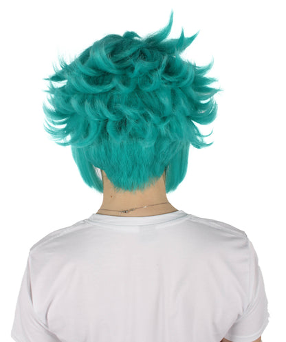 HPO Adult Men's Multi-Instrumental Musical Genius Green Gaming Wig| Perfect for Halloween| Flame-retardant Synthetic Fiber