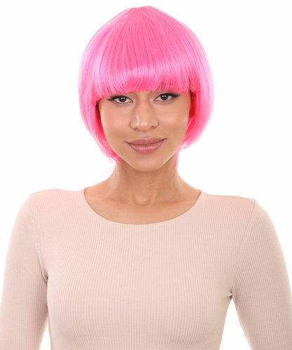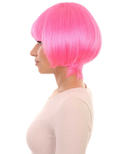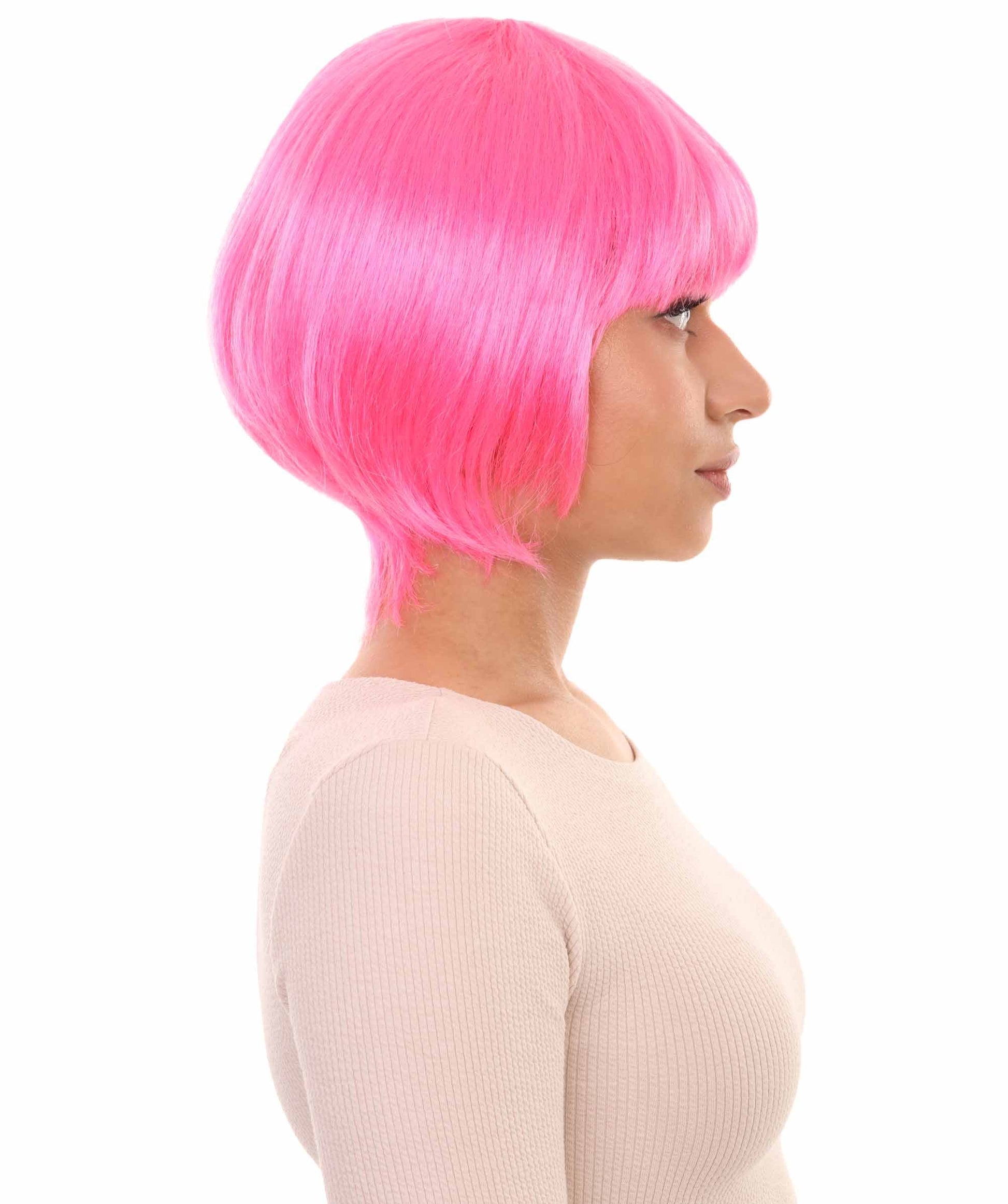 Neon Pink Bob Womens Wig | Party Ready Halloween Wig | Premium Breathable Capless Cap