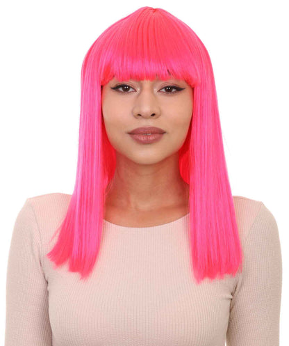 Womens Long Bob Wig | Neon Pink Cosplay Halloween Wig | Premium Breathable Capless Cap