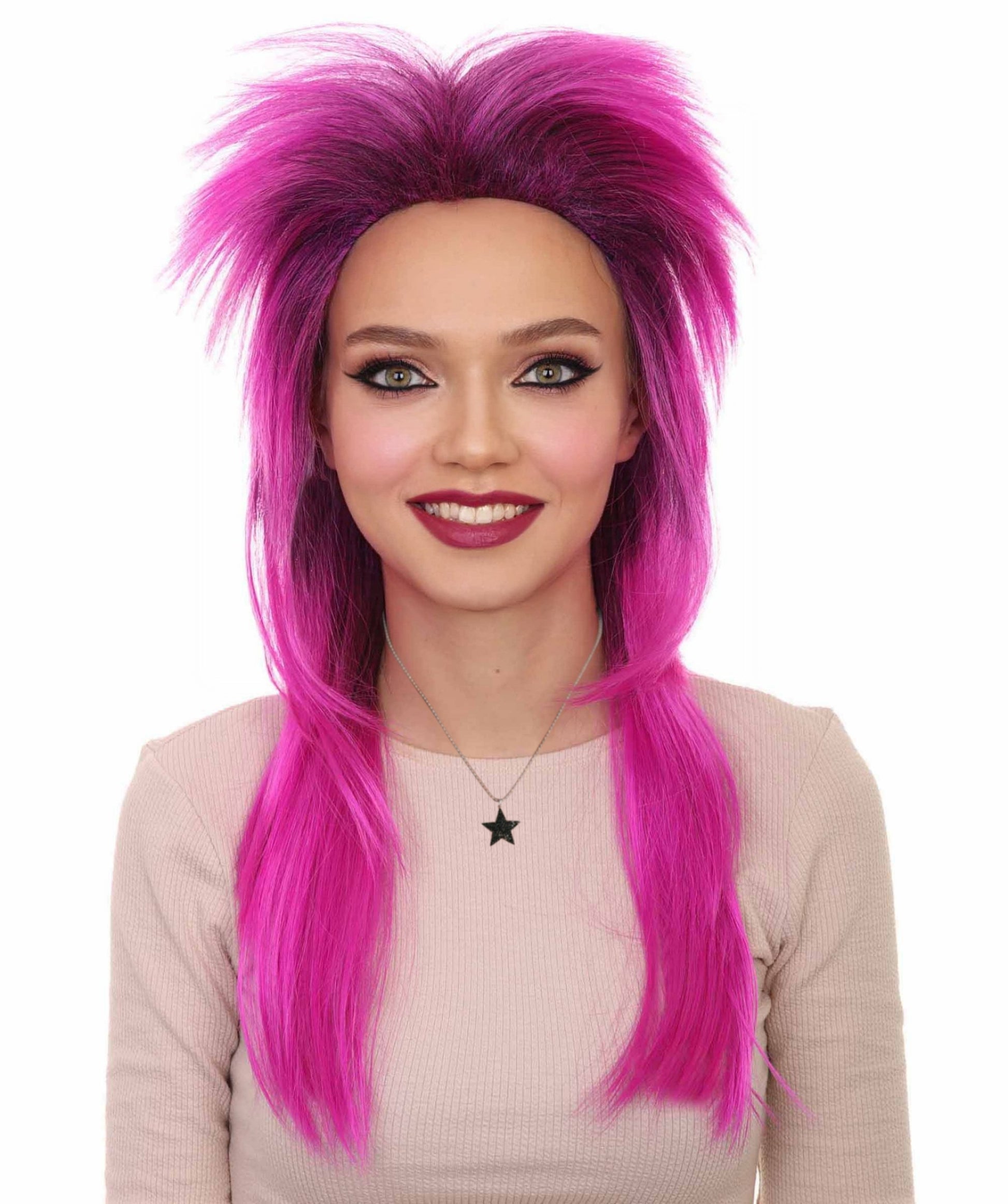 Bring the 80's back with the Neon Purple Mullet Long Wig! This Halloween, electrify the night with this vibrant and daring wig. Featuring a bold neon purple color and classic mullet design, this wig is perfect for anyone looking to make a bold statement. Made with good-quality synthetic fibers, this wig is comfortable to wear and easy to style. Whether you're a rock star, a pop star, or just dressing up for Halloween, this wig is the ultimate accessory to take your costume to the next level. Get ready to rock the night away with the Rock Star Unisex Neon Mullet Long Wig!