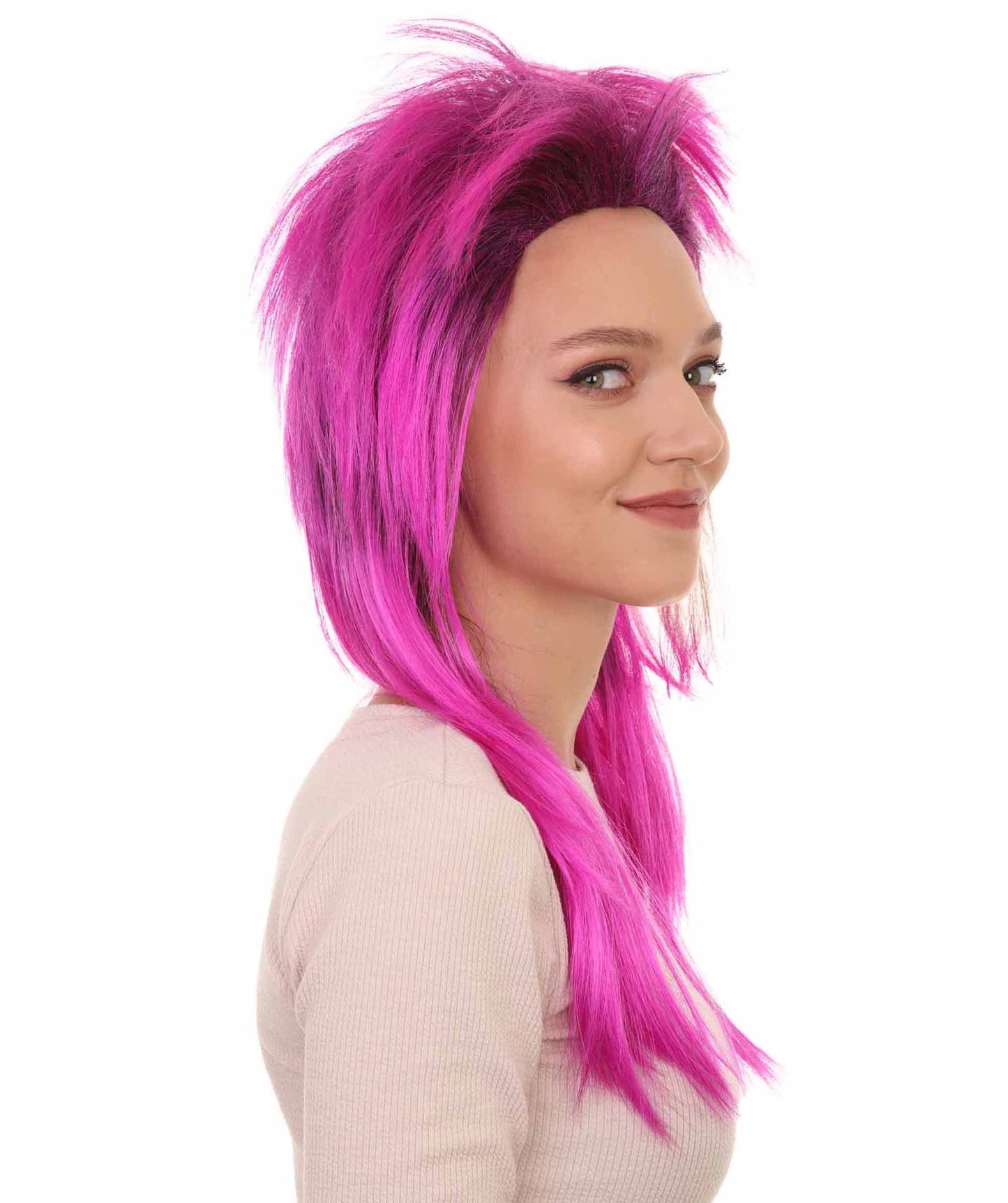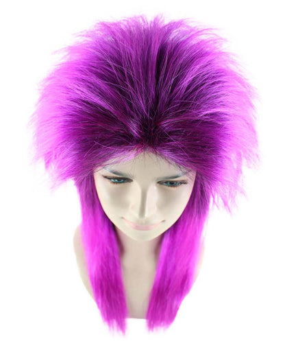 Rock Star Unisex Wig | Neon Purple 80's Mullet Long Wig | Premium Breathable Capless Cap
