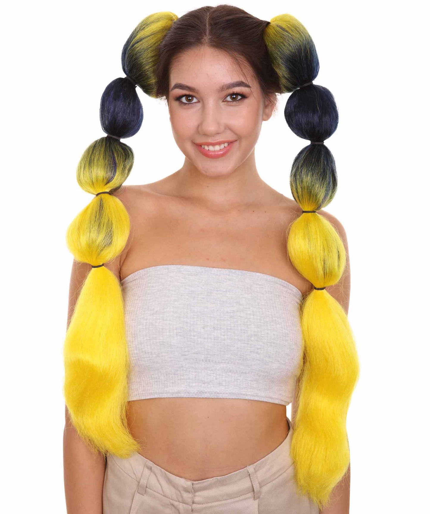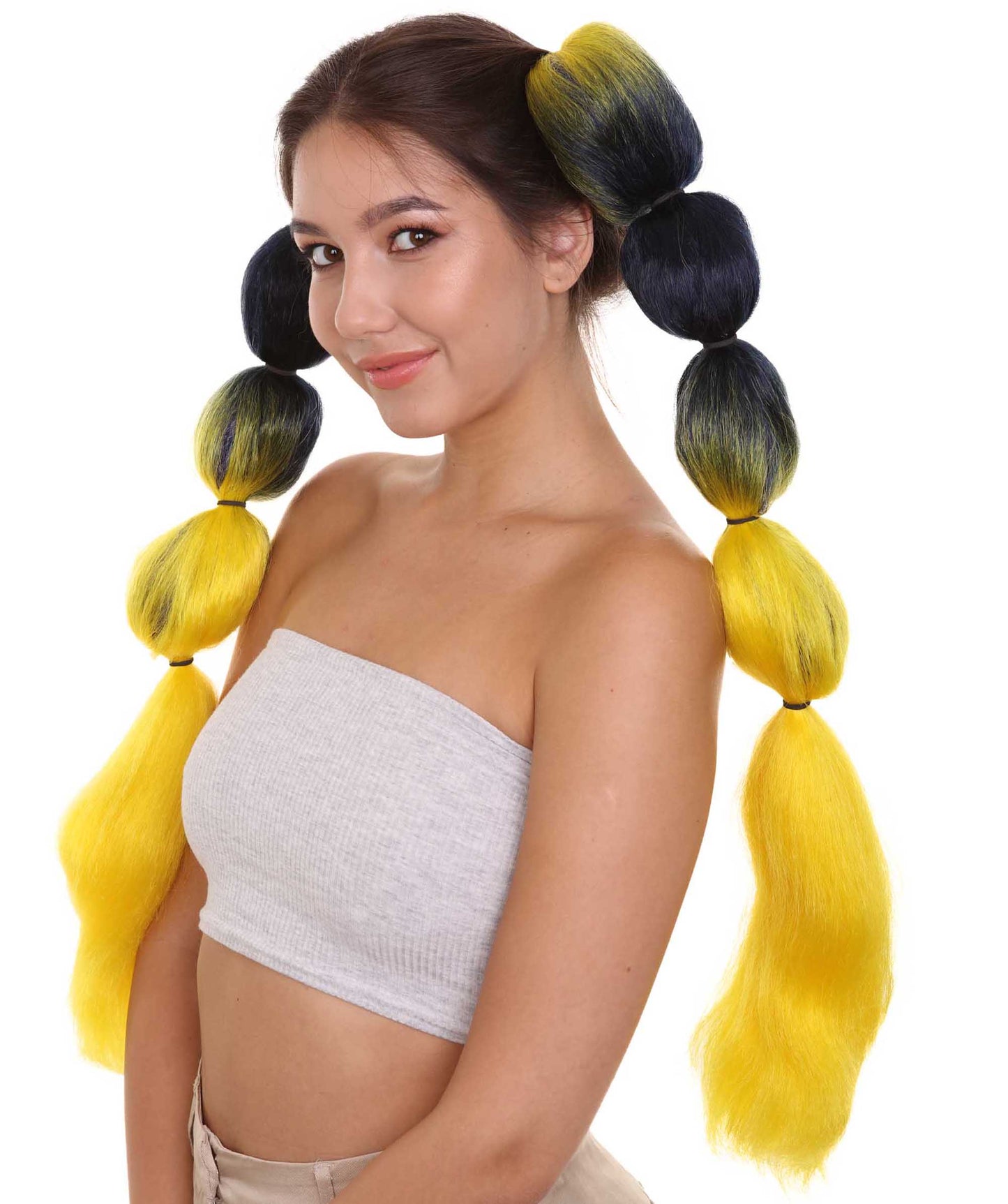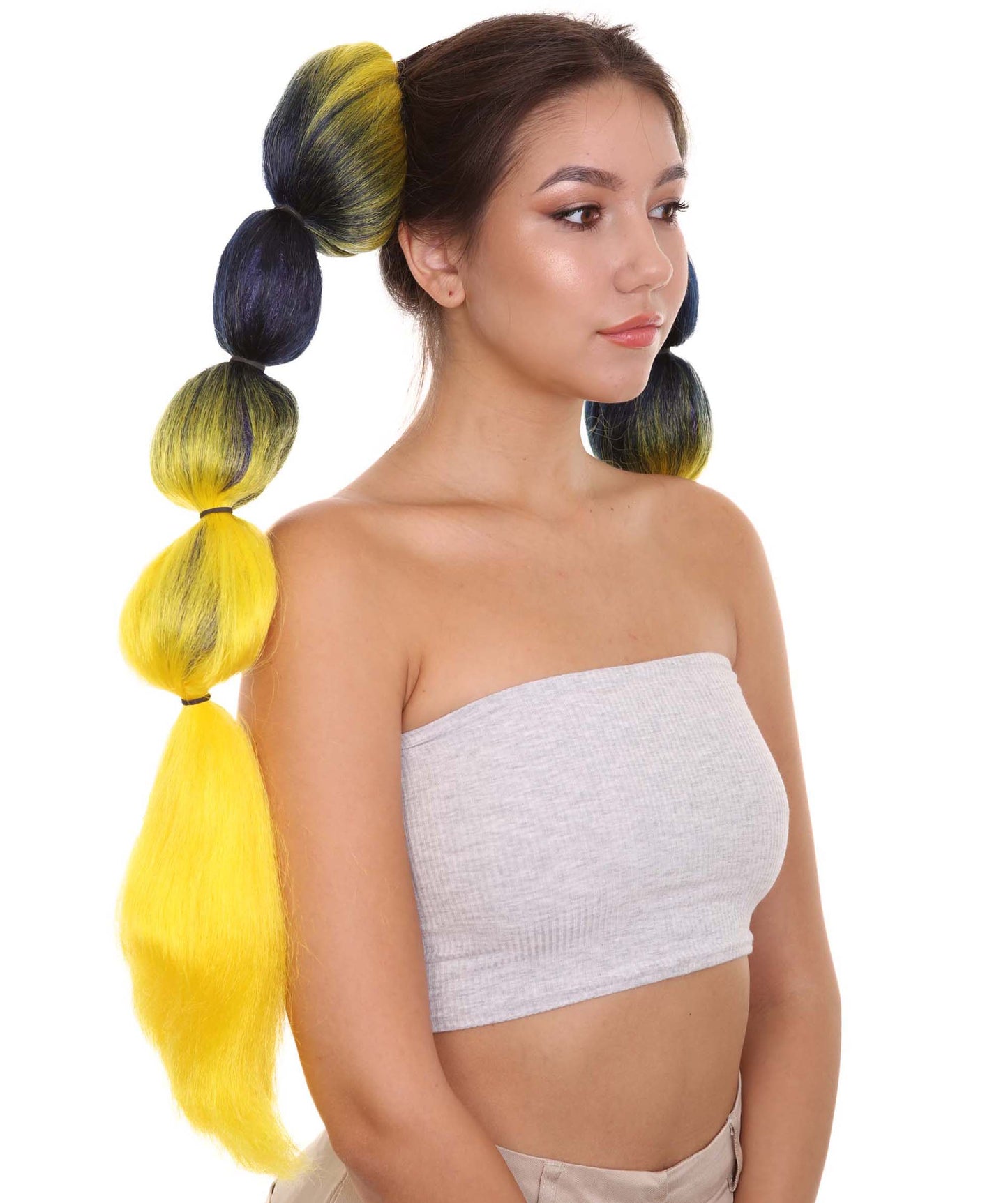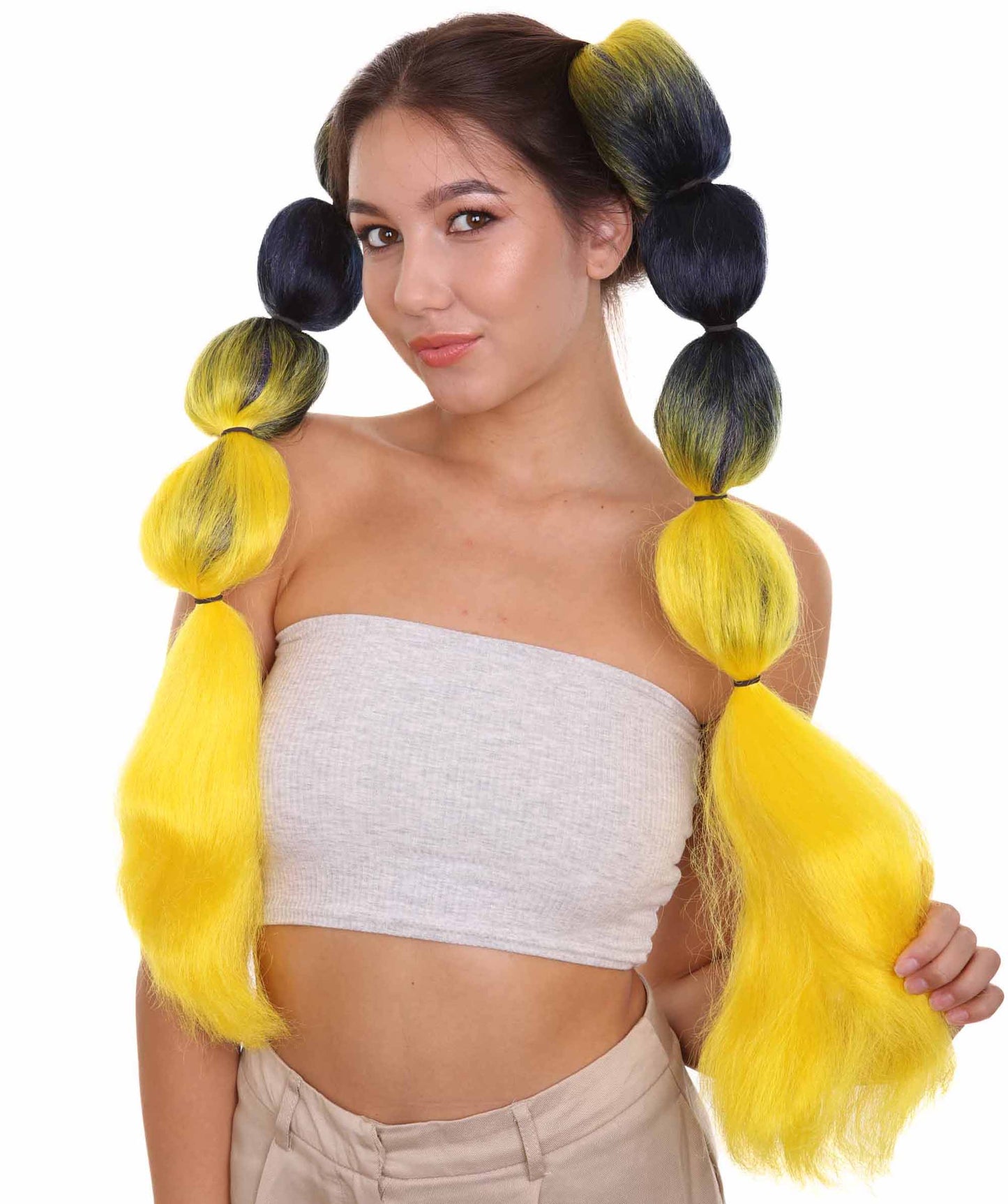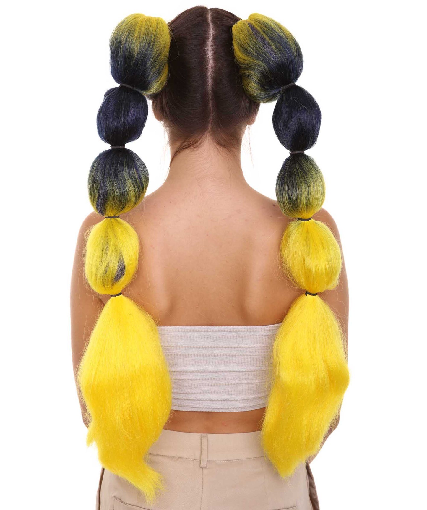 Nunique Women's 16"Nunique Adult Women's 20" In. Grime Music Artist Twin Clipped Ponytails - Long Length Twin Electric Yellow and Dark Navy Gradient Hair | Pryzm