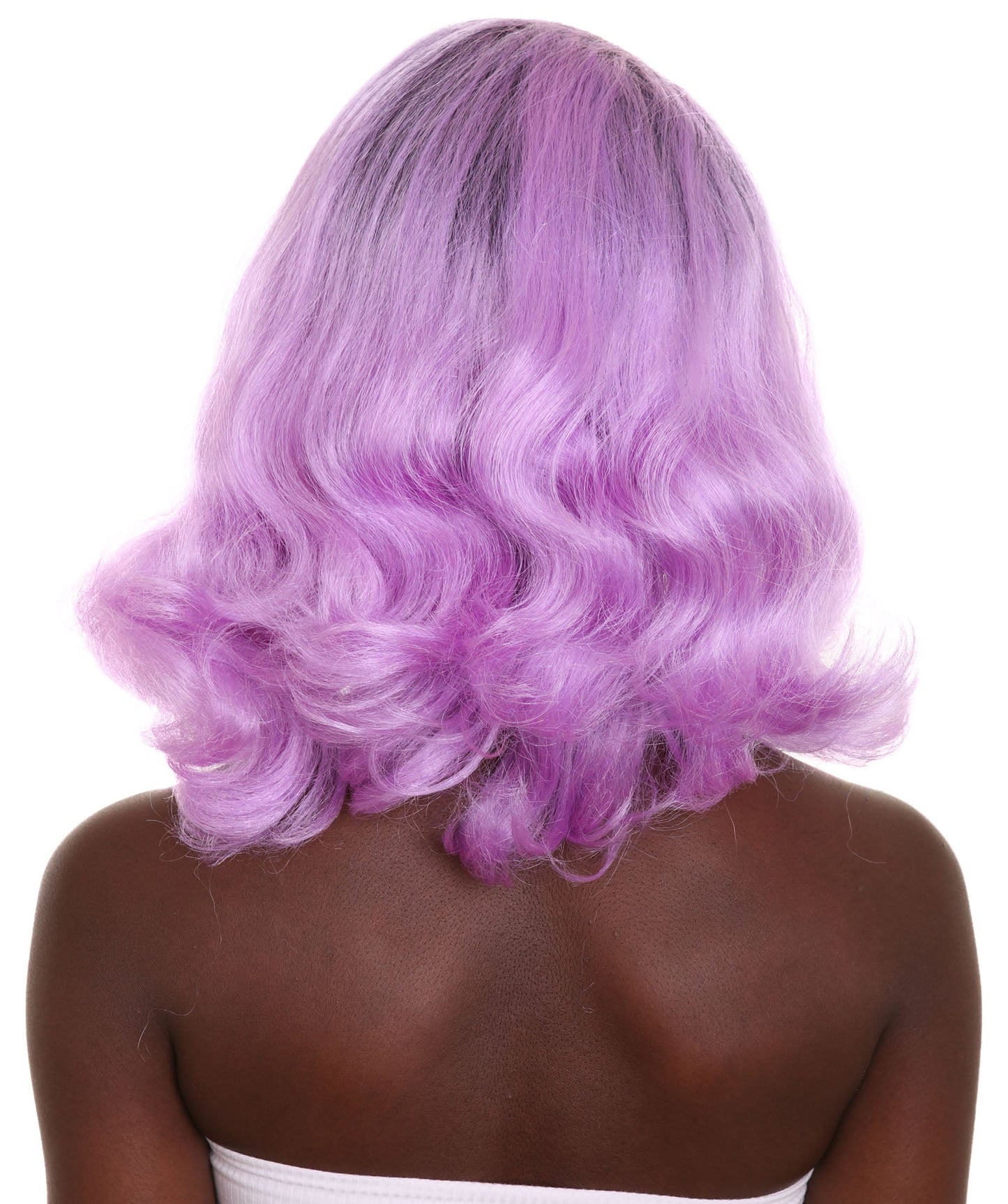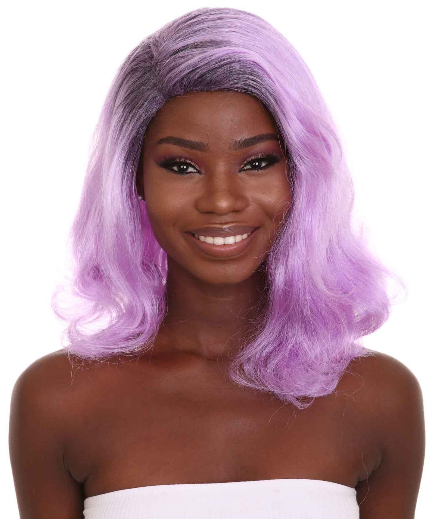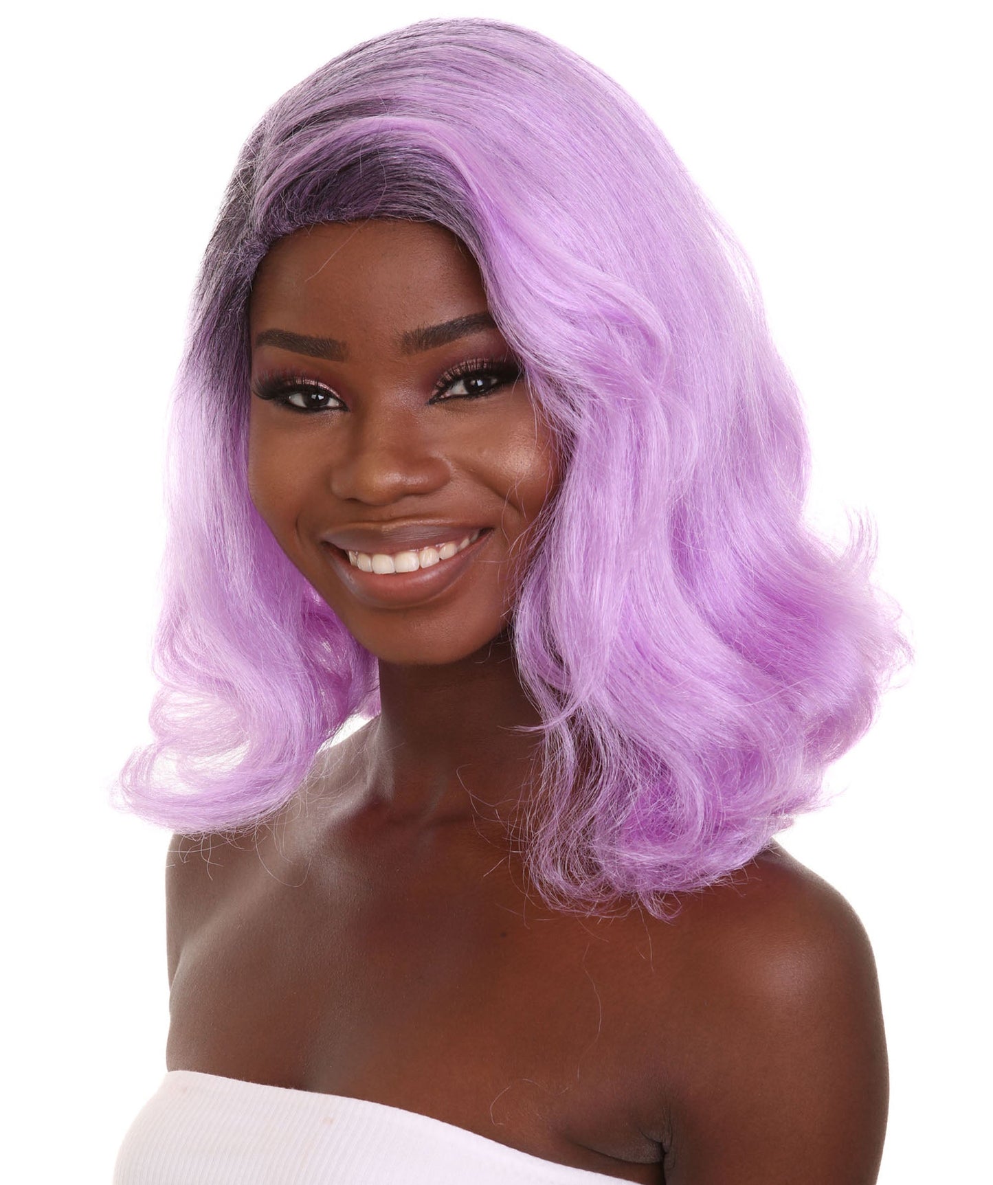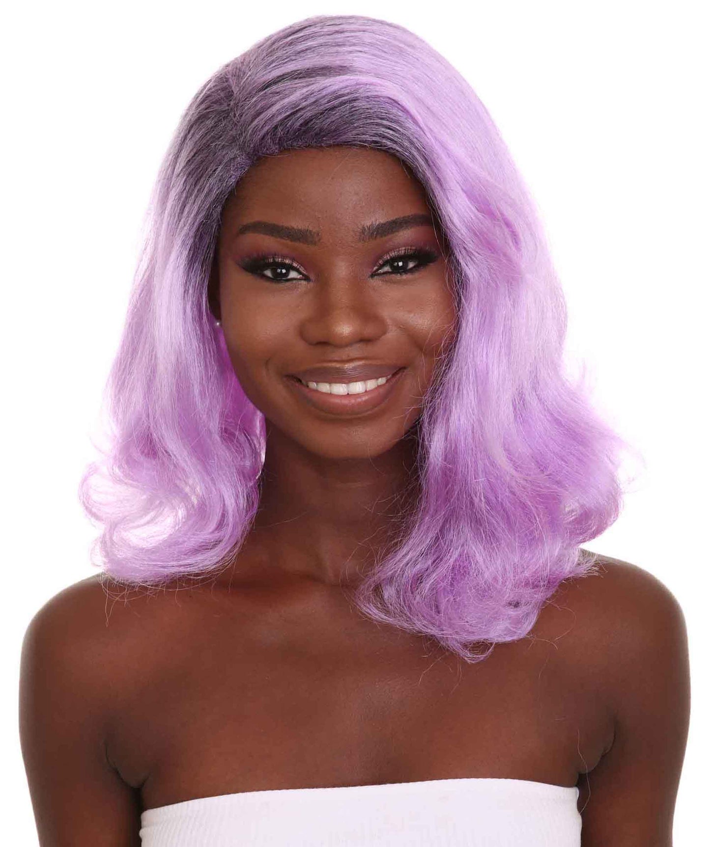 Women's Shoulder Length Electric Purple Fashion Blogger Wig - Purple Hair with Dark Roots - Capless Cap Design