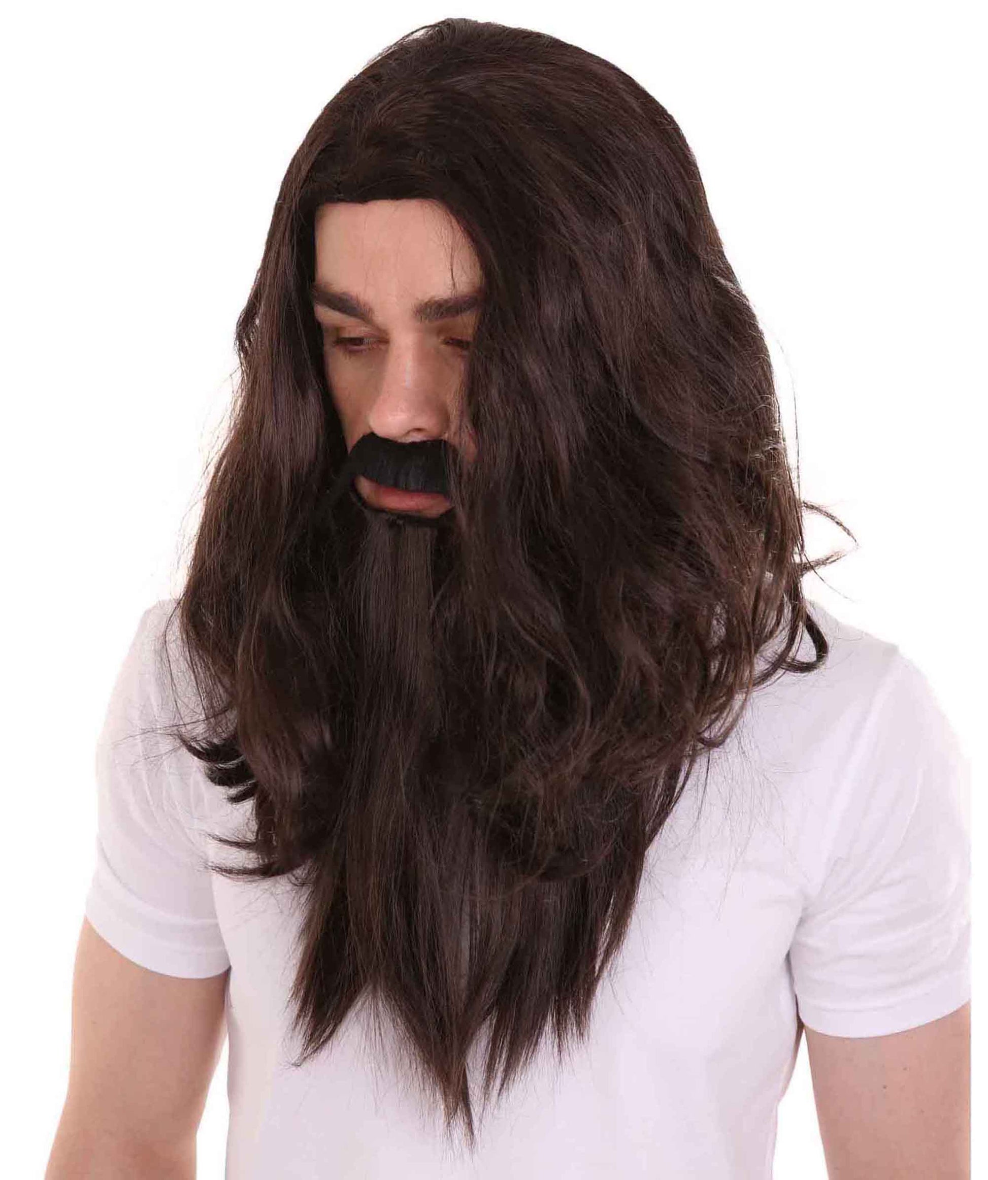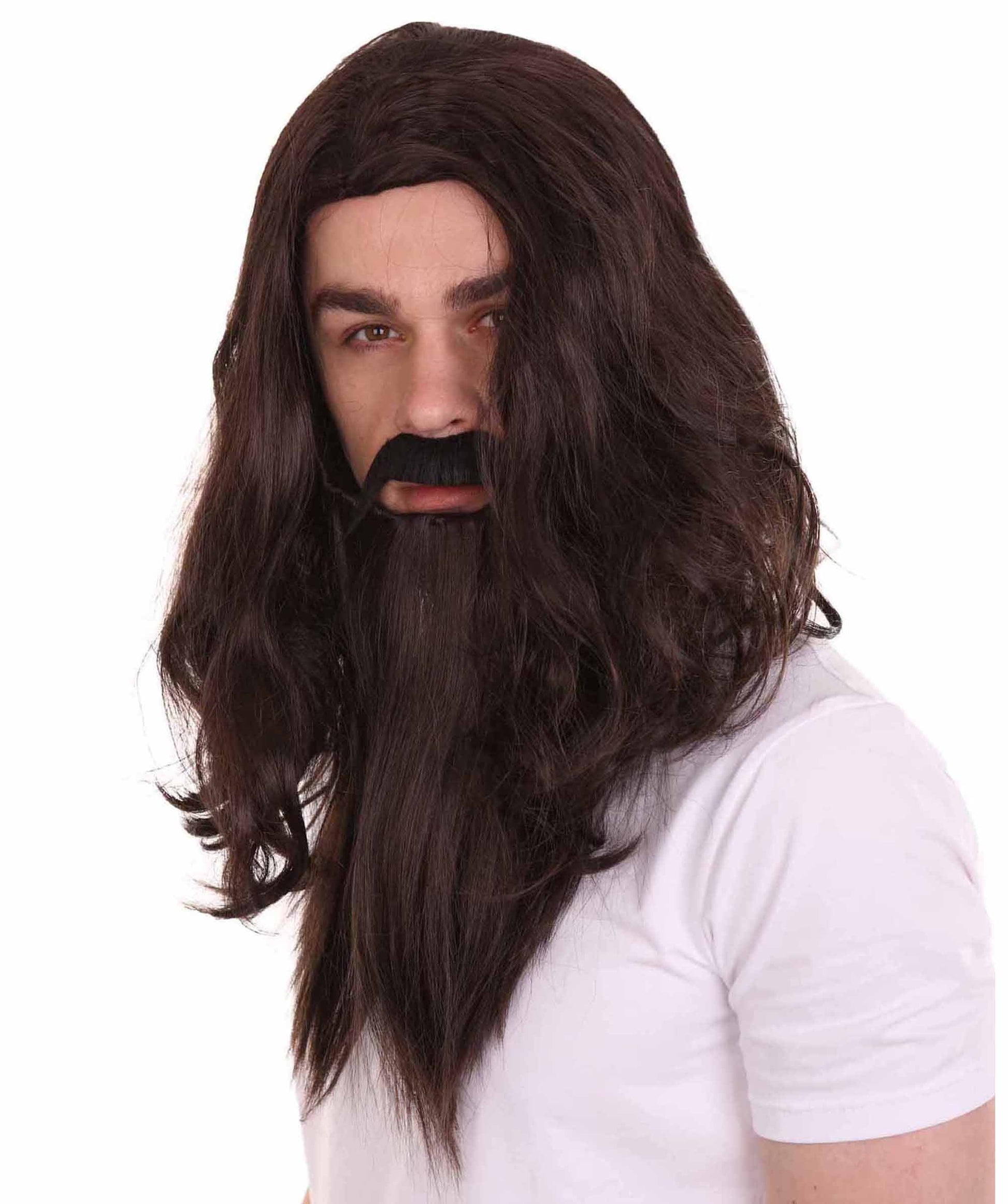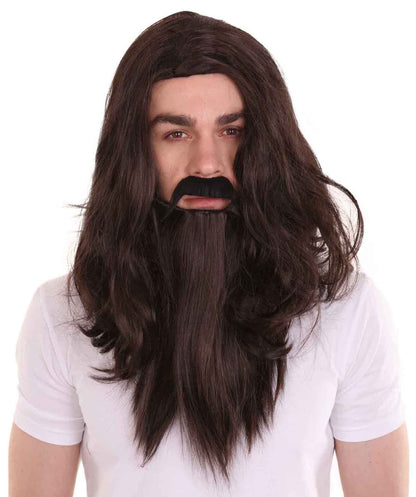 Men's Old Vampire Wig & Full Beard Set | Halloween Wig | Premium Breathable Capless Cap