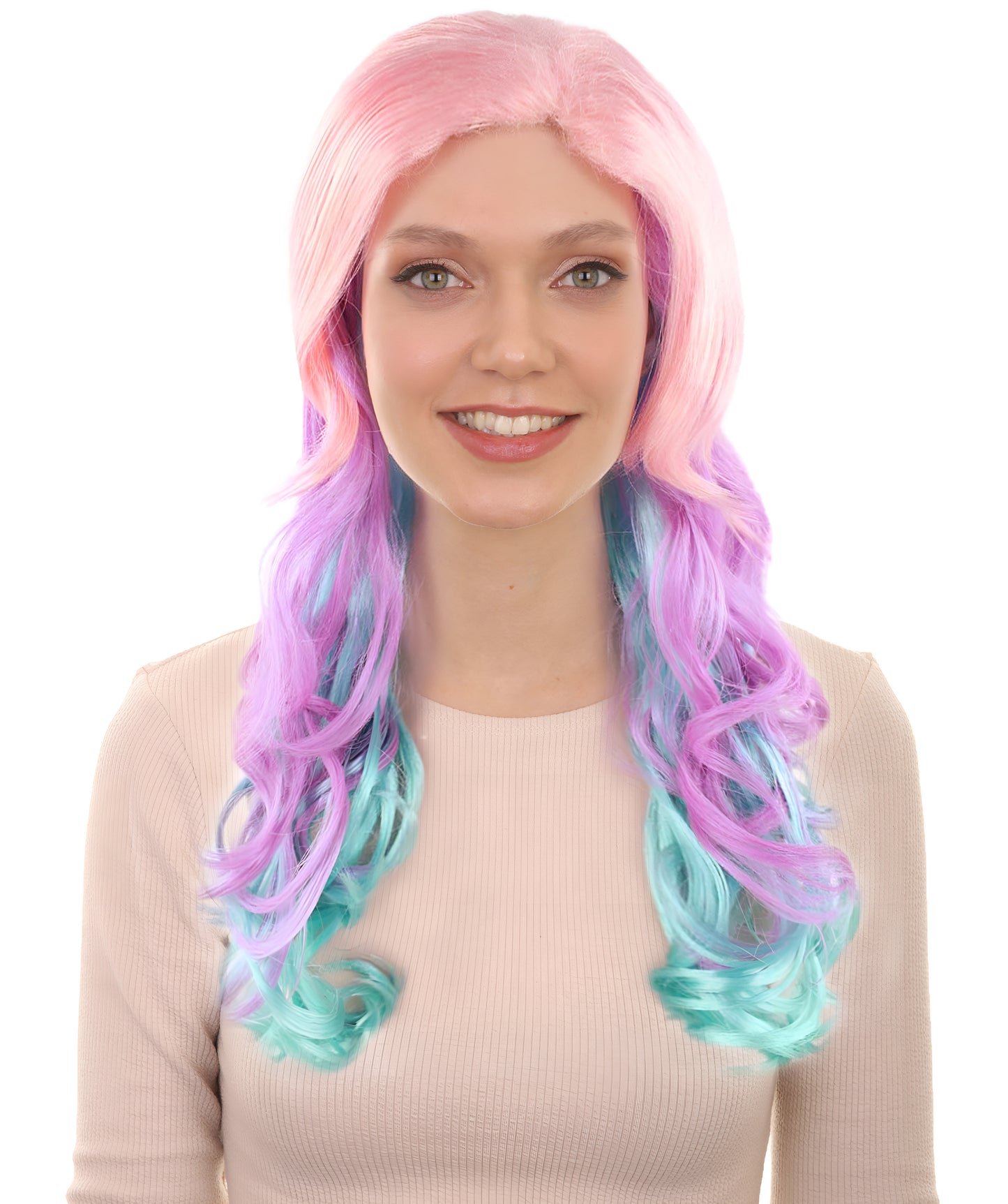 Long Curly Pink and Purple Ombre Womens Wig | Stage Event party Ready Colorful Wig | Premium Breathable Capless Cap