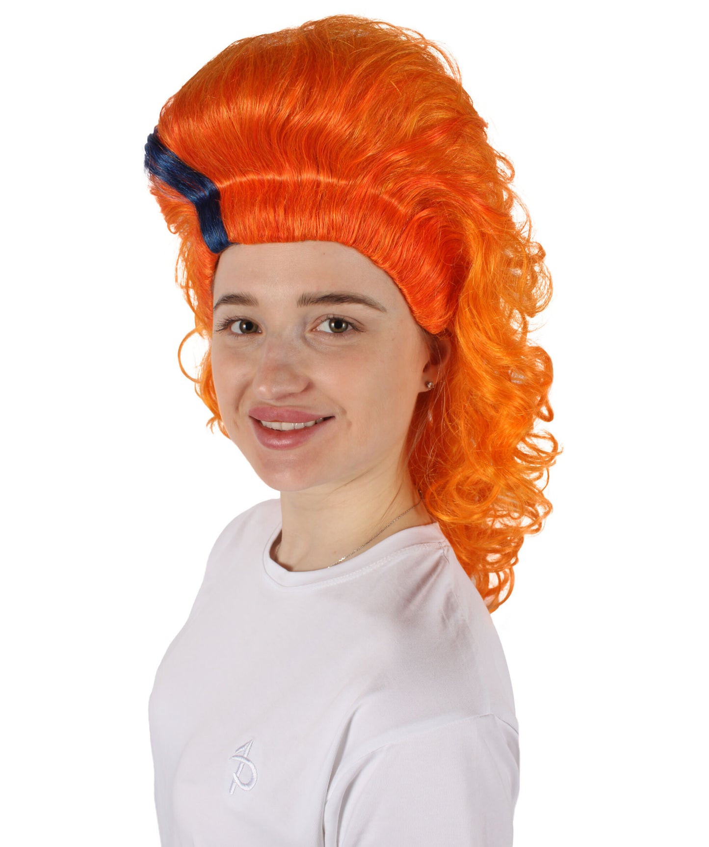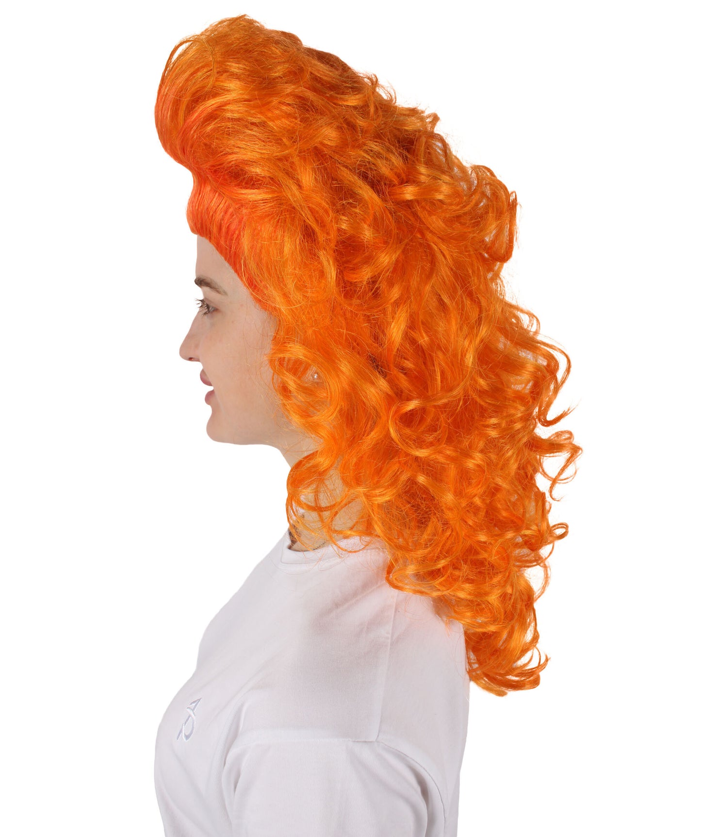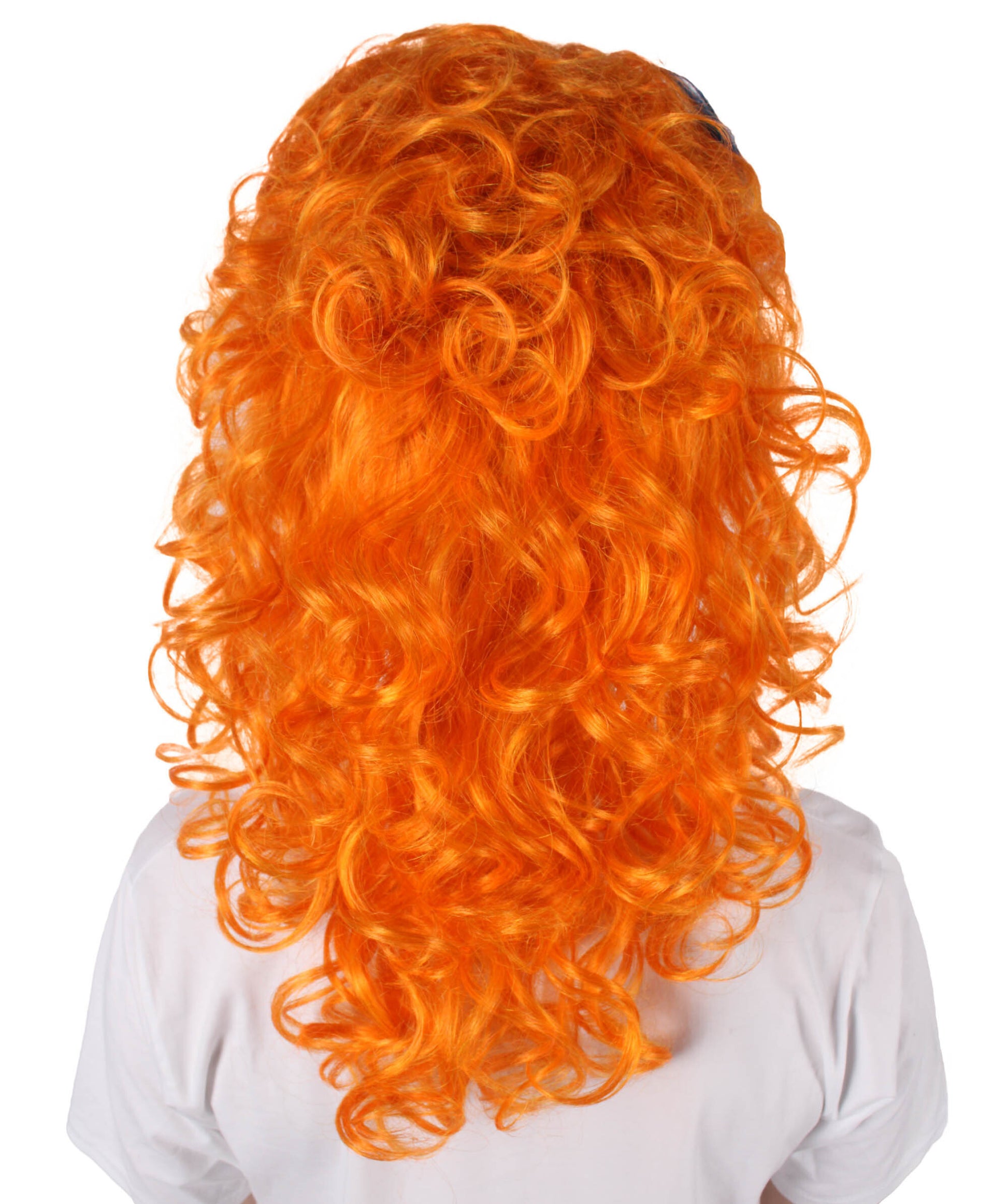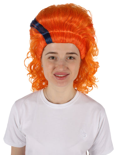 HPO Women's Orange Long Curly Wig I Perfect for Halloween I Flame-retardant Synthetic Fiber