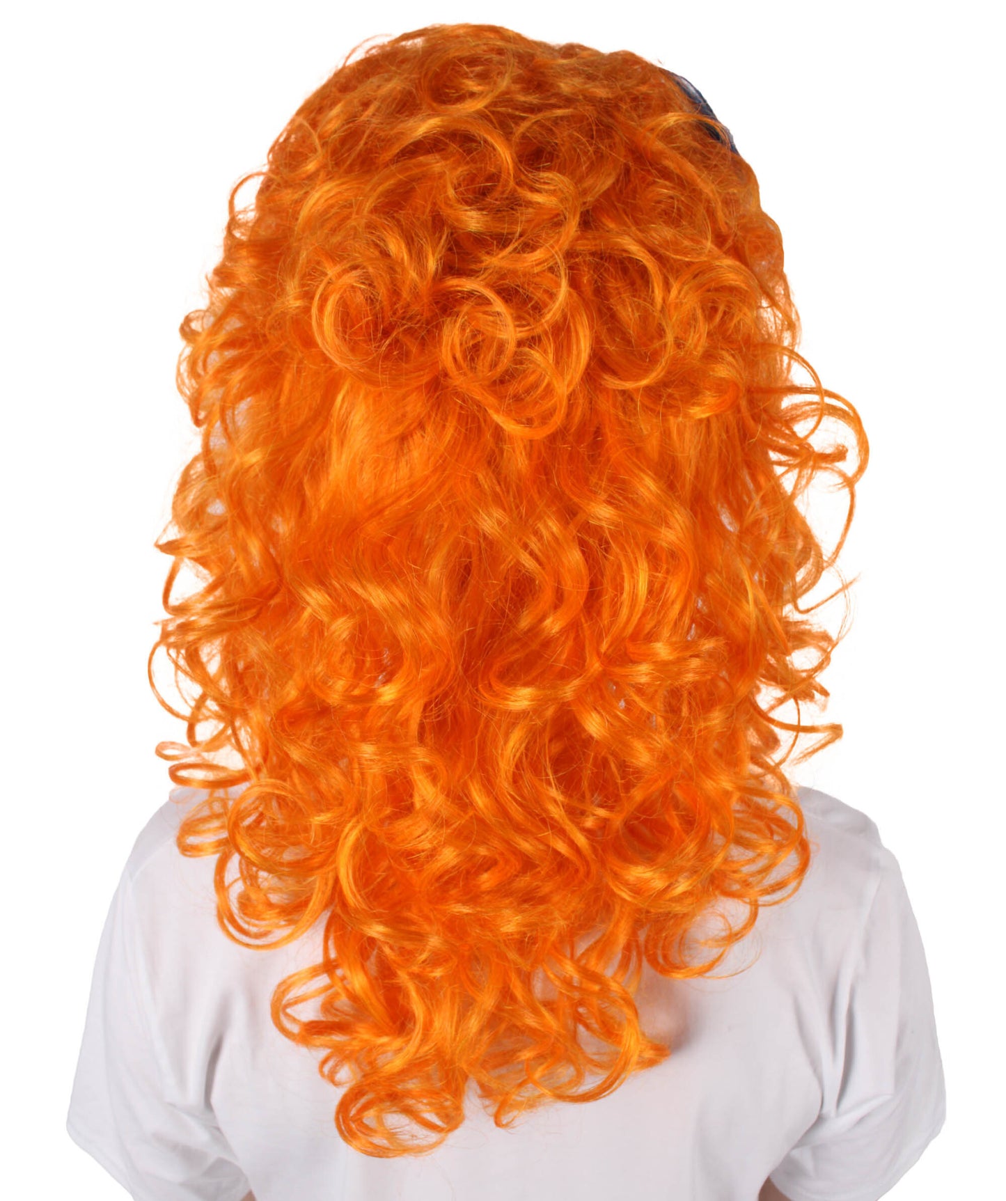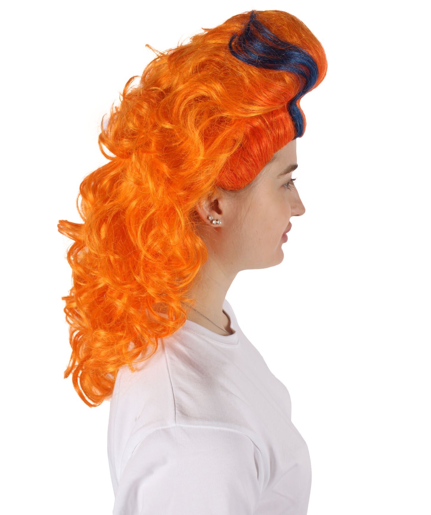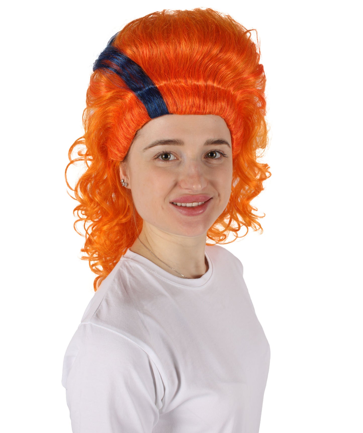 HPO Women's Orange Long Curly Wig I Perfect for Halloween I Flame-retardant Synthetic Fiber