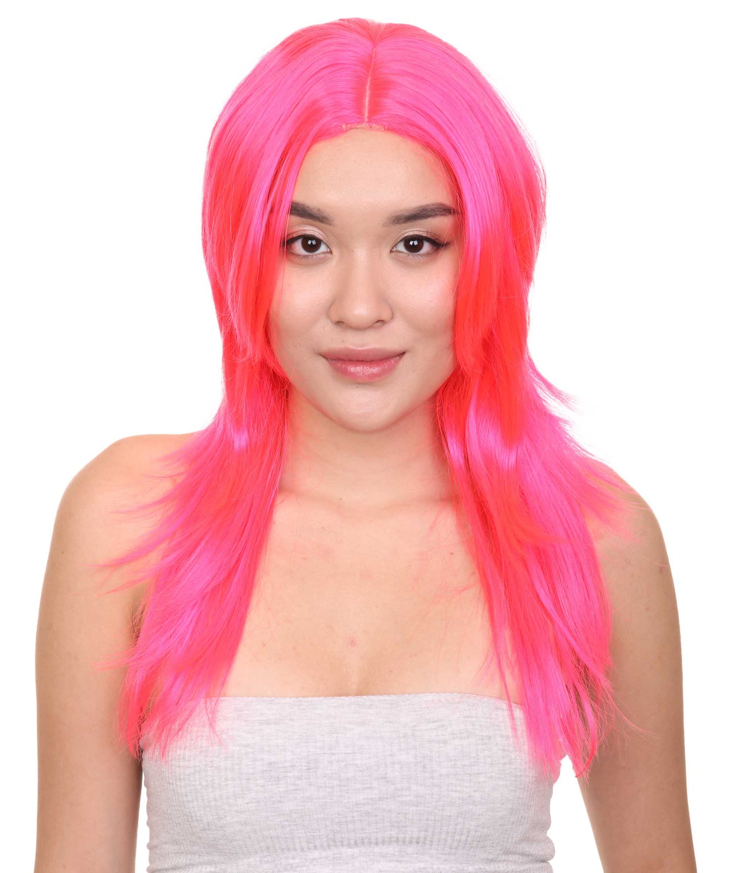 Party Girl Adult Wig | Neon Pink Party Ready Halloween Wig | Premium Breathable Capless Cap