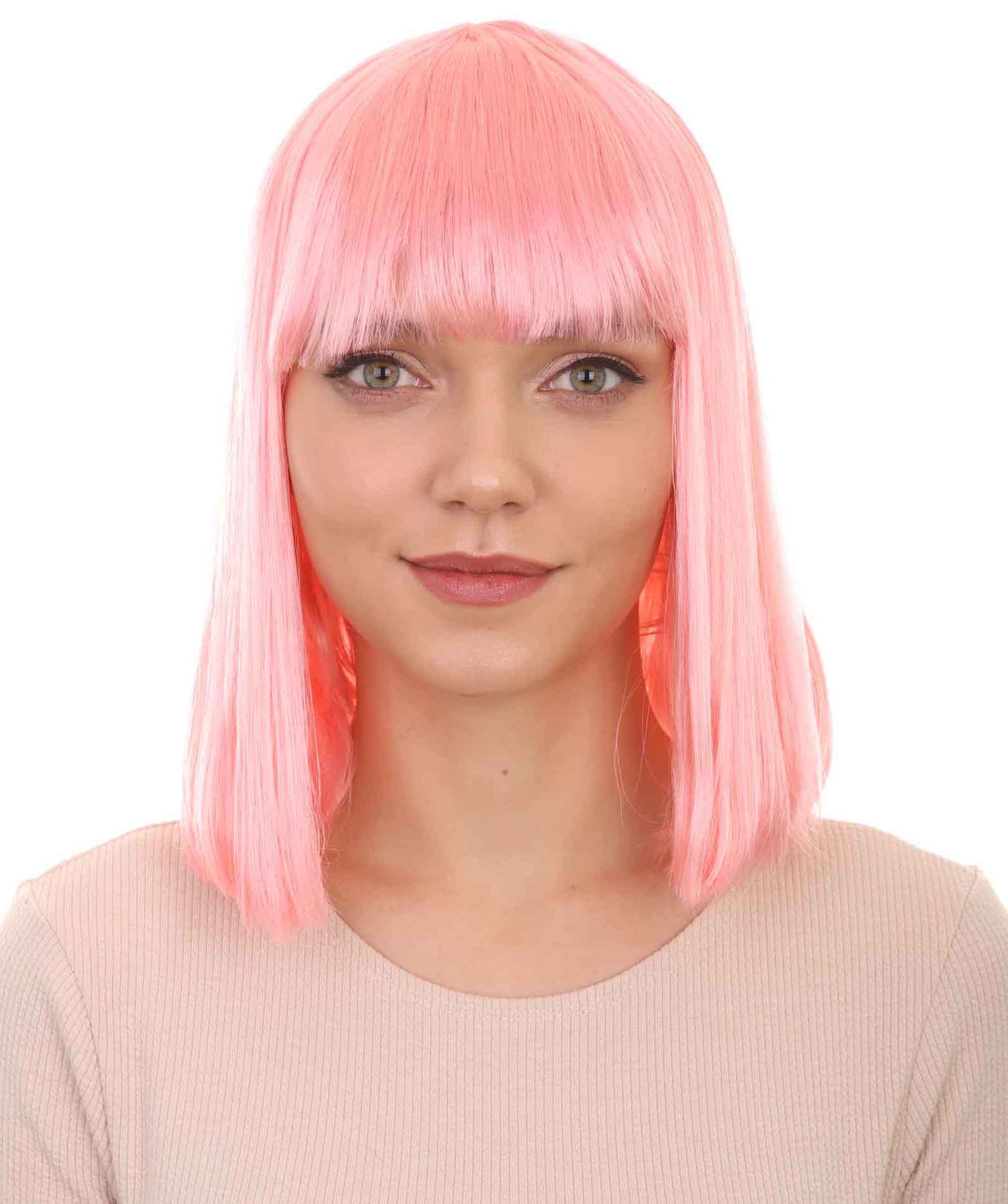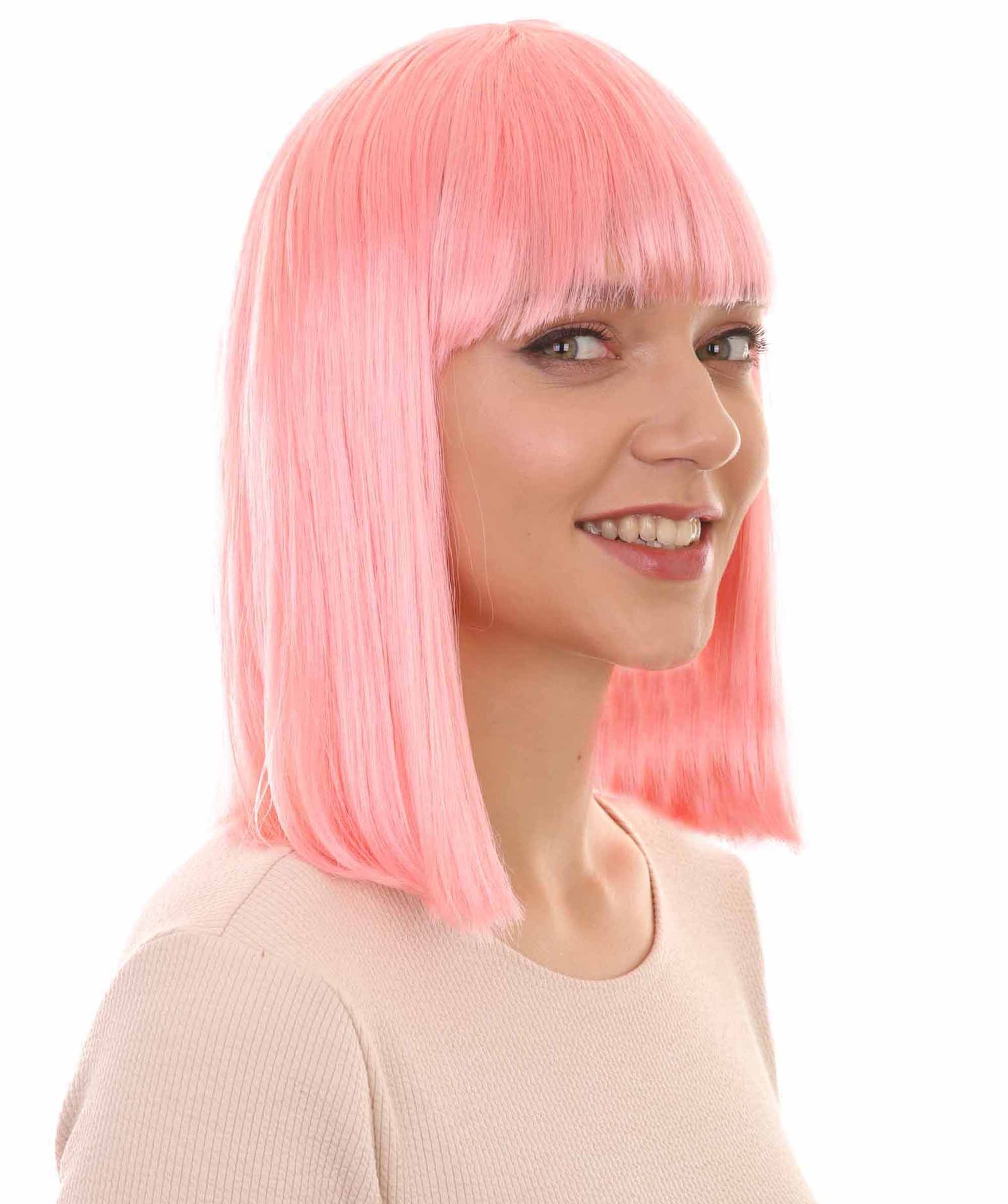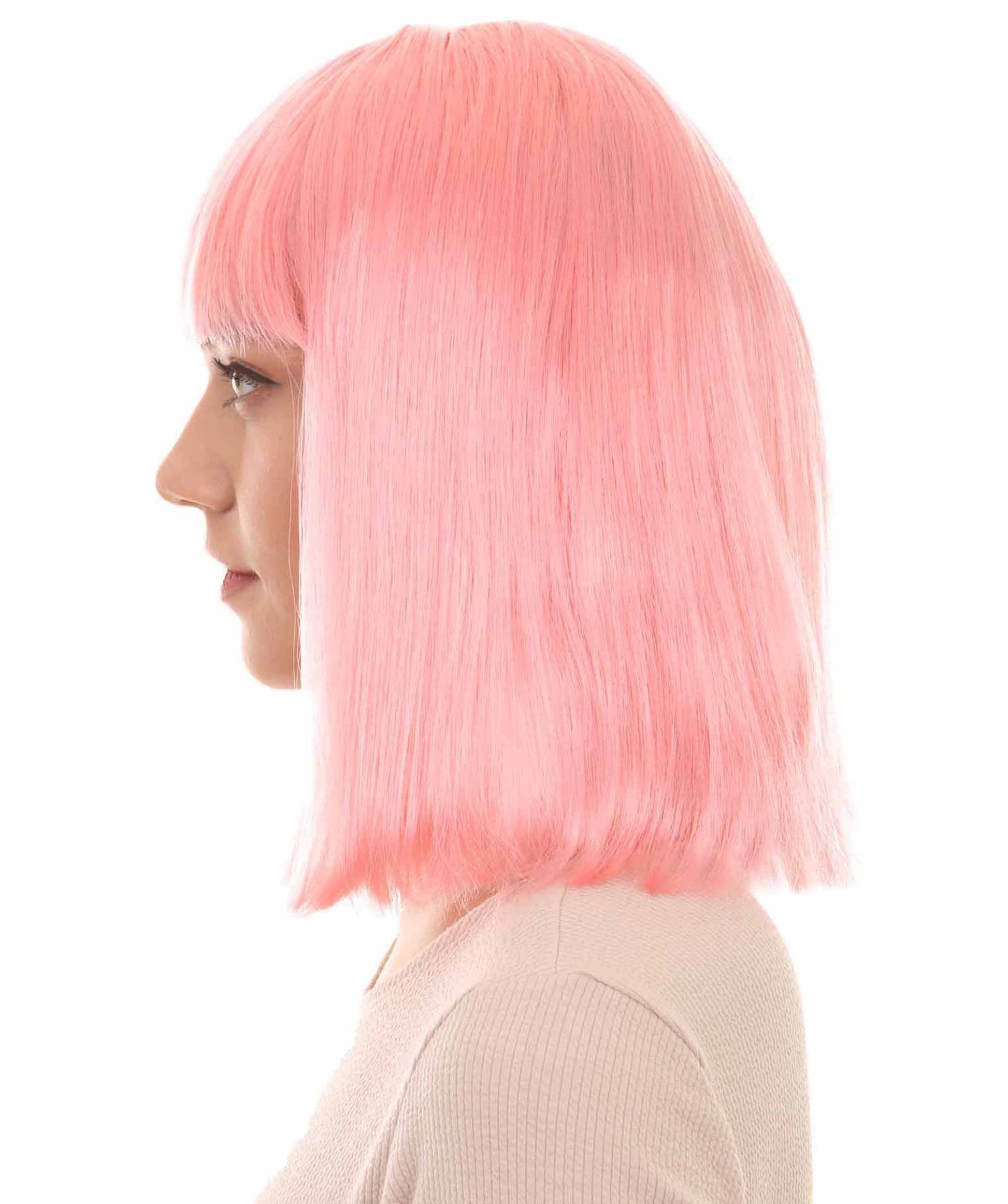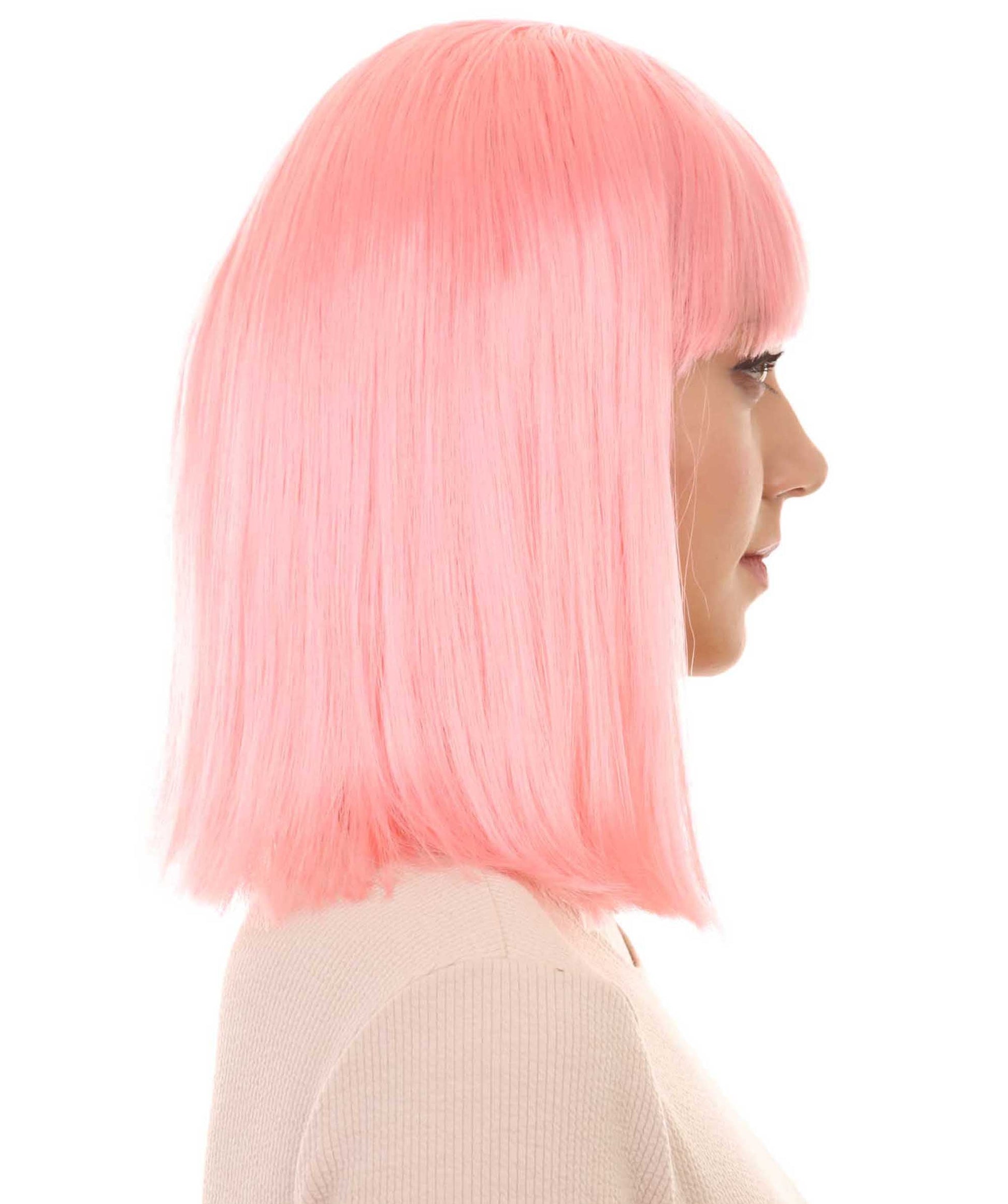 Womens Party Bob Wig | Pink Halloween Bob Wigs | Premium Breathable Capless Cap