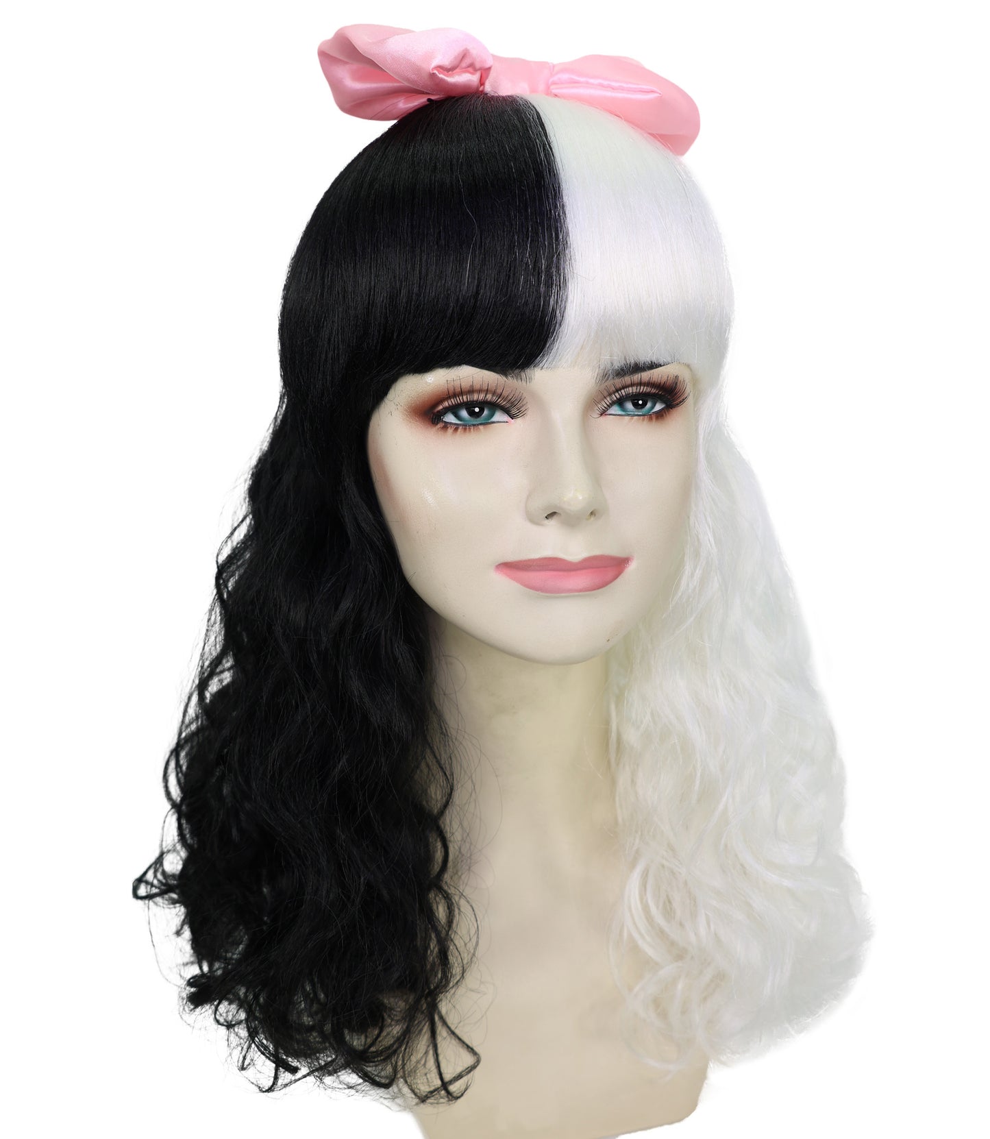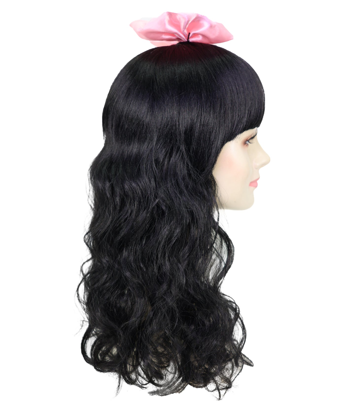 Women's Doll Wig | Pink Bow Purple & Black Wig | Premium Breathable Capless Cap