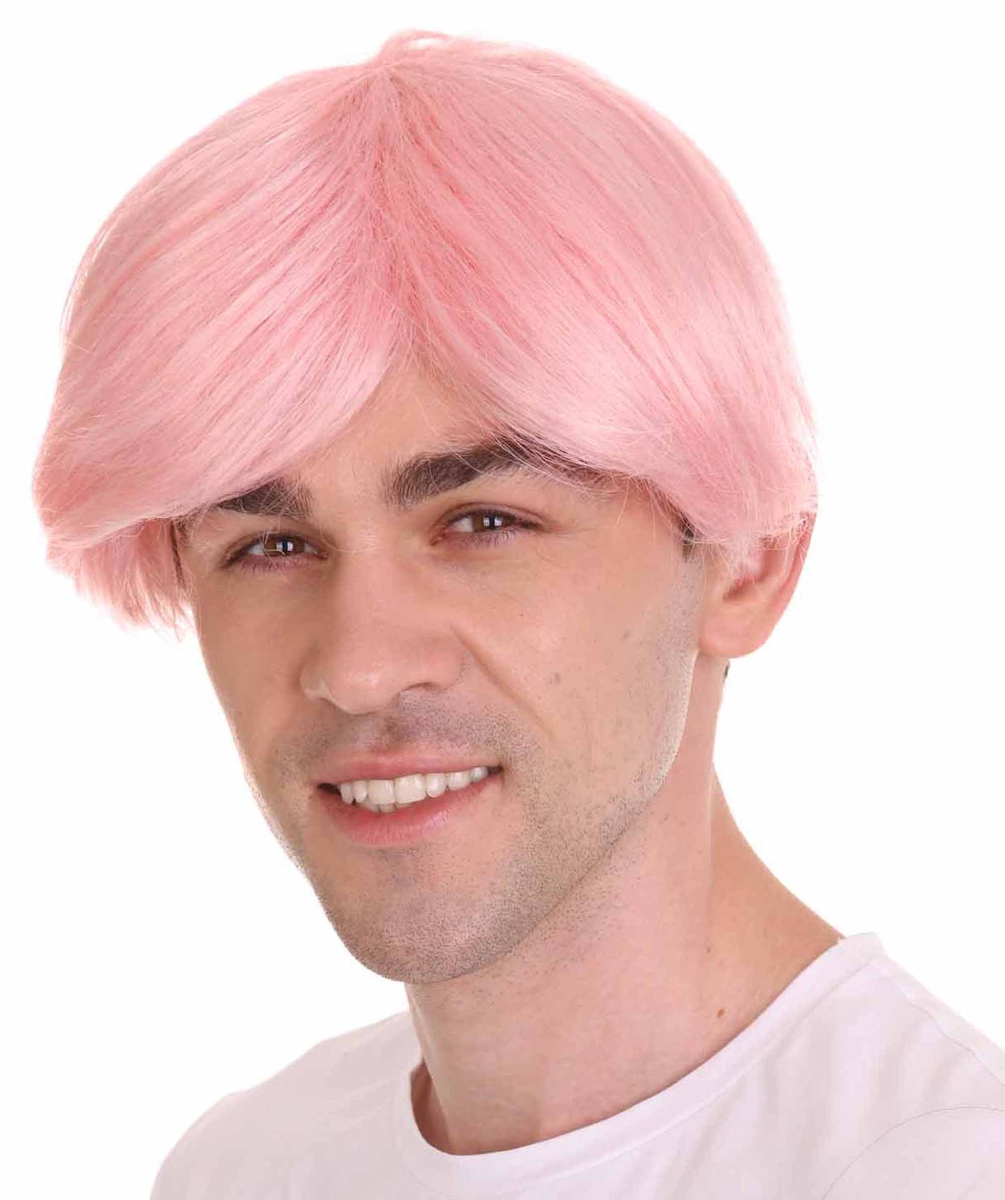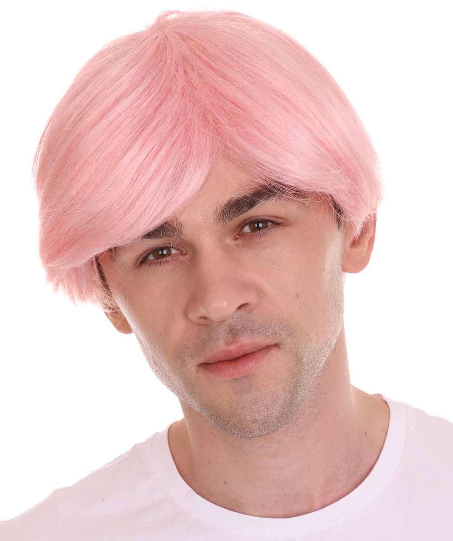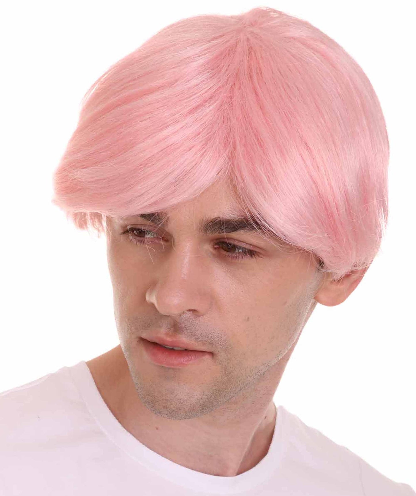 K-Pop | Men's Short Straight Middle Part Pink K Pop Fancy Wig | Premium Breathable Capless Cap