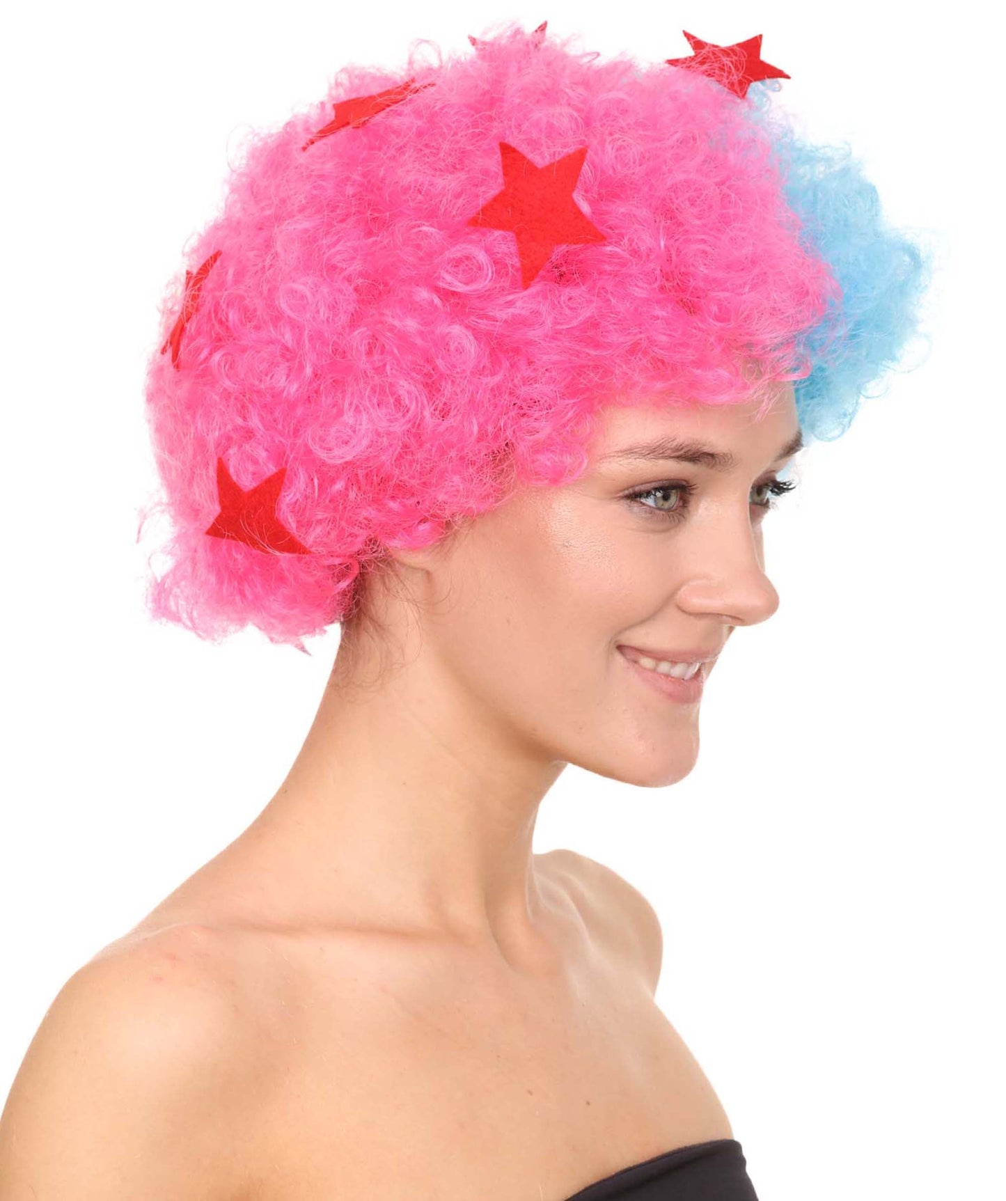 Afro Unisex Wig , Jumbo Pink & Sky Fancy Halloween Wig , Premium Breathable Capless Cap