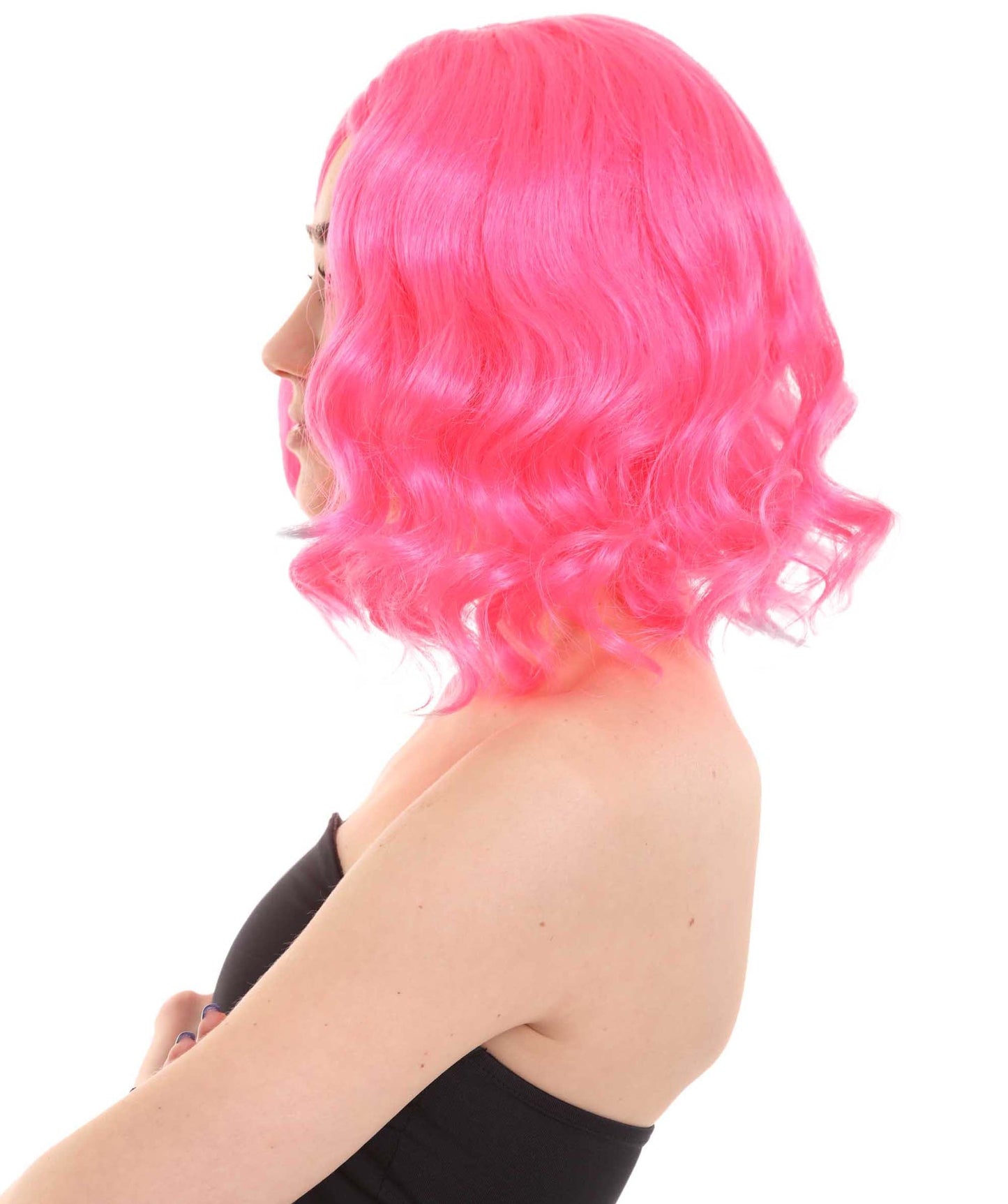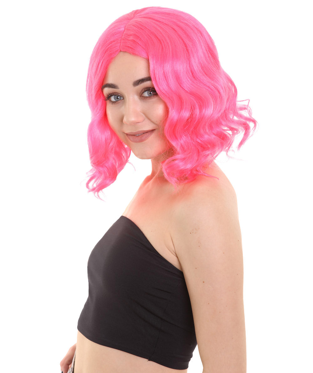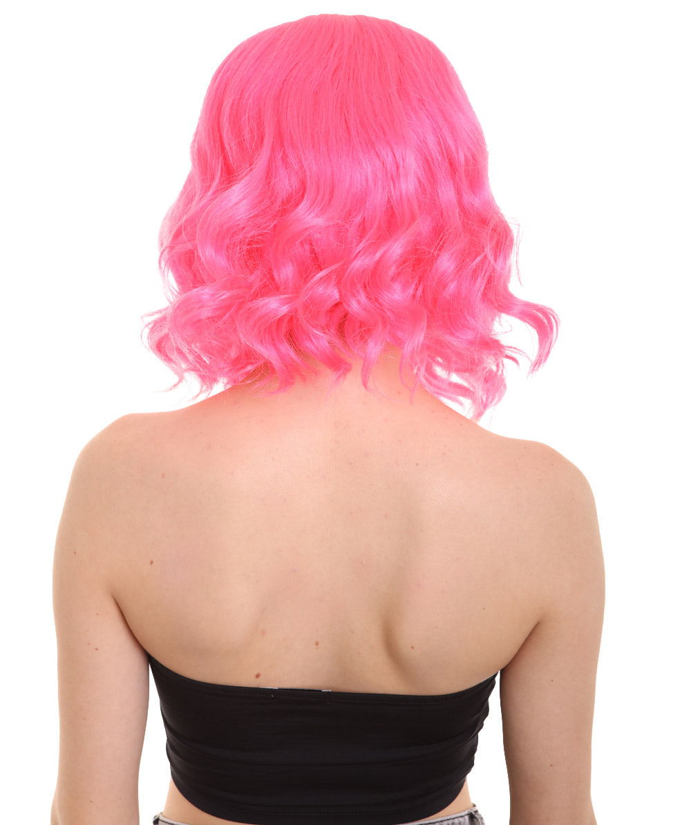 Made of synthetic fiber, this flame-retardent bob-styled pink video game wig is perfect for both adults and kids alike. Made with an adjustable lining that can be stretched up to 22 inches in diameter to fit adults and kids above 5.