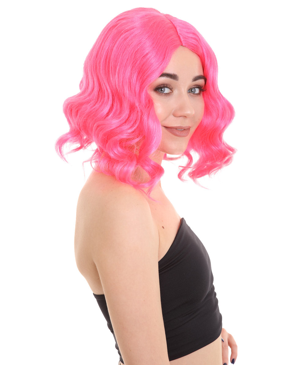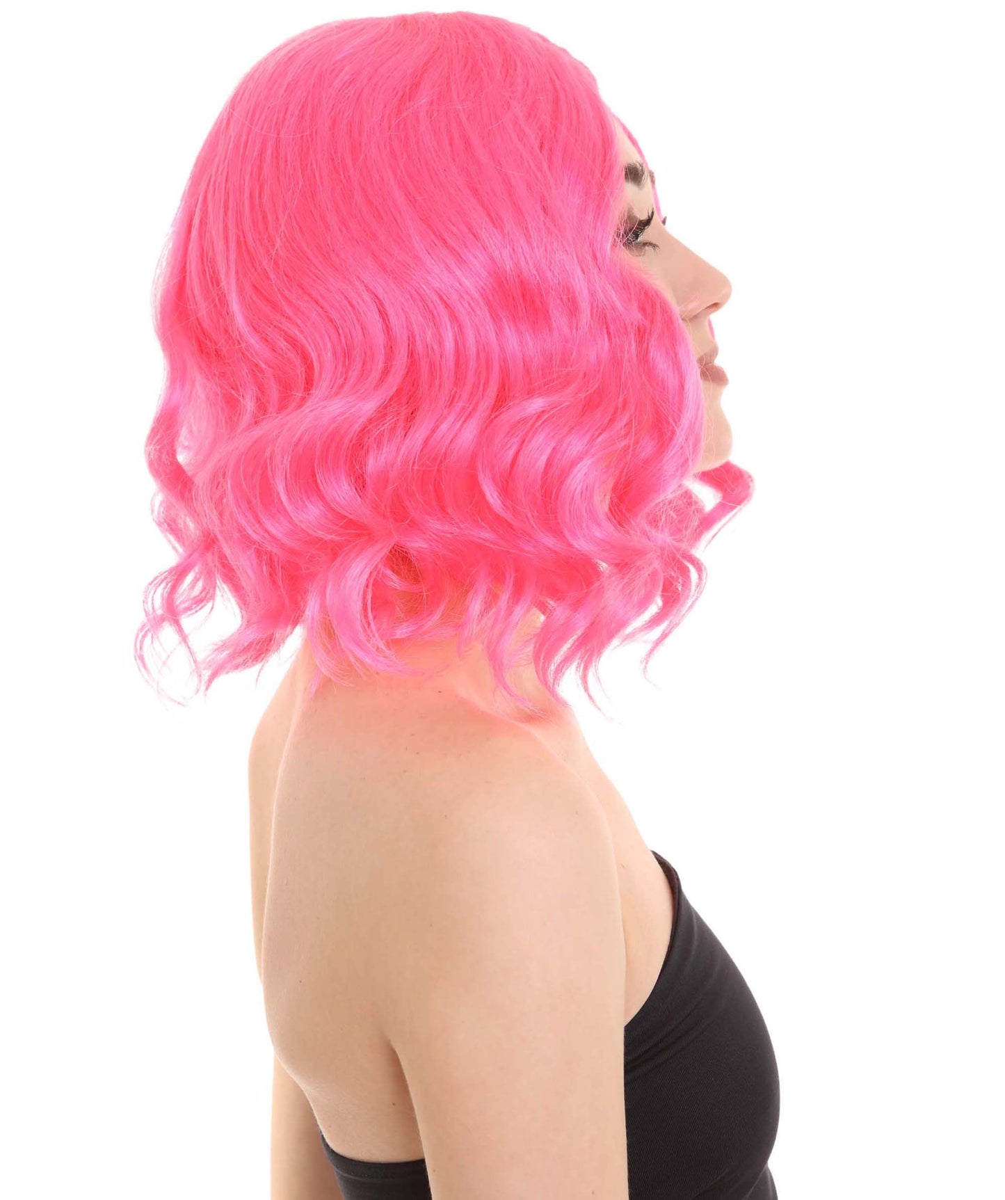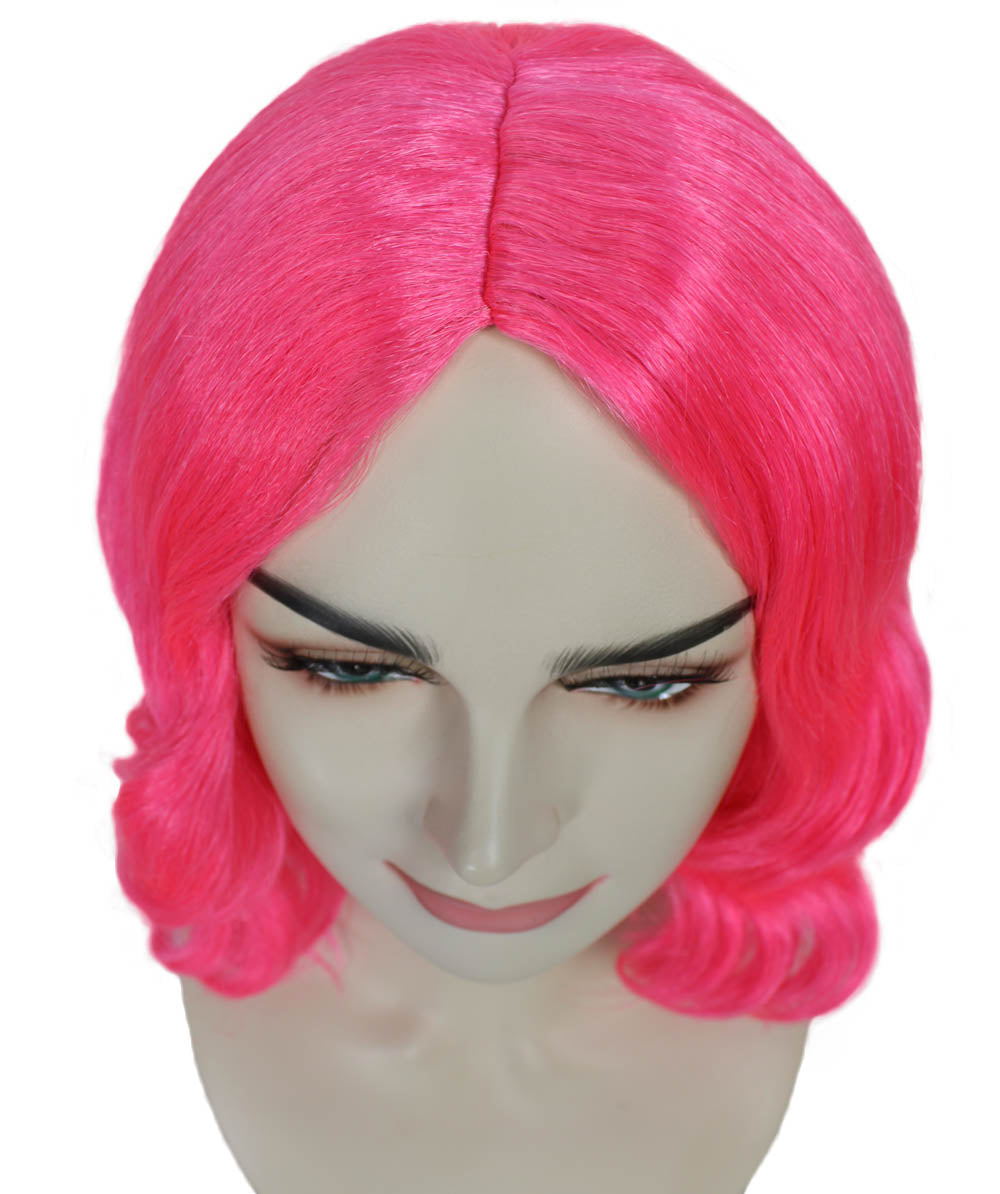 Made of synthetic fiber, this flame-retardent bob-styled pink video game wig is perfect for both adults and kids alike. Made with an adjustable lining that can be stretched up to 22 inches in diameter to fit adults and kids above 5.