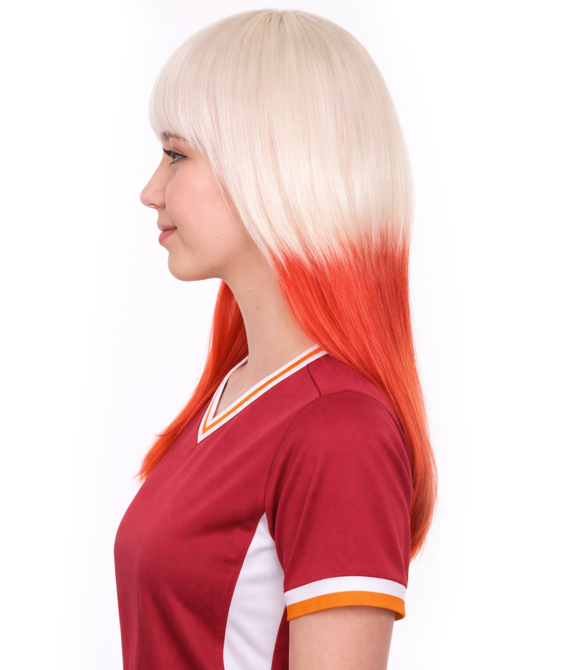 Poland Flag Sport Party Long Bob Wig | White Red National Pride Wig | Premium Breathable Capless Cap