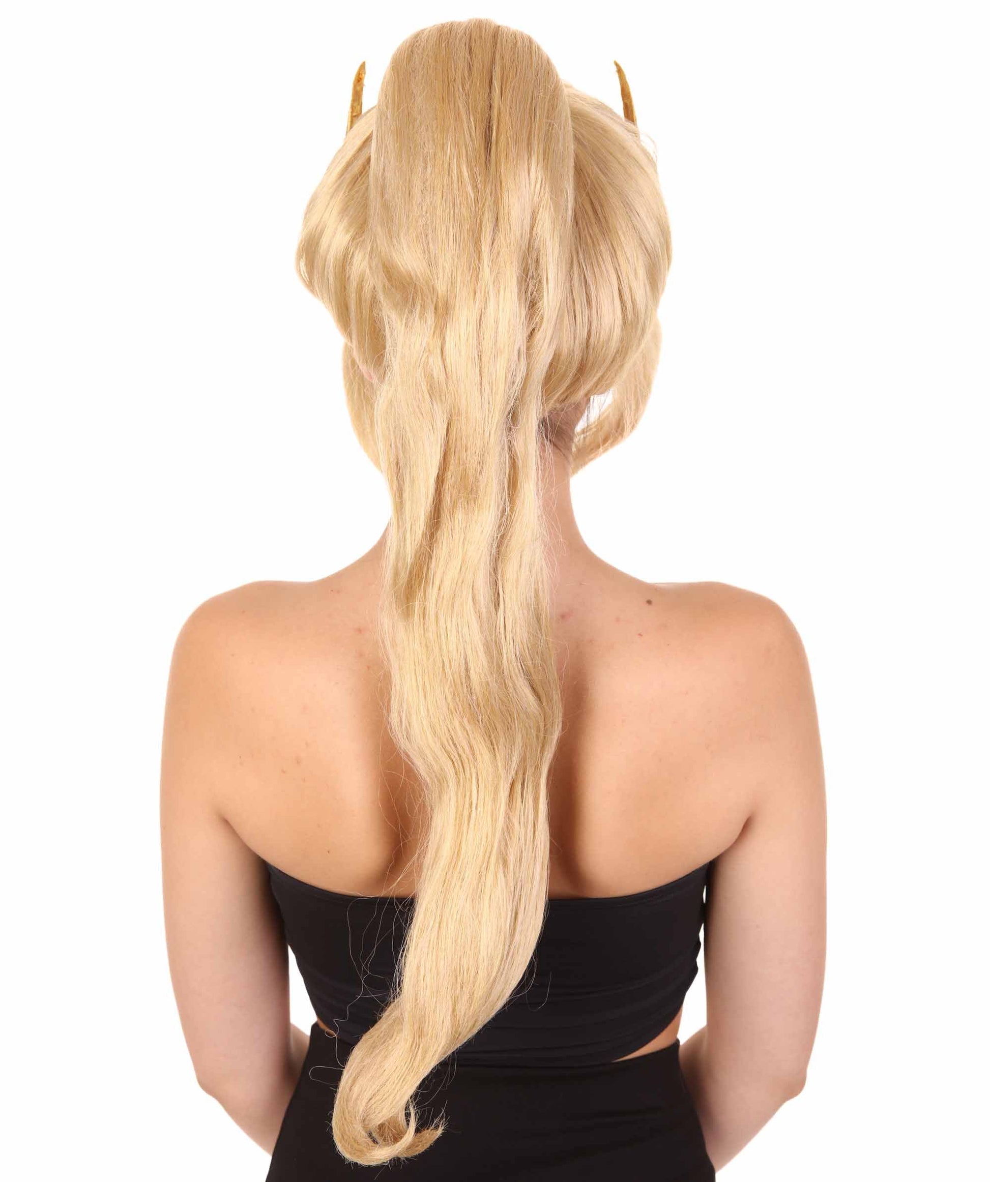 So why are you waiting? Get this Fantasy Comic Cosplay Ponytail Gold TV/Movie Wig for your next party and become the center of attention!
