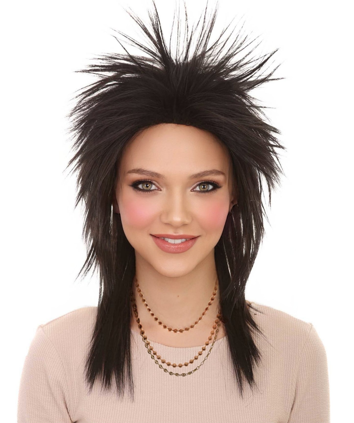 80's Rock Star Black hair| Pop Singer Halloween Wig | Premium Breathable Capless Cap