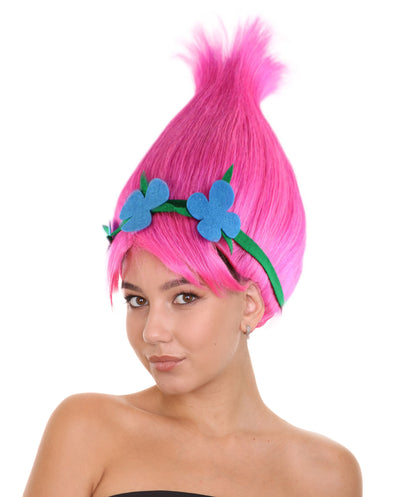 Pink Princess Troll Wig with Flower Crown for Adults – Perfect for Parties, Halloween and Cosplay.