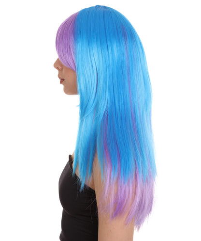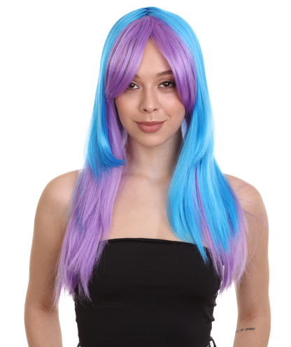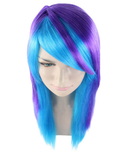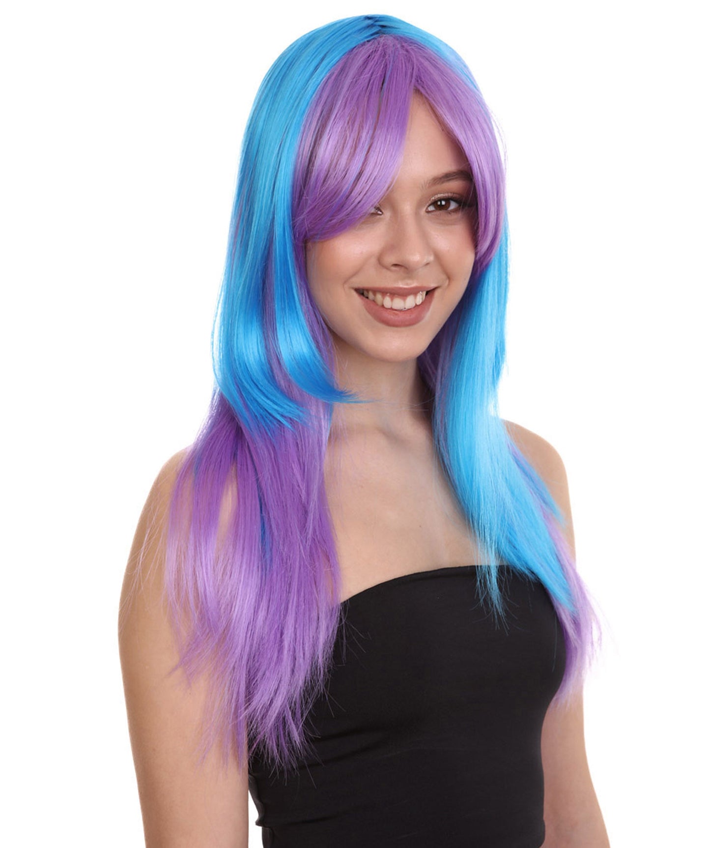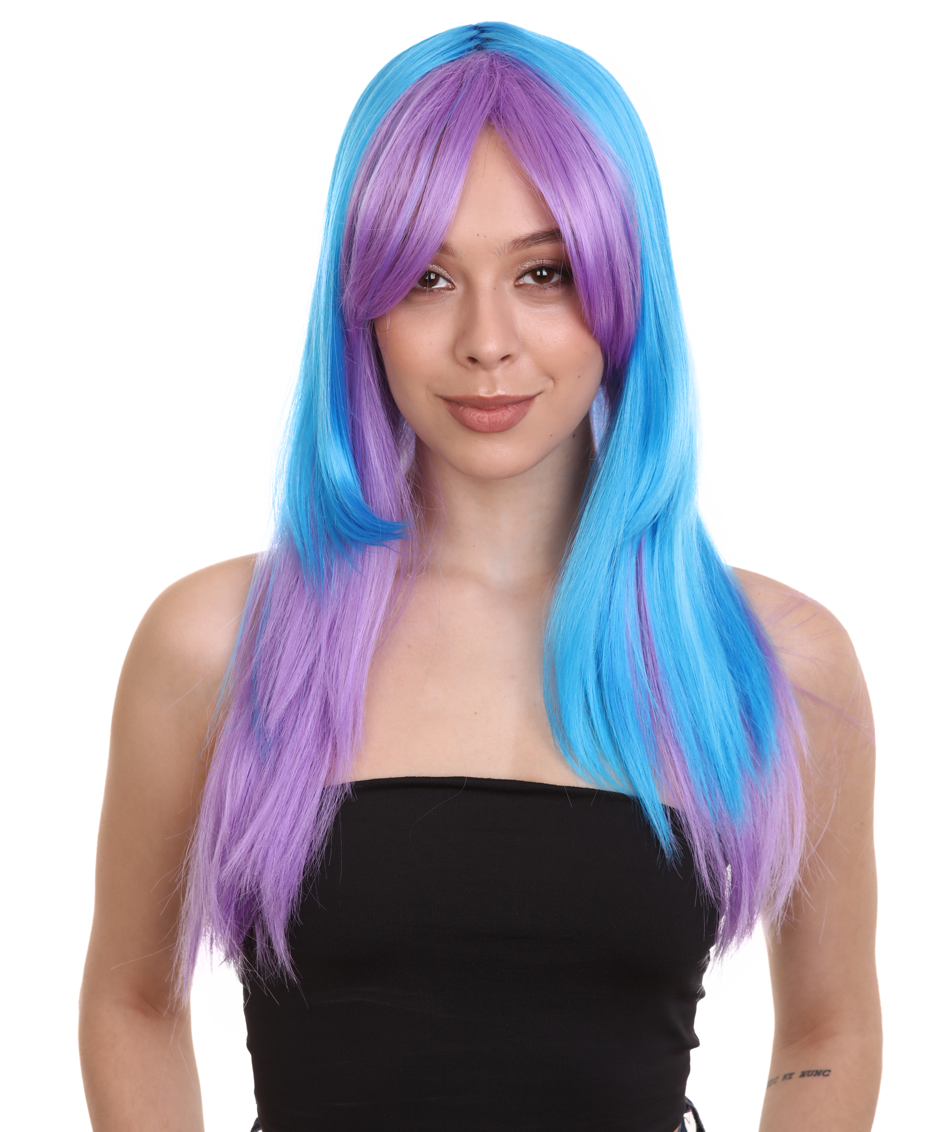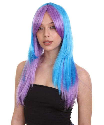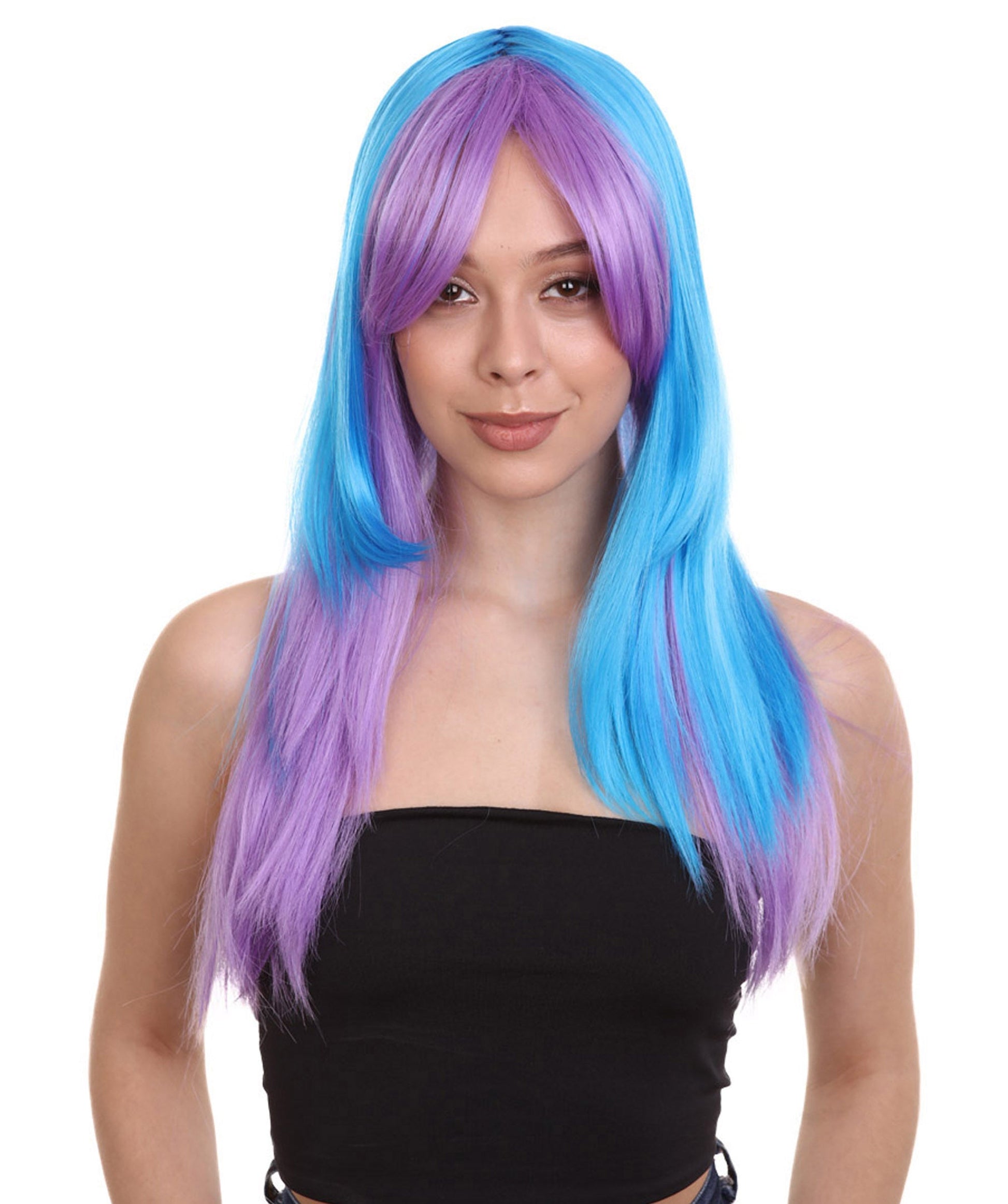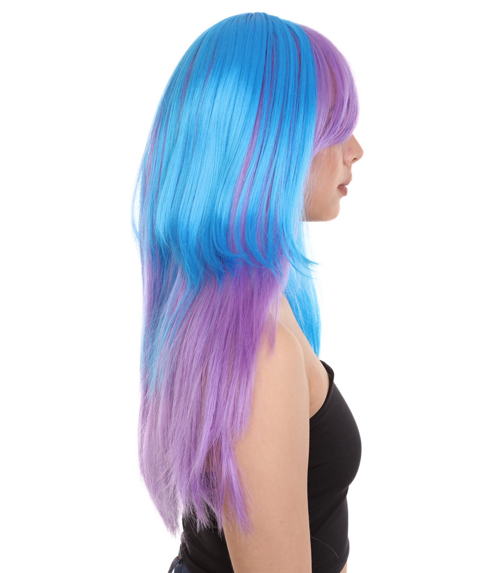 The Purple Blue Two Tone Ombre Womens Wig from HPO is a premium handcrafted wig that offers a stunning, bold look for any costume event. The medium-length two-tone straight wig is perfect for those looking to add some excitement to their look at Halloween, cosplay competitions, parties, parades, and other similar cosplay events.