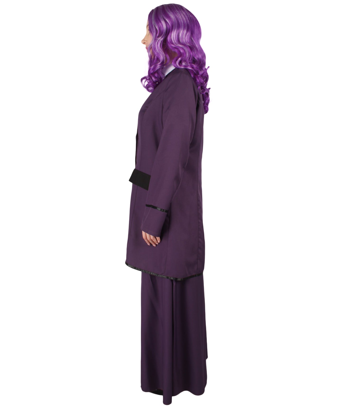 Transform into a fierce and fabulous character with our Adult Women's Missy Mistress Purple Cosplay Movie Costume! This stunning cosplay costume, crafted in striking purple, is the perfect way to channel your inner boss and make a statement at any event. The attention to detail is breathtaking, from the intricate patterns on the dress to the elegant cut that flatters your figure. The costume is designed to fit like a dream, ensuring you'll look and feel confident and powerful all day and night.